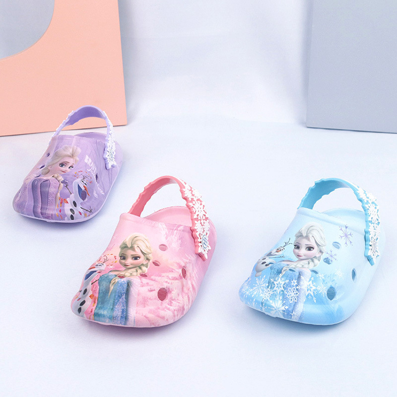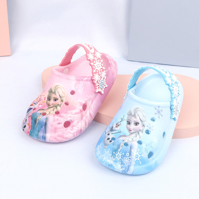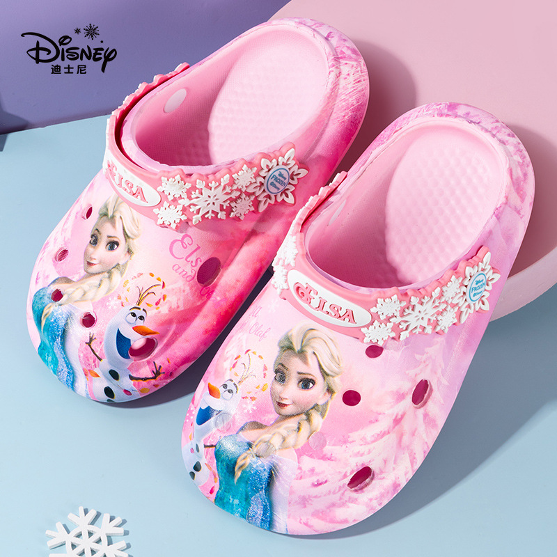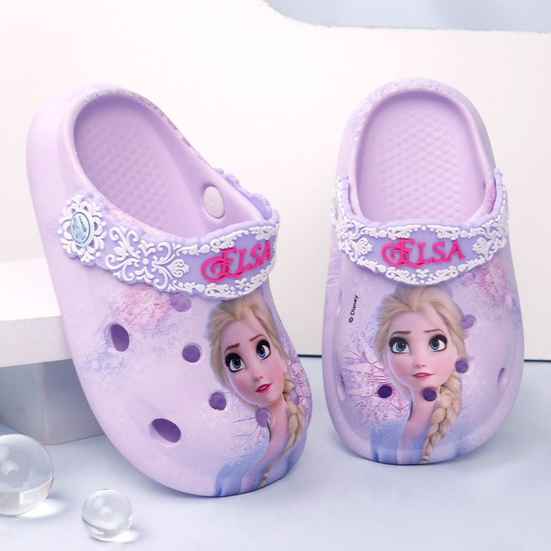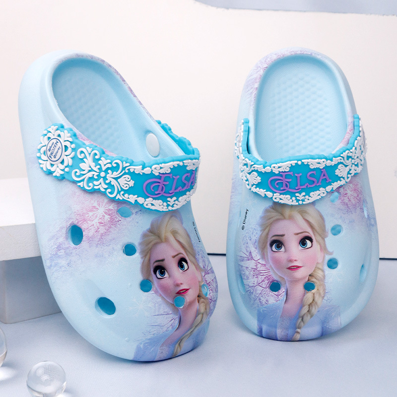 디즈니 어린이용 구멍구멍 슬리퍼 여아용 엘사 공주 귀여운 비치 샌들 미끄럼 방지 EVA 경량 원피스 슬리퍼