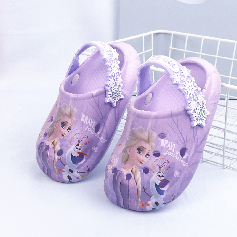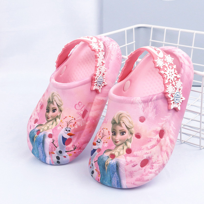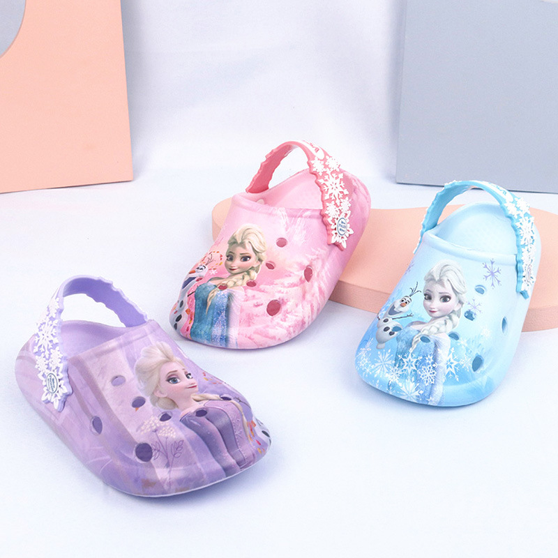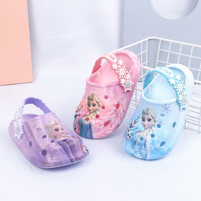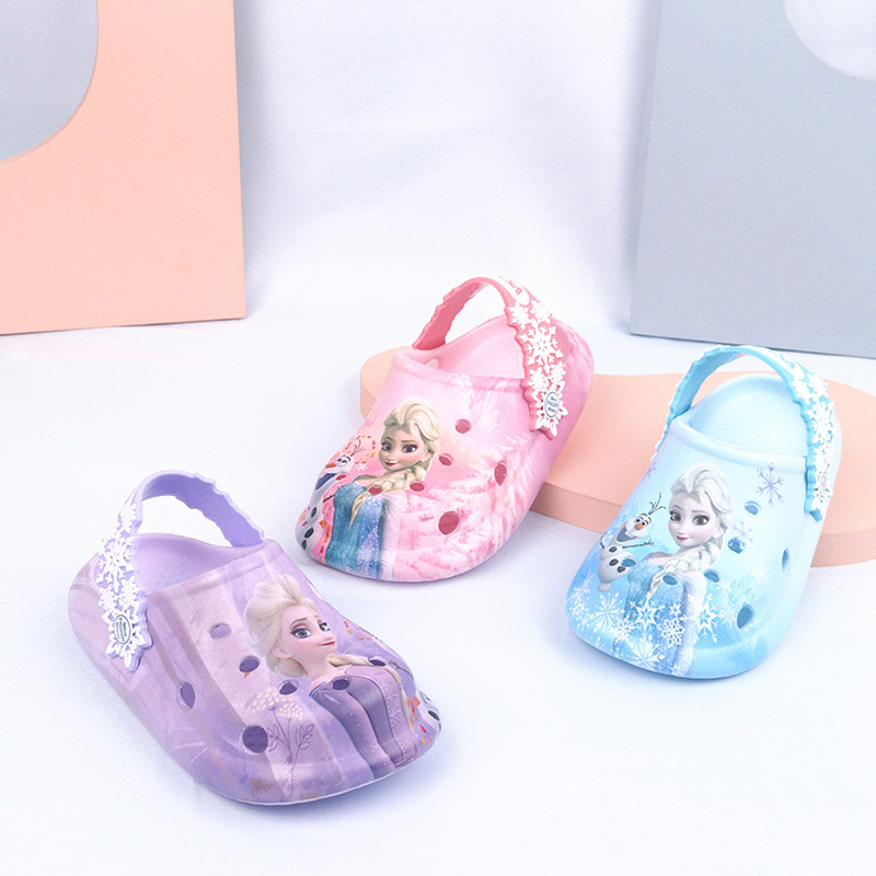 디즈니 어린이용 구멍구멍 슬리퍼 여아용 엘사 공주 귀여운 비치 샌들 미끄럼 방지 EVA 경량 원피스 슬리퍼