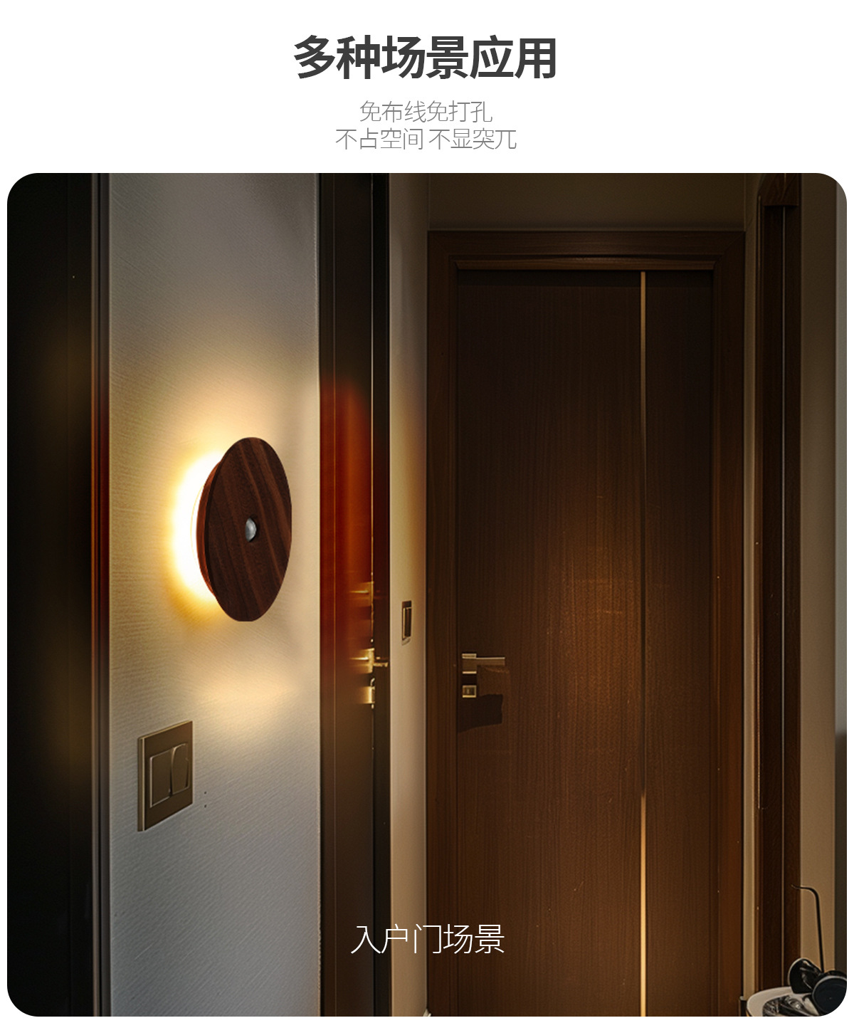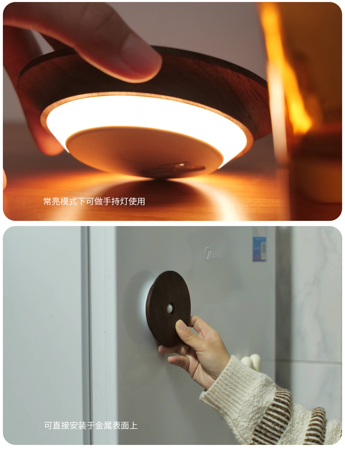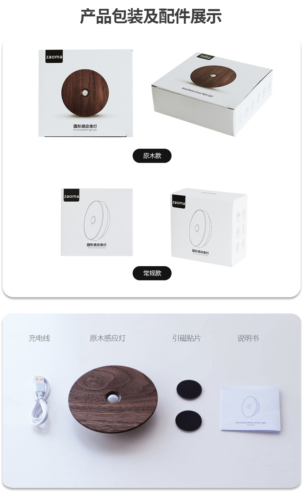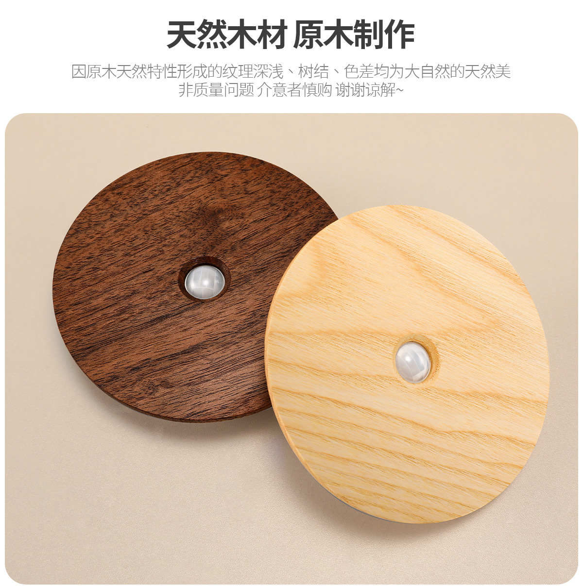 단단한 나무 자기 유도 램프, 스마트 야간 조명, 배선이 필요 없는 벽 램프, 문화 및 창의적 선물, 통로 침실용 충전식 램프