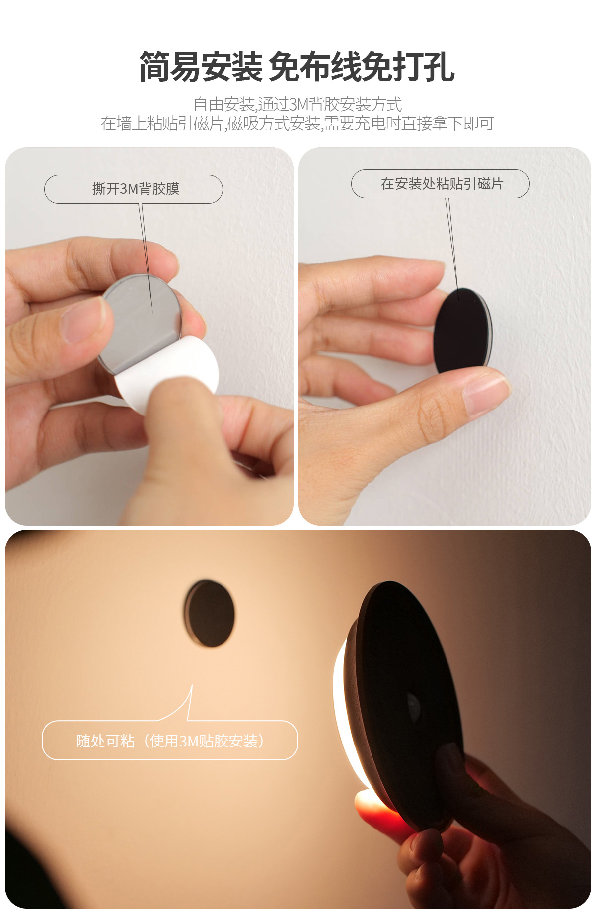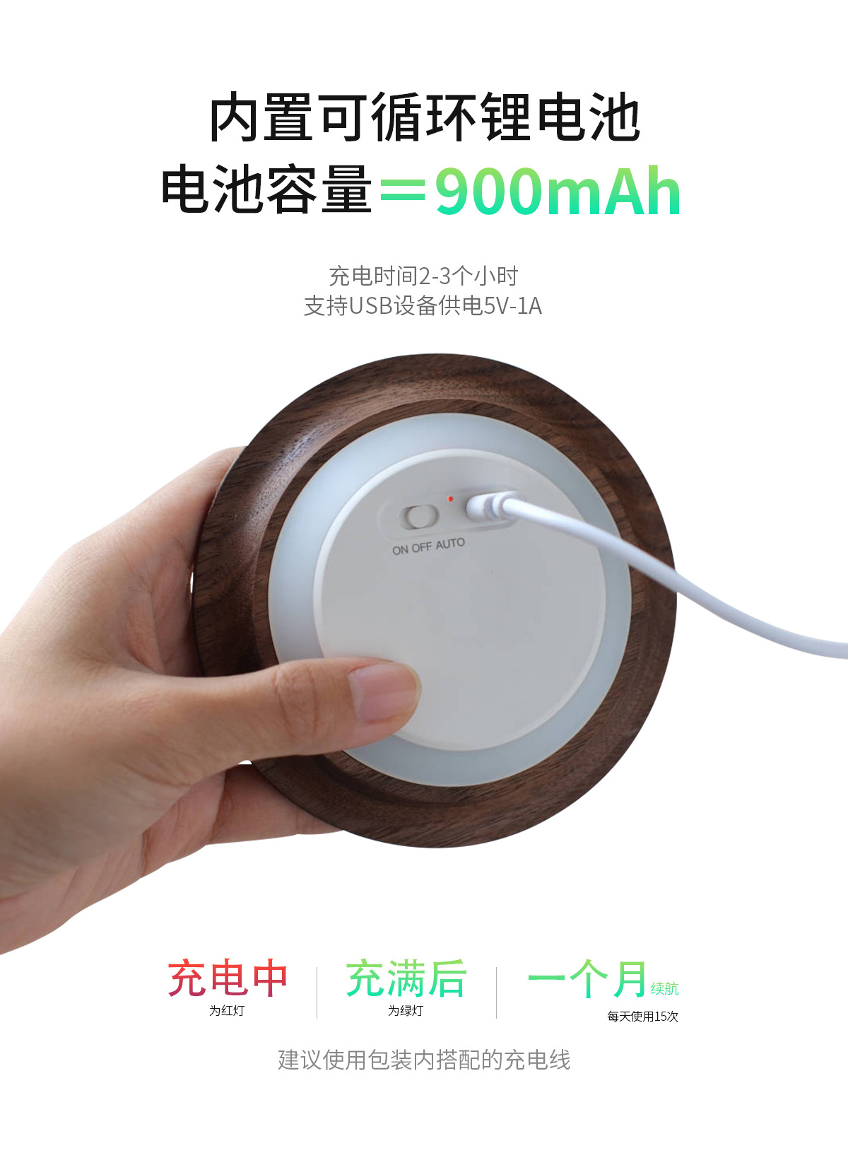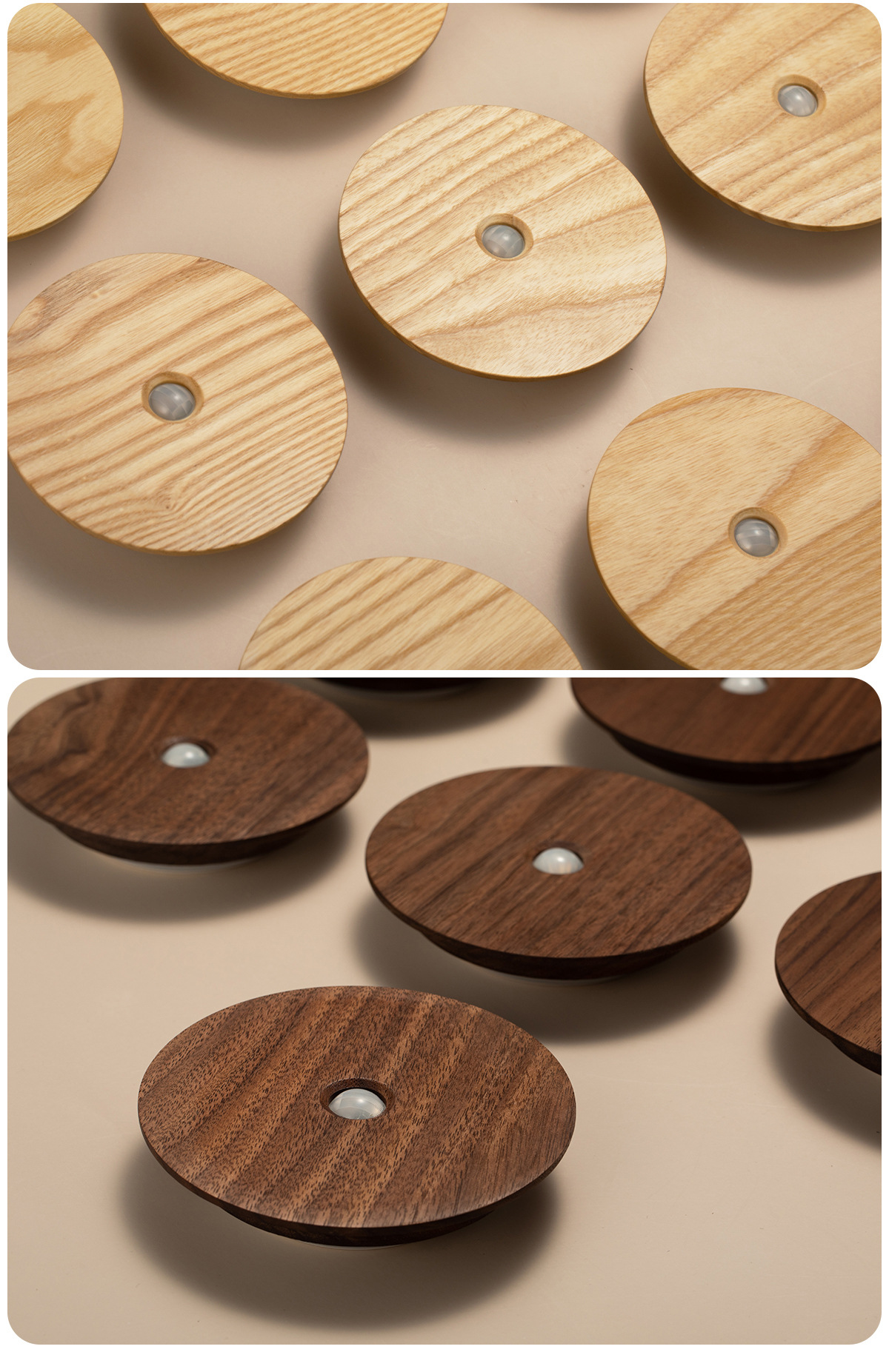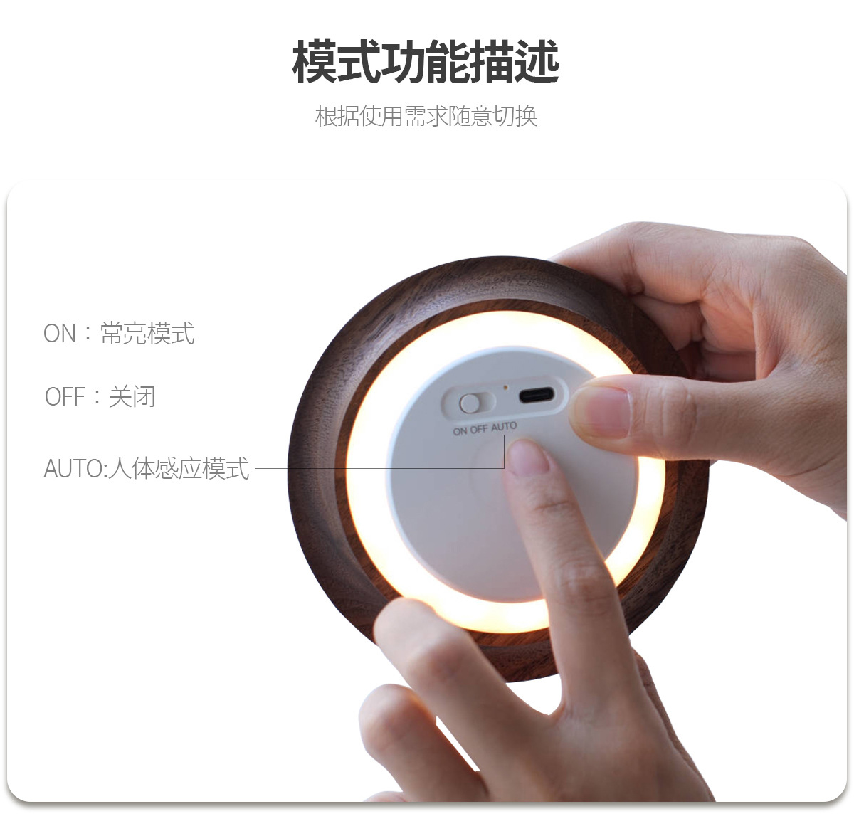 단단한 나무 자기 유도 램프, 스마트 야간 조명, 배선이 필요 없는 벽 램프, 문화 및 창의적 선물, 통로 침실용 충전식 램프