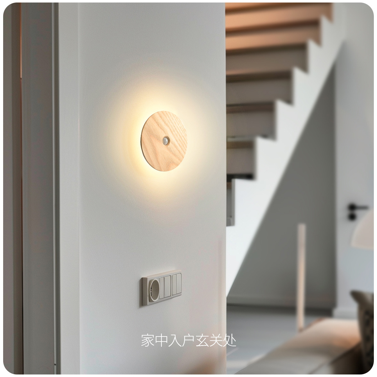 단단한 나무 자기 유도 램프, 스마트 야간 조명, 배선이 필요 없는 벽 램프, 문화 및 창의적 선물, 통로 침실용 충전식 램프스토어 가기