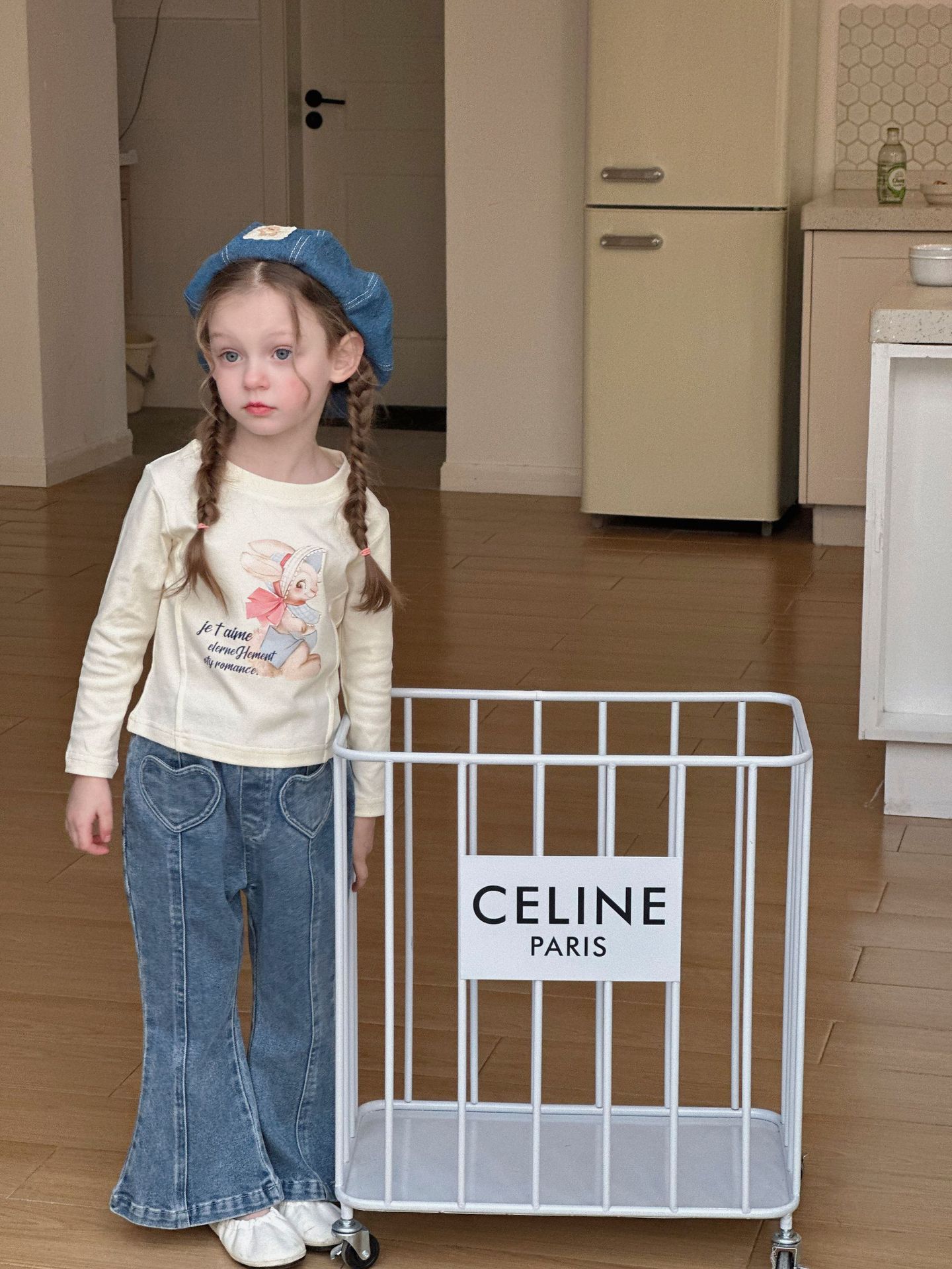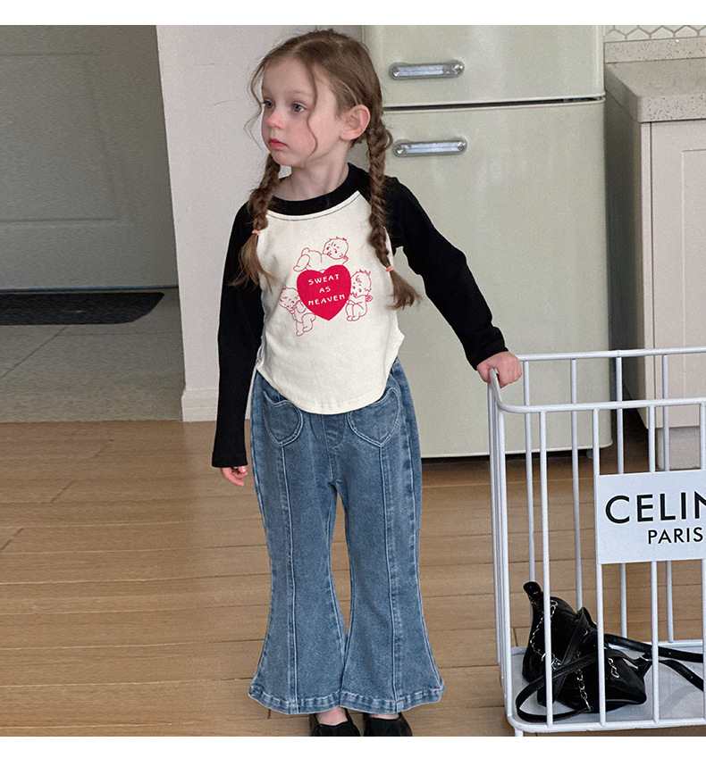 밀밭 시즌 2024 봄 새로운 어린이 슬림 핏 바지 소녀 아기 레트로 청바지 스트레치 플래 팬츠스토어 가기
