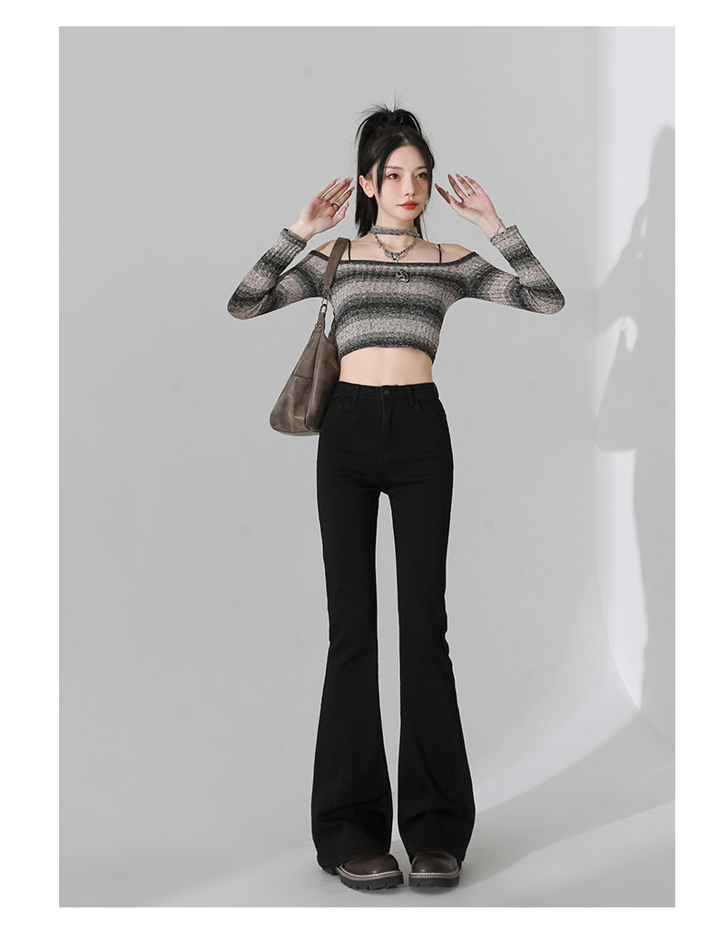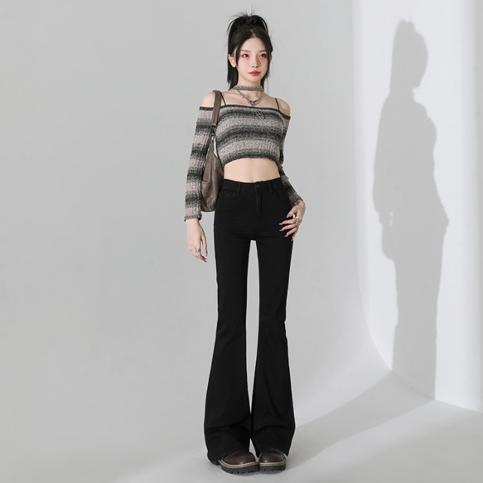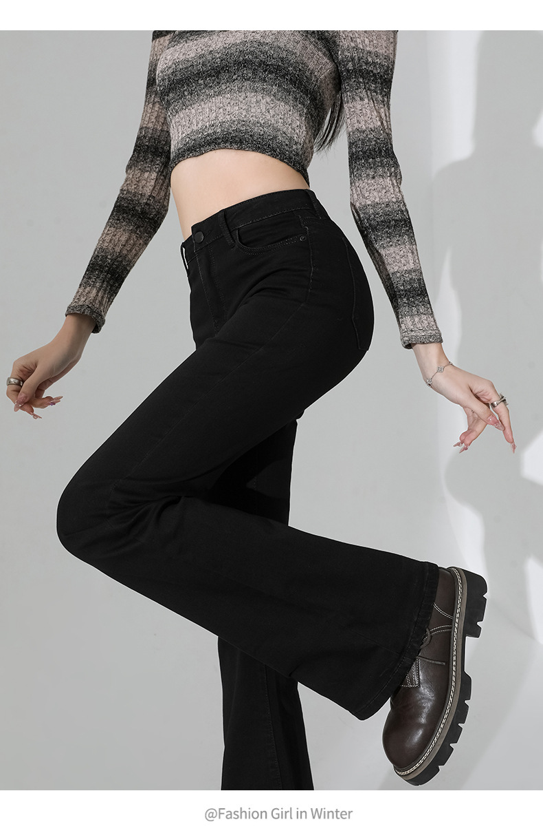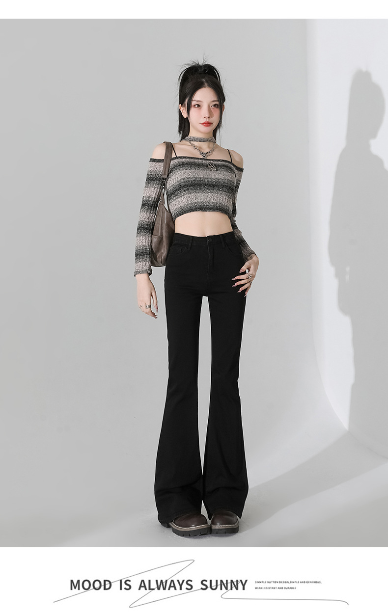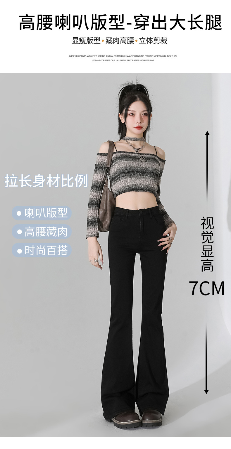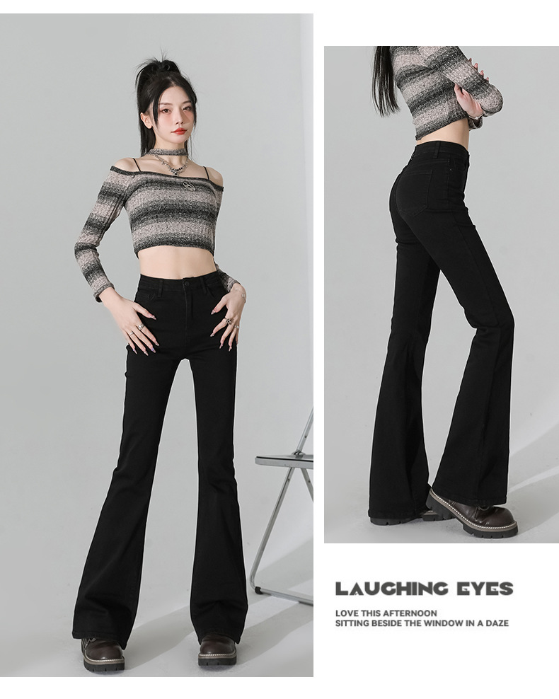 여성을 위한 인터넷 연예인 블랙 하이웨이스트 부츠컷 청바지 2025 봄, 가을 새로운 스타일 스트레치 다용도 슬리밍 작은 말굽 바지스토어 가기
