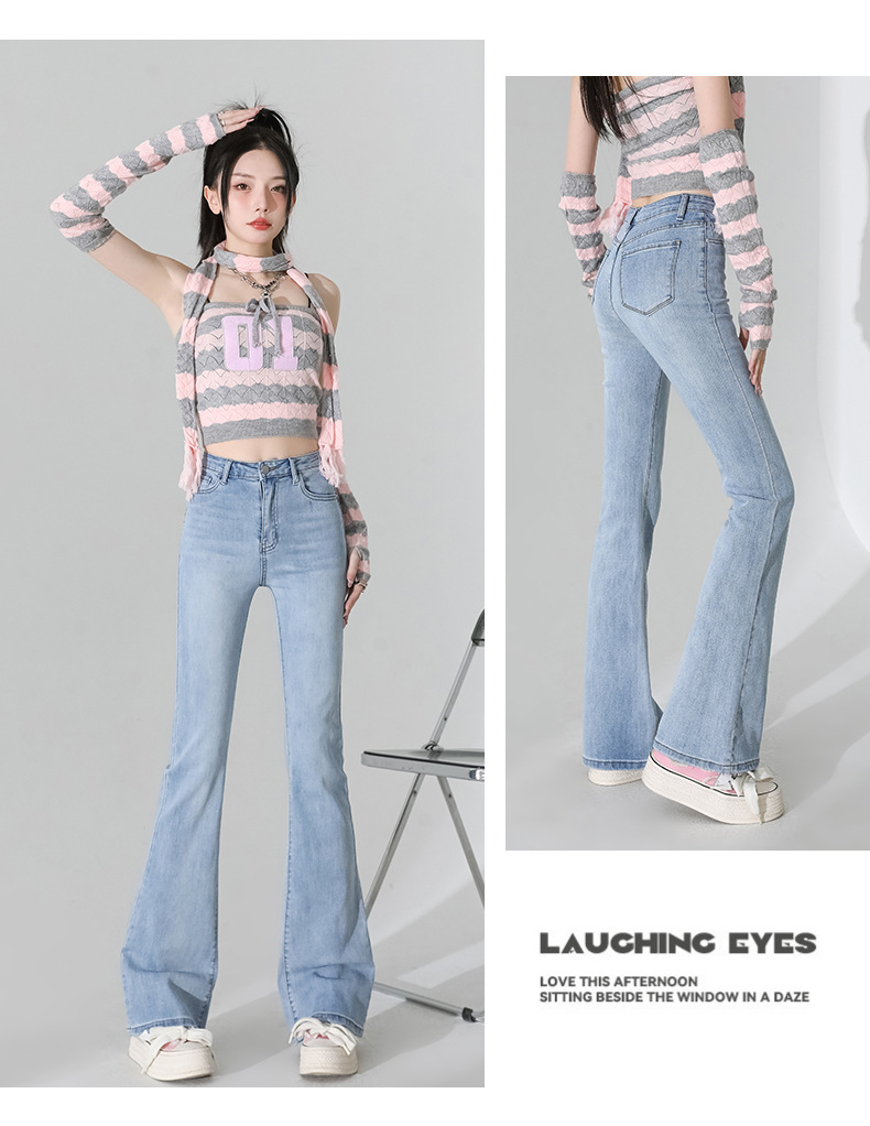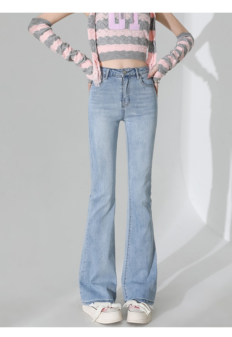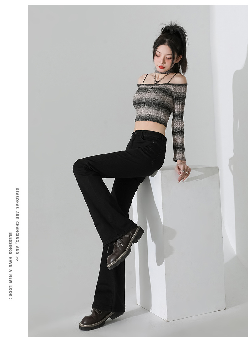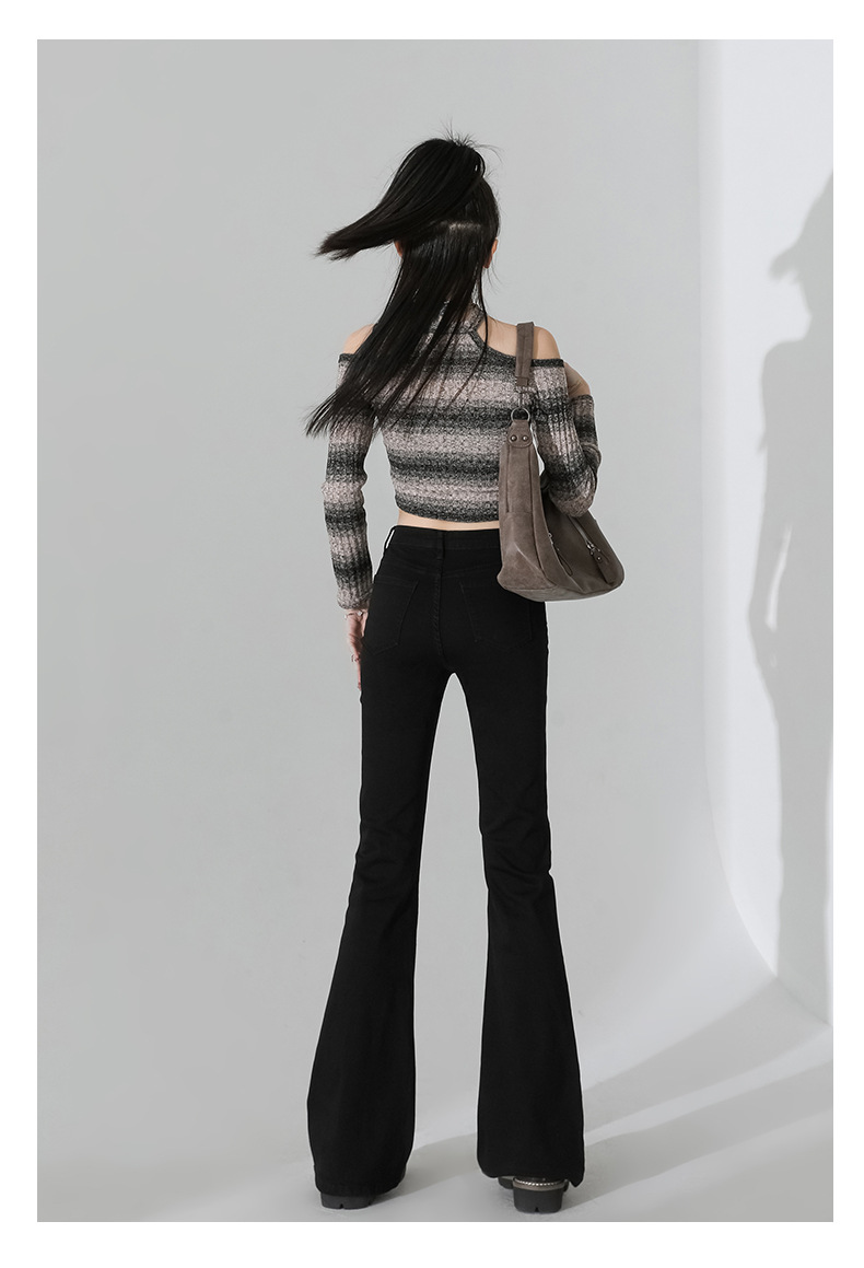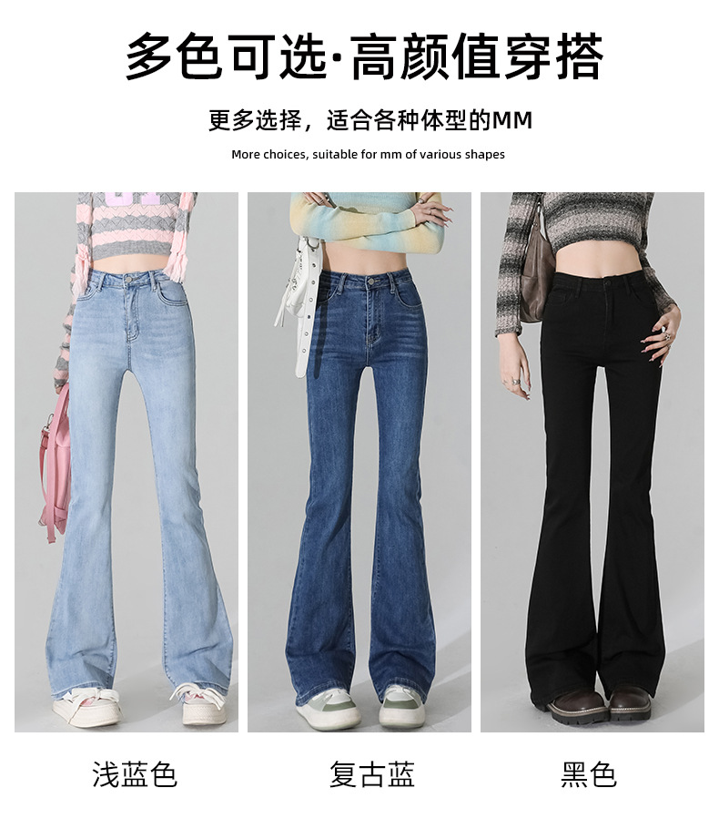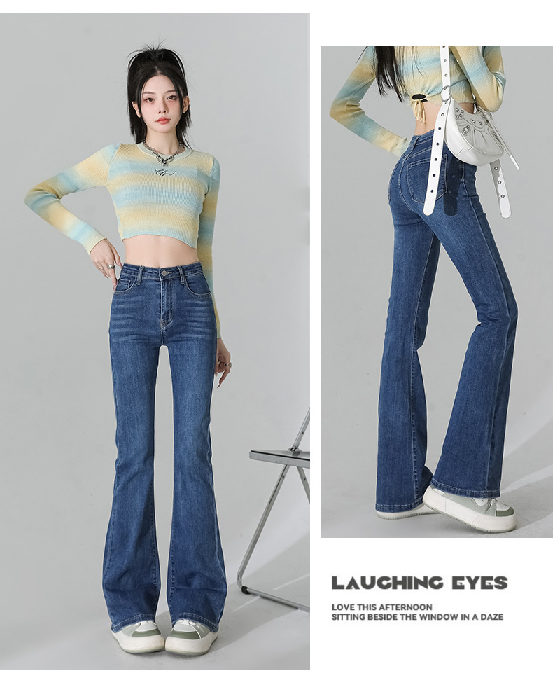 여성을 위한 인터넷 연예인 블랙 하이웨이스트 부츠컷 청바지 2025 봄, 가을 새로운 스타일 스트레치 다용도 슬리밍 작은 말굽 바지스토어 가기