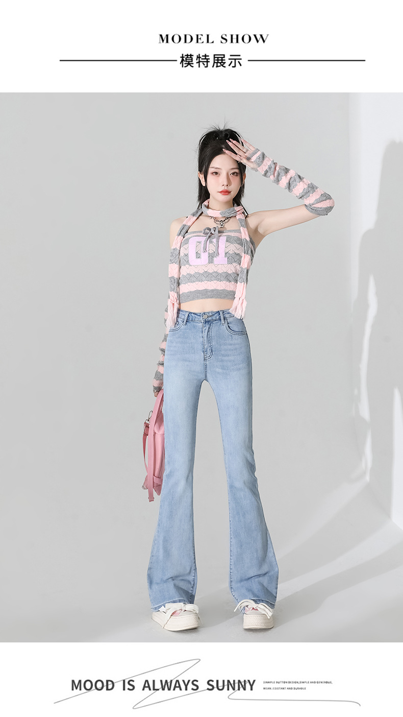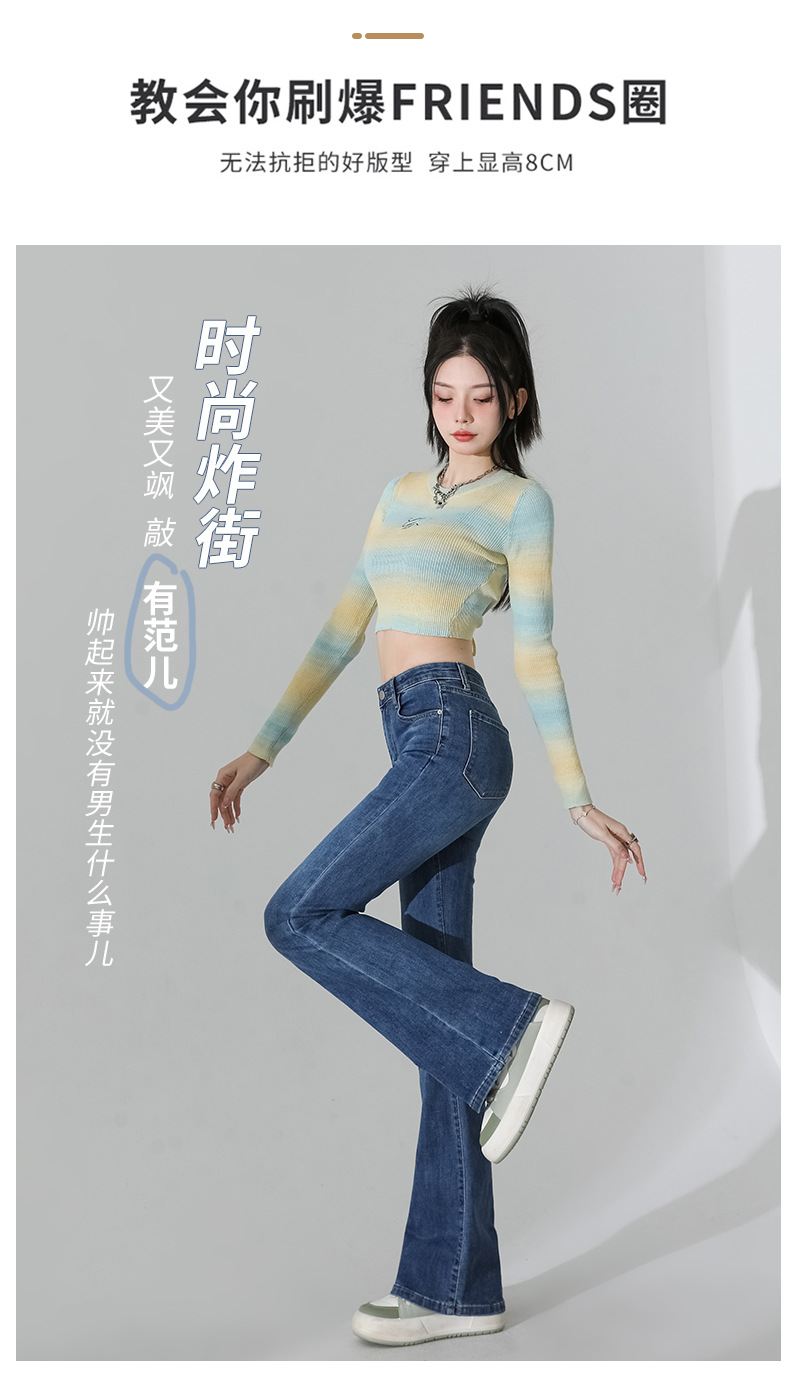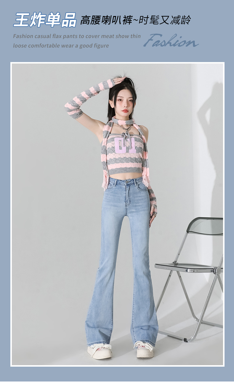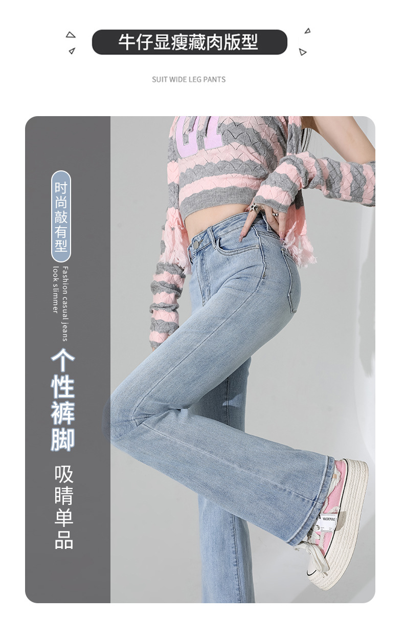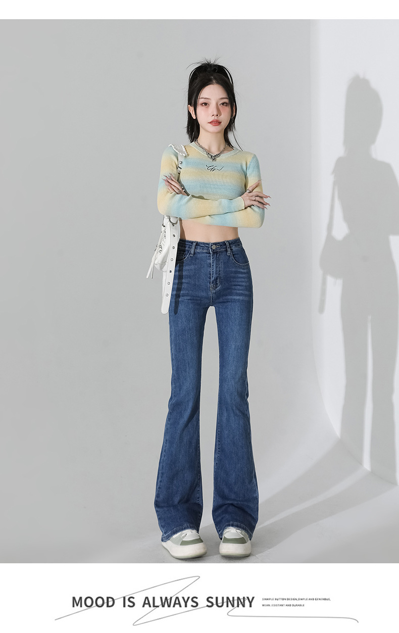 여성을 위한 인터넷 연예인 블랙 하이웨이스트 부츠컷 청바지 2025 봄, 가을 새로운 스타일 스트레치 다용도 슬리밍 작은 말굽 바지스토어 가기