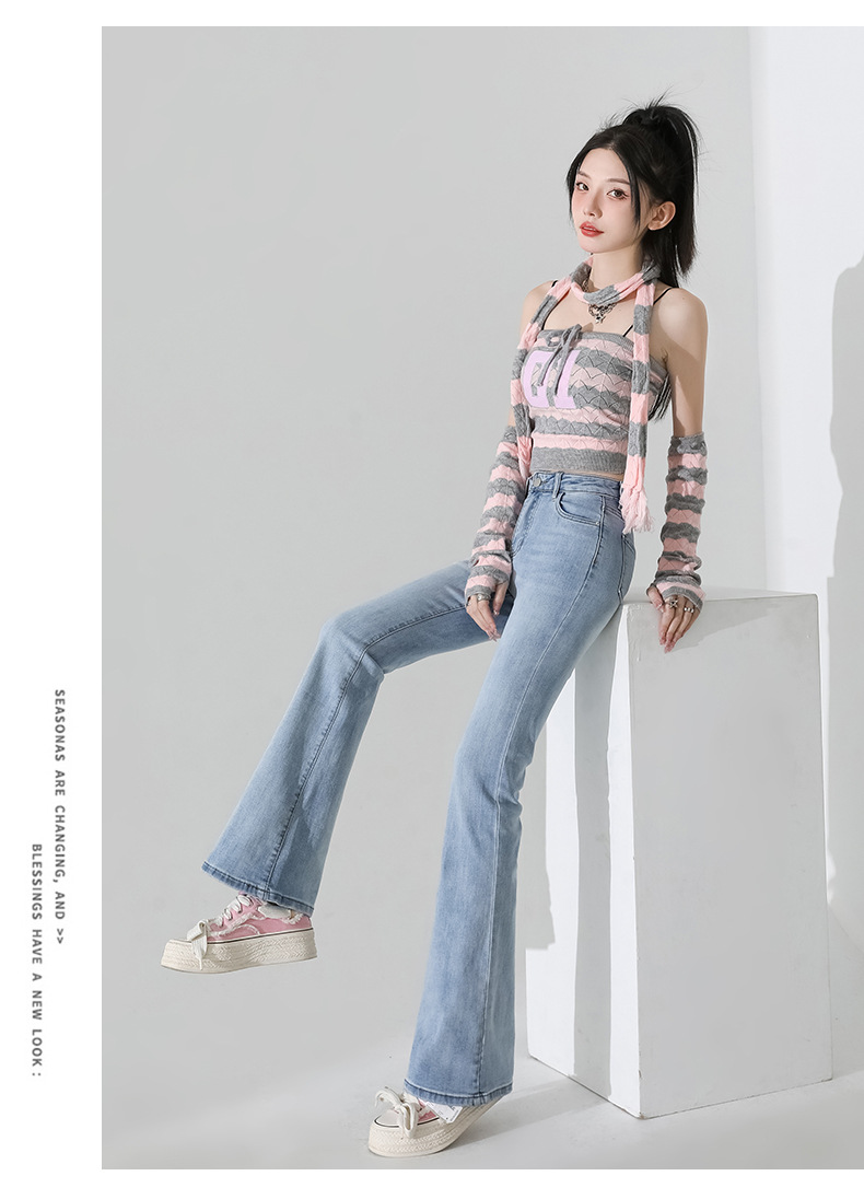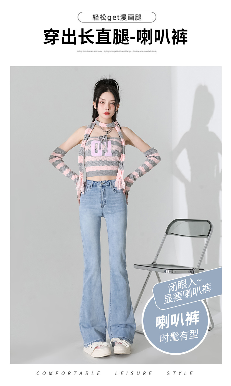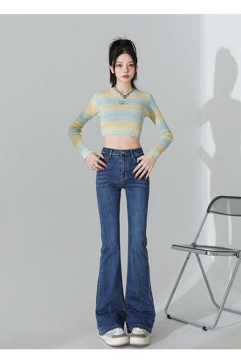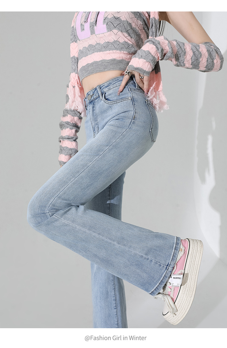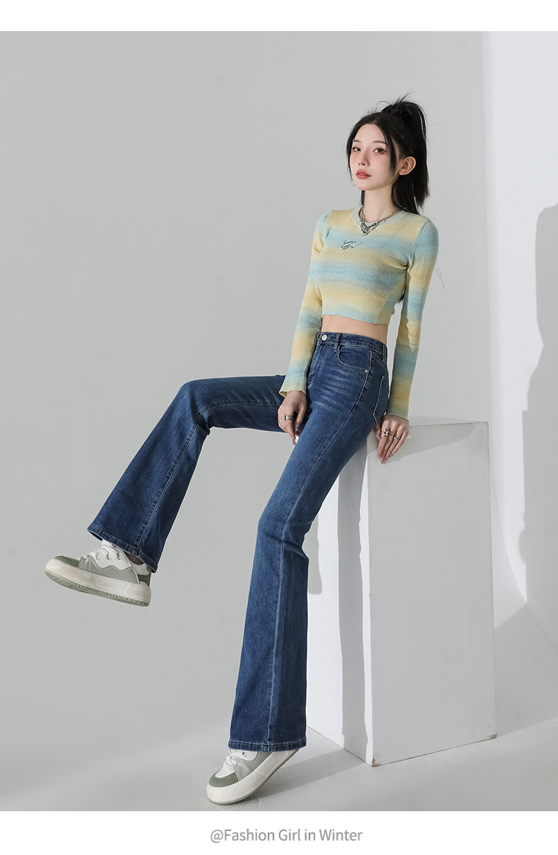 여성을 위한 인터넷 연예인 블랙 하이웨이스트 부츠컷 청바지 2025 봄, 가을 새로운 스타일 스트레치 다용도 슬리밍 작은 말굽 바지스토어 가기