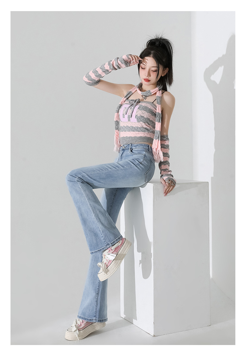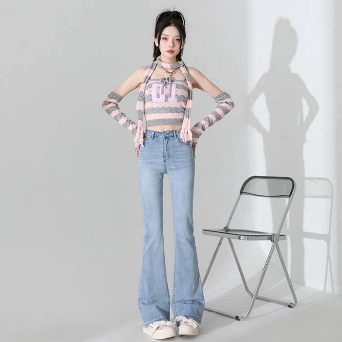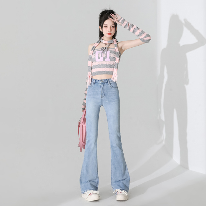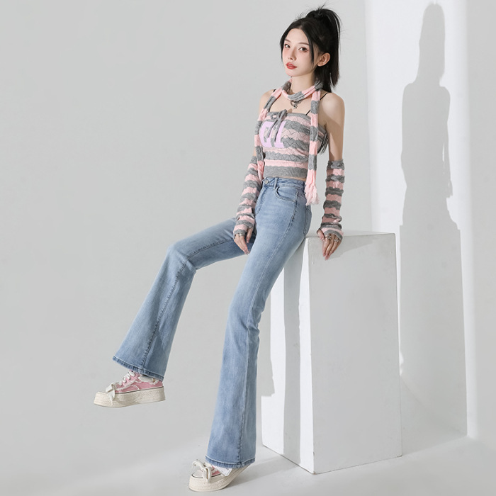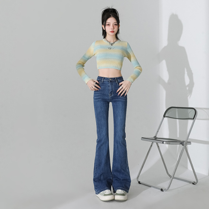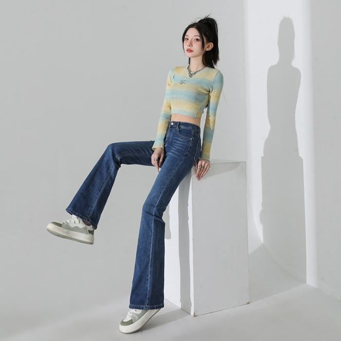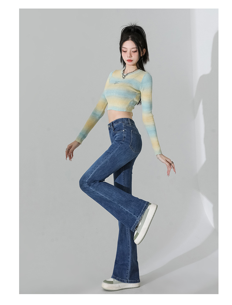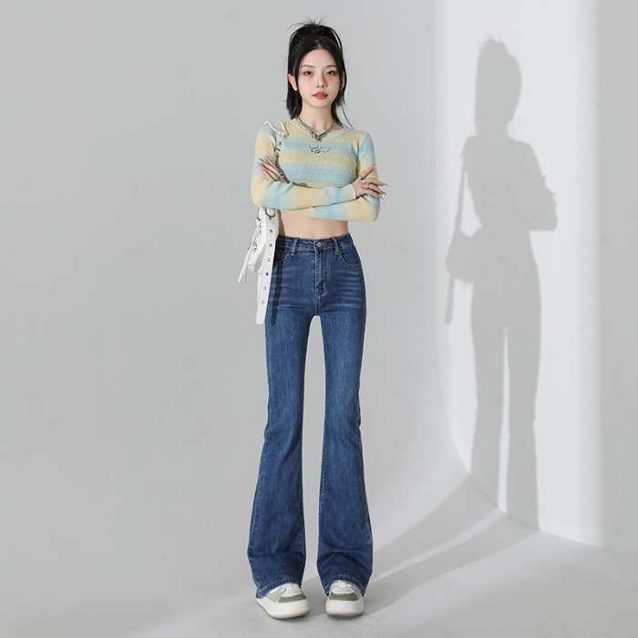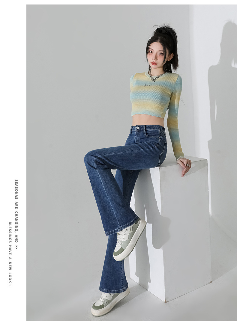 여성을 위한 인터넷 연예인 블랙 하이웨이스트 부츠컷 청바지 2025 봄, 가을 새로운 스타일 스트레치 다용도 슬리밍 작은 말굽 바지스토어 가기