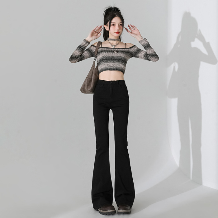 여성을 위한 인터넷 연예인 블랙 하이웨이스트 부츠컷 청바지 2025 봄, 가을 새로운 스타일 스트레치 다용도 슬리밍 작은 말굽 바지