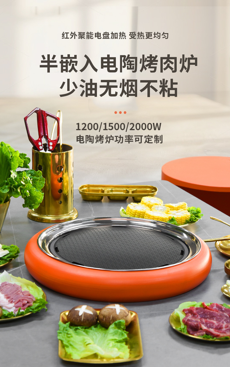 韩式不锈钢电烤炉台上炉网红电陶炉烤肉店可半嵌自助烤肉炉商用