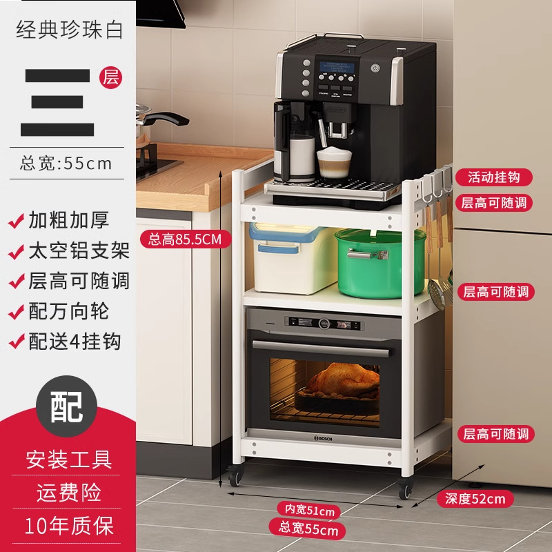 3 층 주방 전자 레인지 스토리지 랙 바닥 다층 내장 대형 스팀 오븐 식기 세척기 스토리지 랙