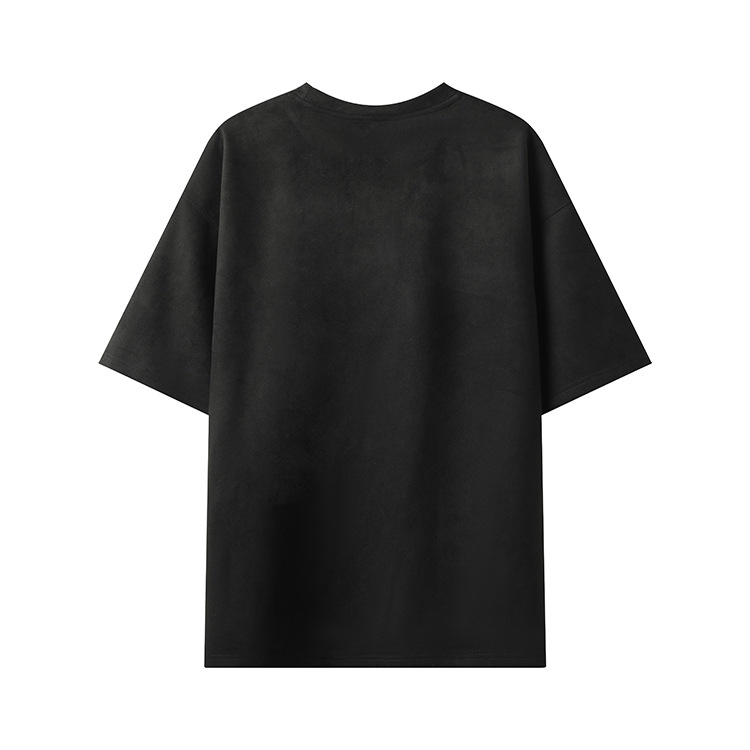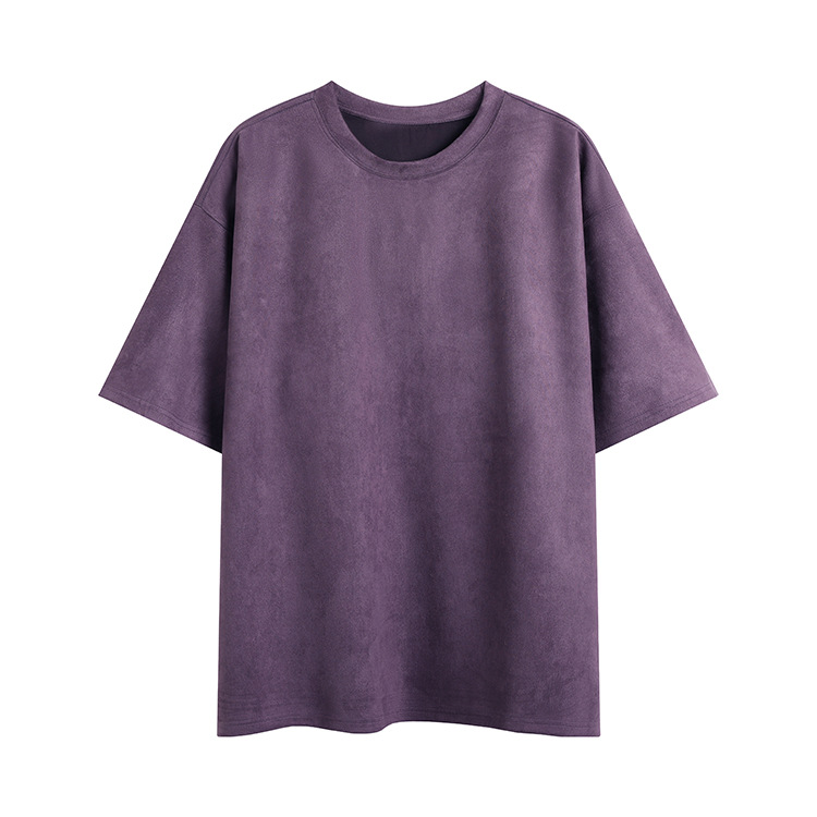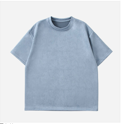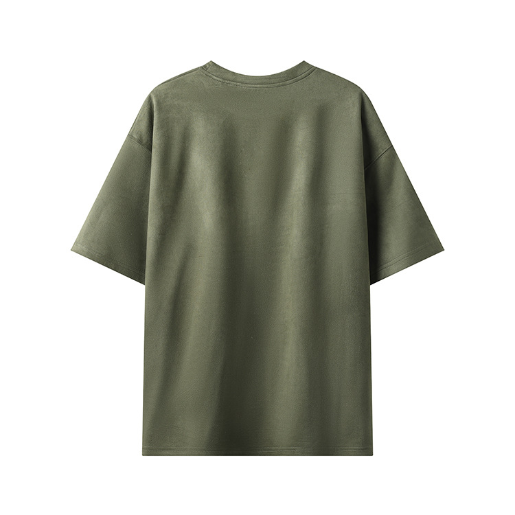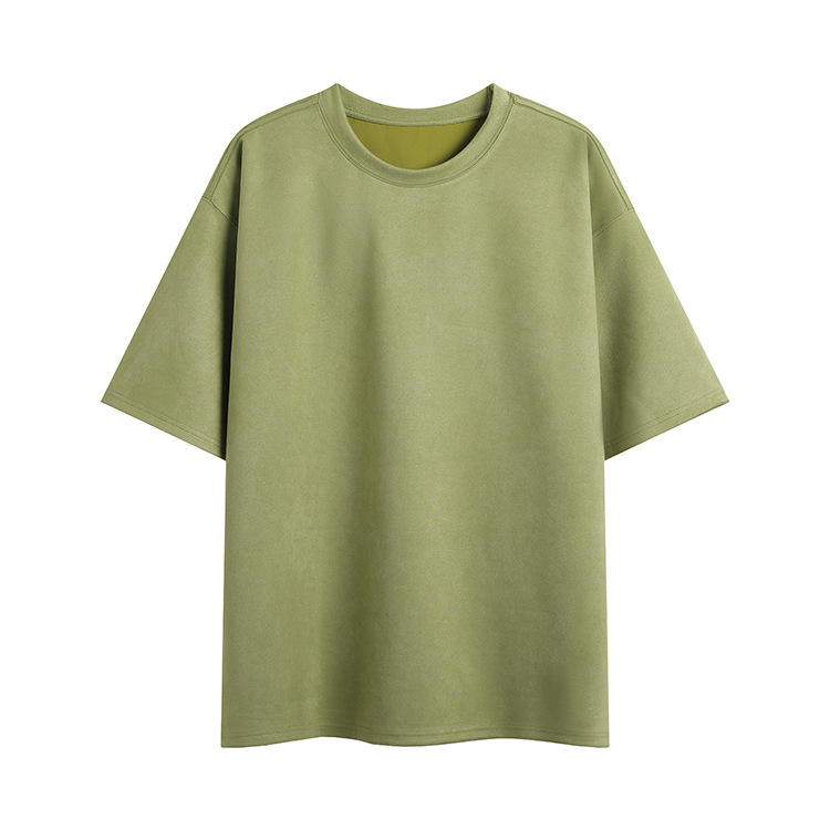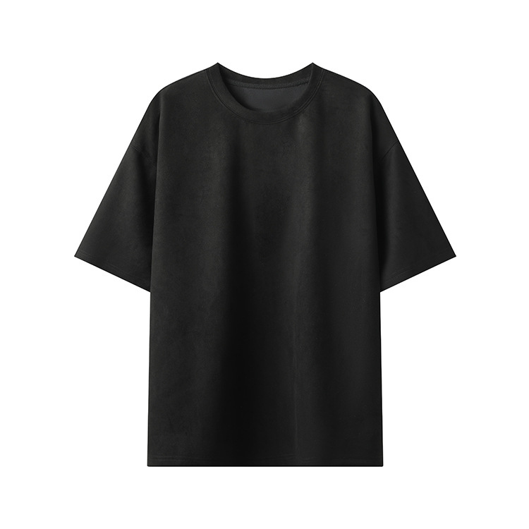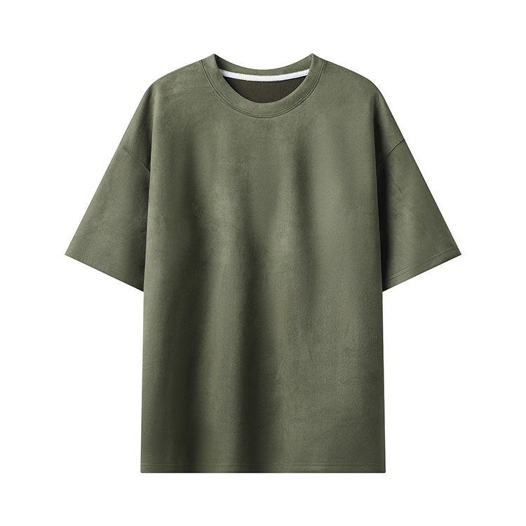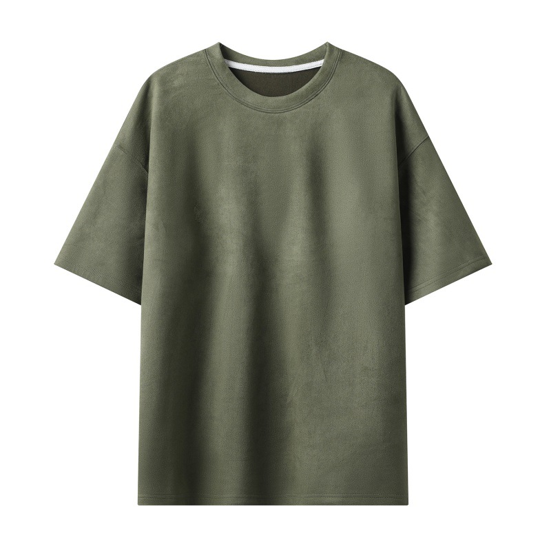 티셔츠 남자 2024 뉴 남성 2 오픈 솔리드 컬러 라이트 패널 스웨이드 루즈 크루 넥 풀오버 반팔 티셔츠