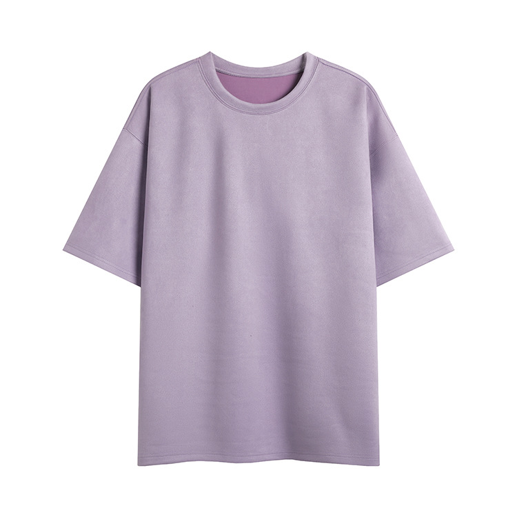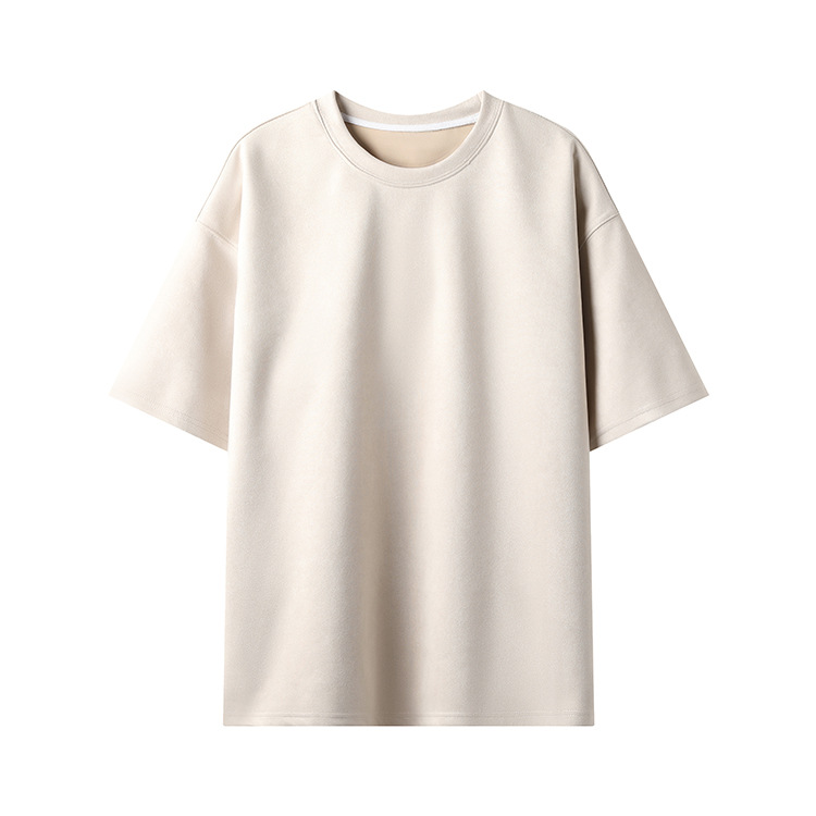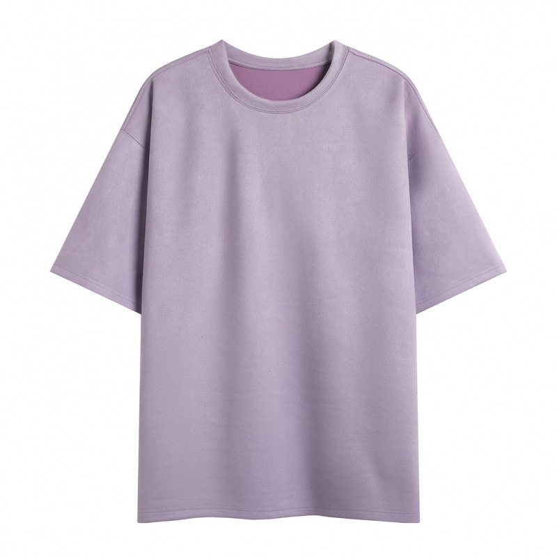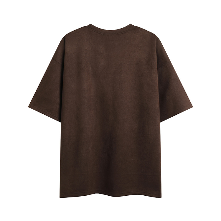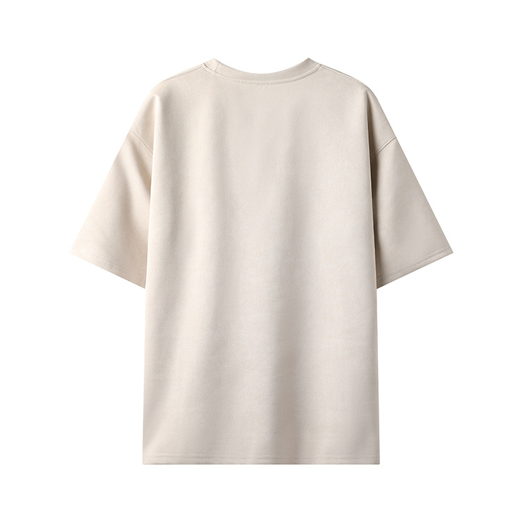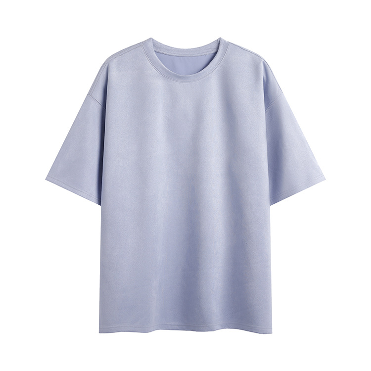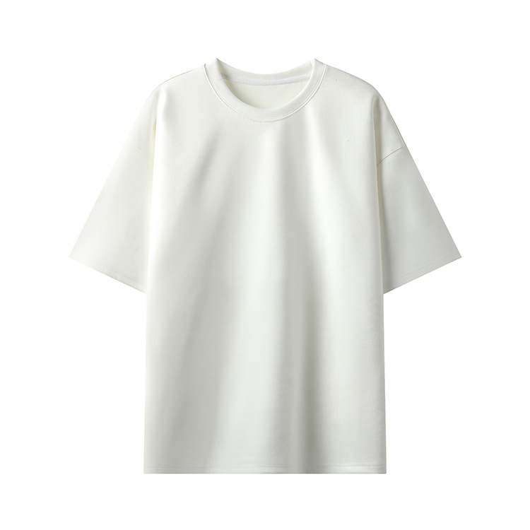 티셔츠 남자 2024 뉴 남성 2 오픈 솔리드 컬러 라이트 패널 스웨이드 루즈 크루 넥 풀오버 반팔 티셔츠