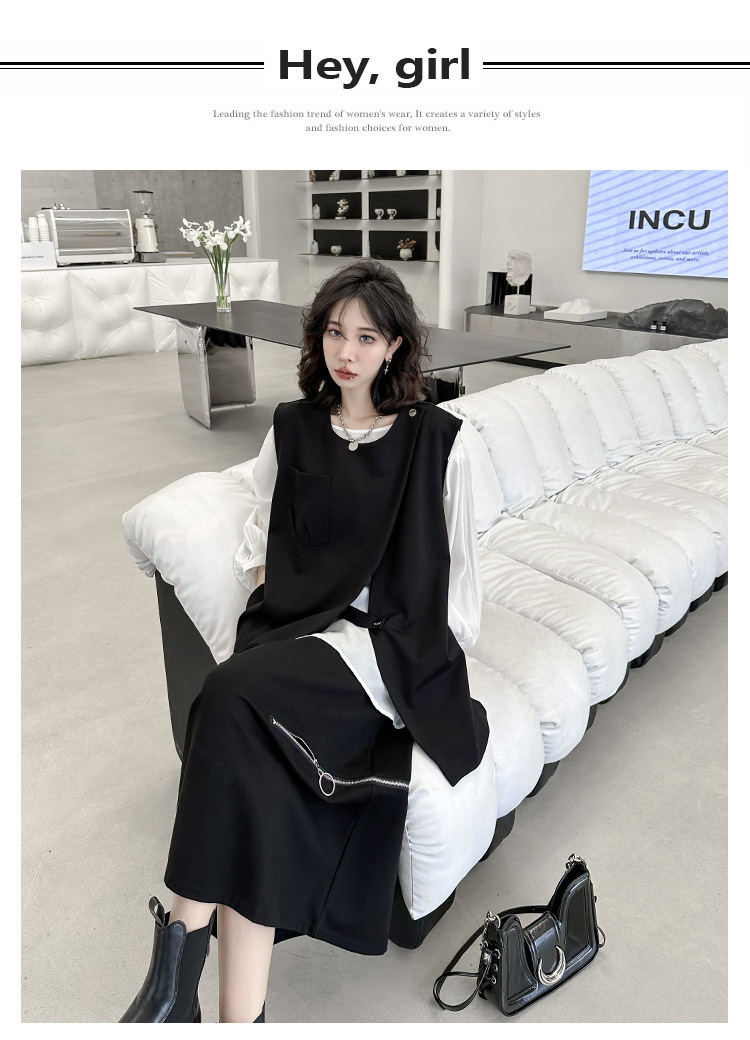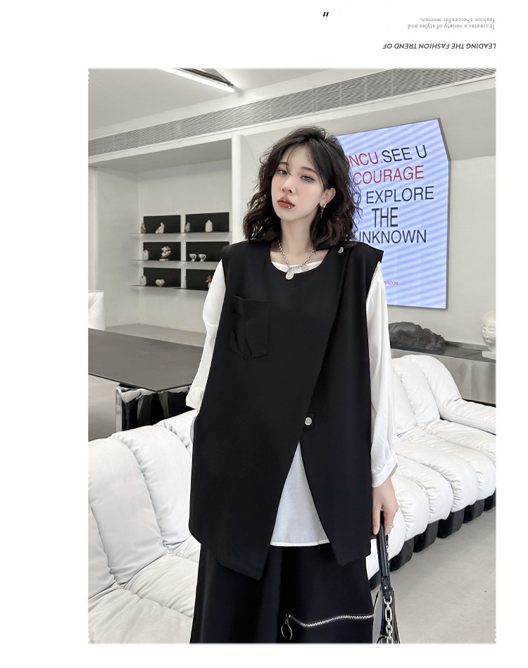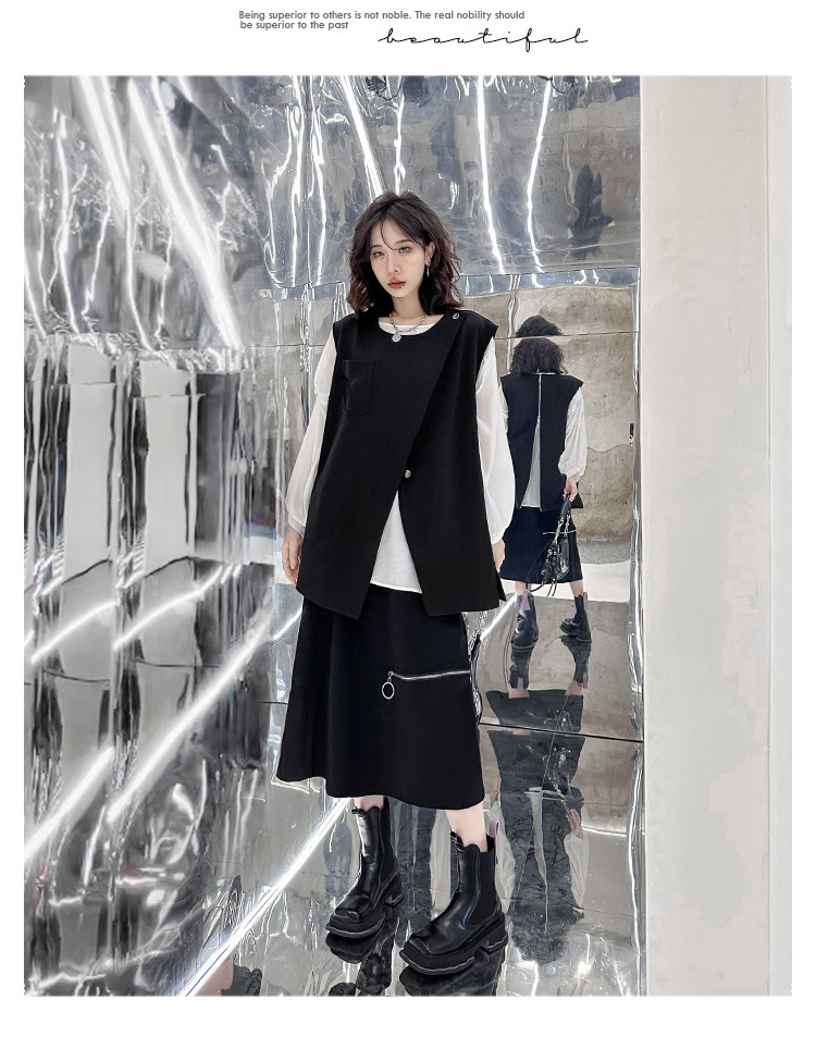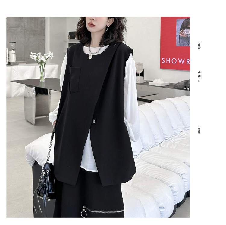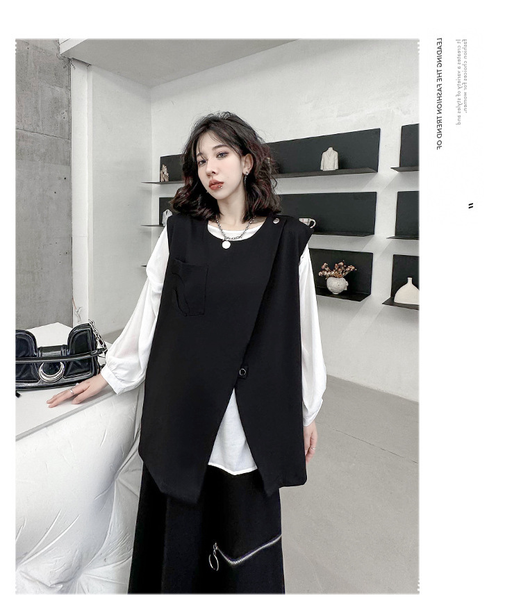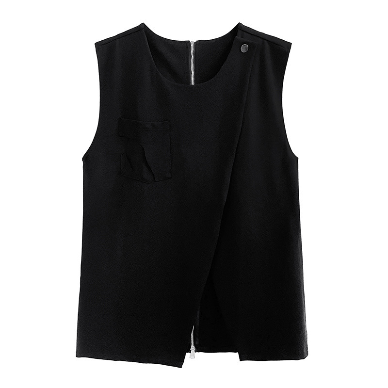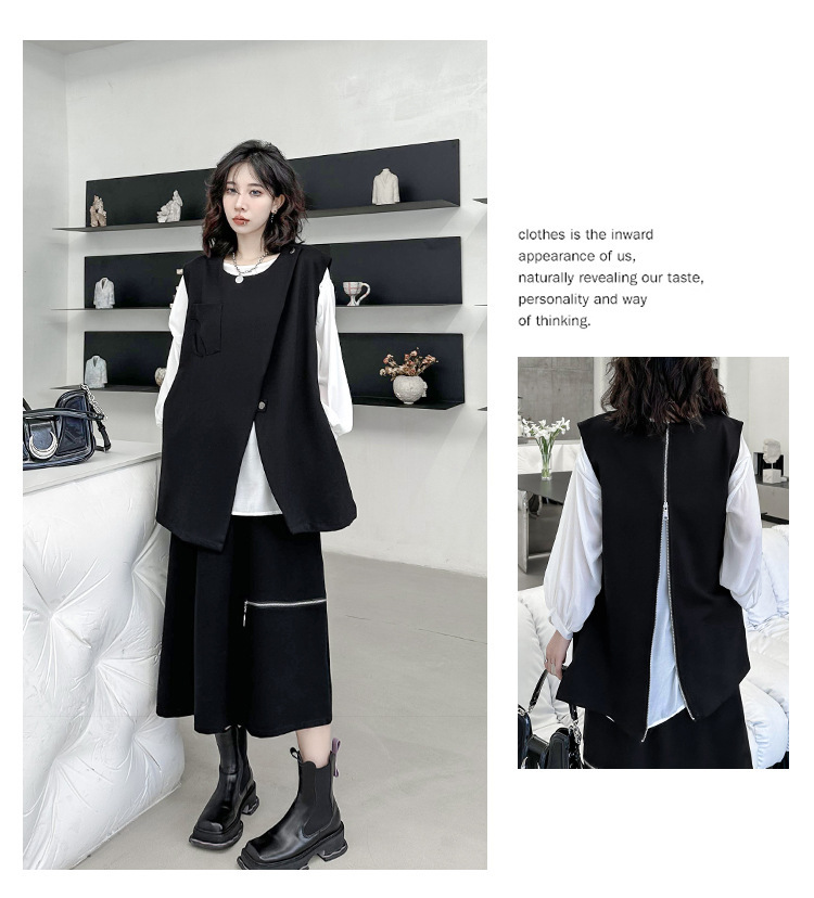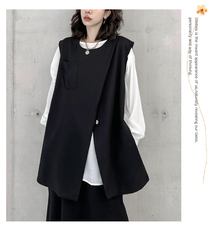 야마모토 다크 스타일 백 지퍼 조끼 여성 봄과 가을 느슨한 슬리밍 틈새 디자인 외국 기질 외투