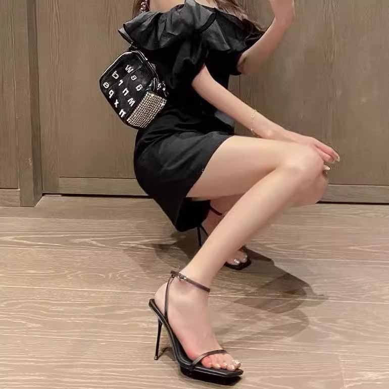 여자 2023 새로운 여름 스틸레토 힐 블랙 아름다운 고급 요정 스타일 여름 샌들스토어 가기