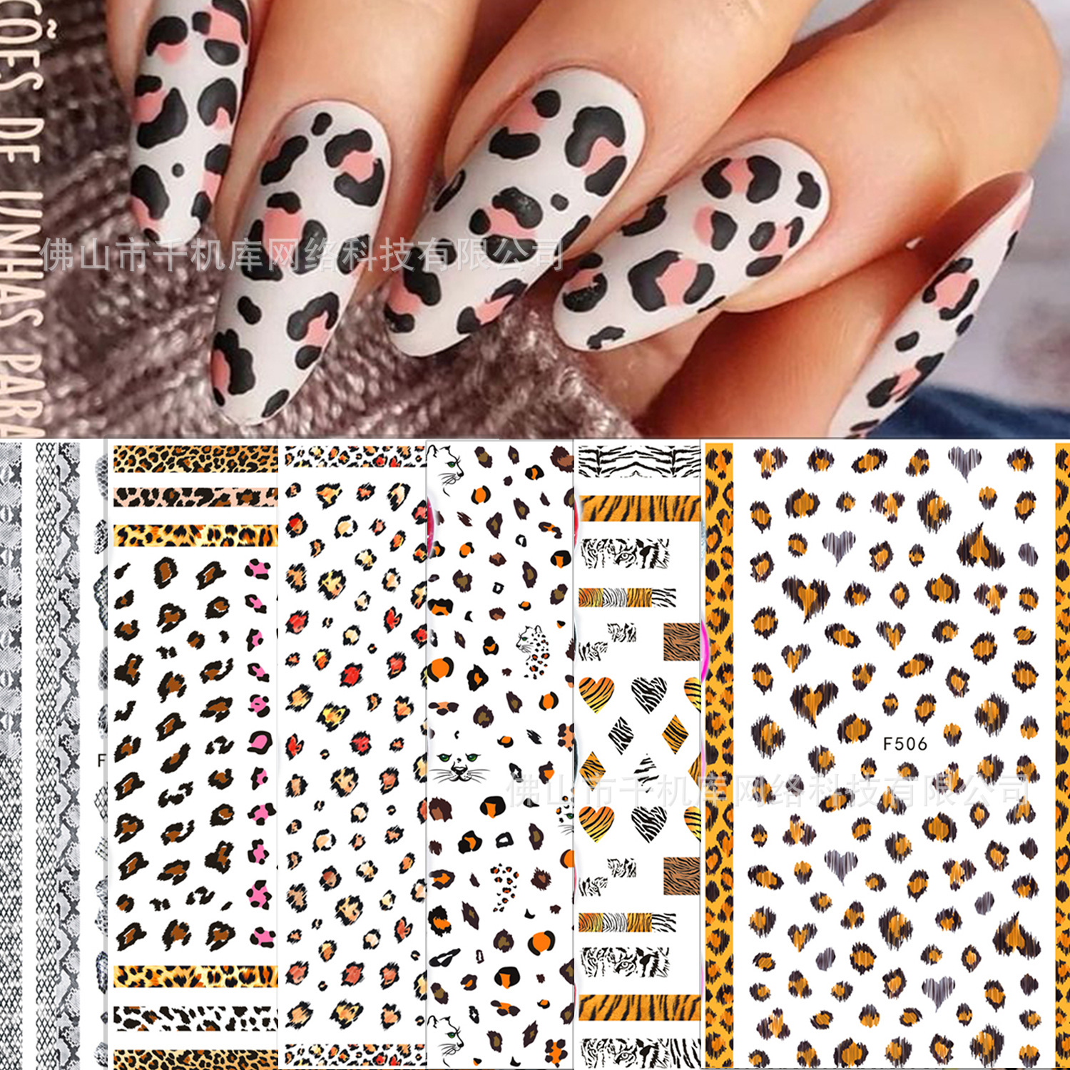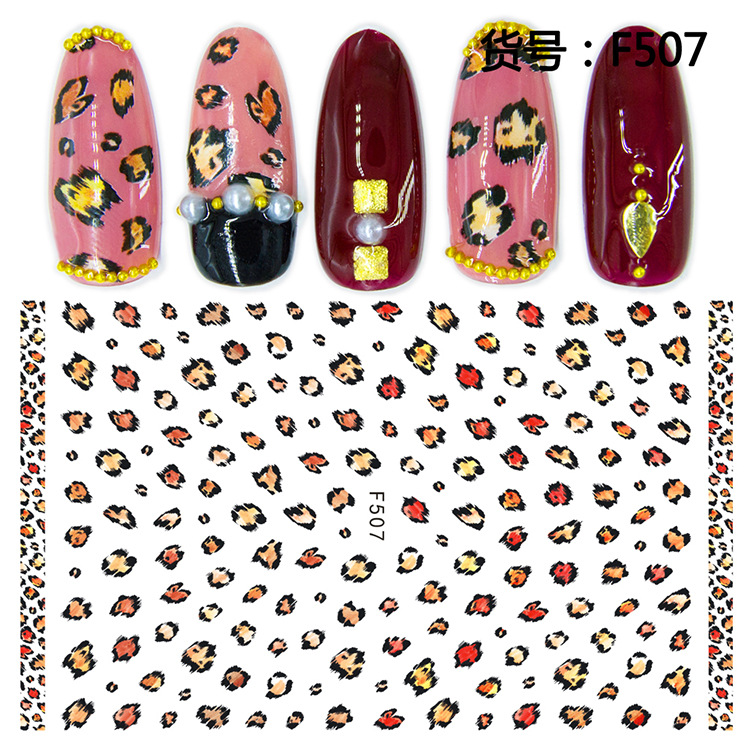 네일 스티커 도매 레오파드 무늬 호랑이 피부 패턴 컬러 네일 장식 스티커 데칼 접착제 맞춤형 공장