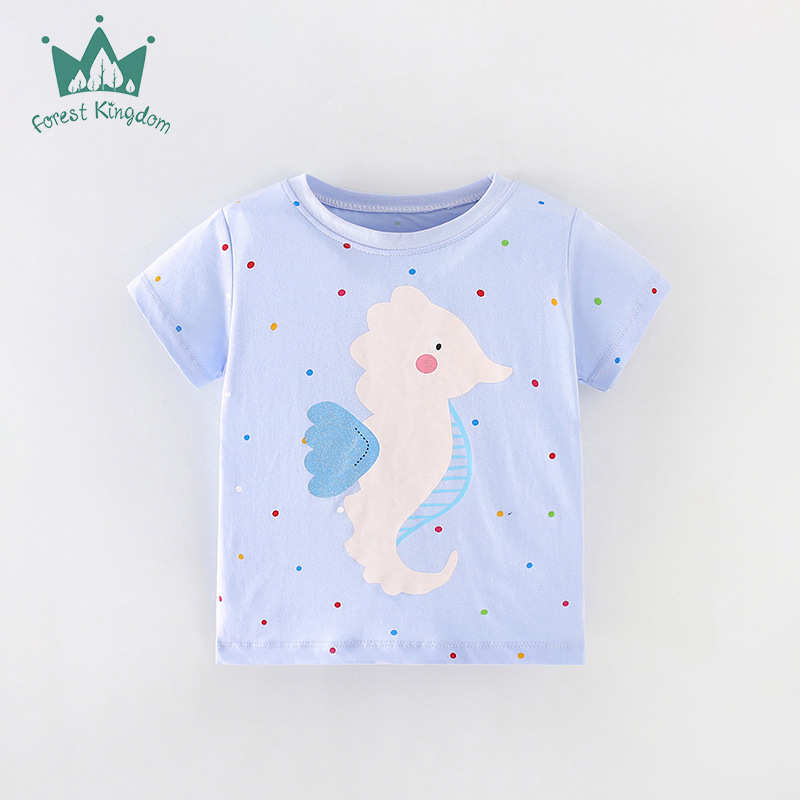 2025 여름 새 여자 반팔 티셔츠 유럽과 미국 스타일의 만화 프린트 탑 어린이 반팔 티셔츠스토어 가기