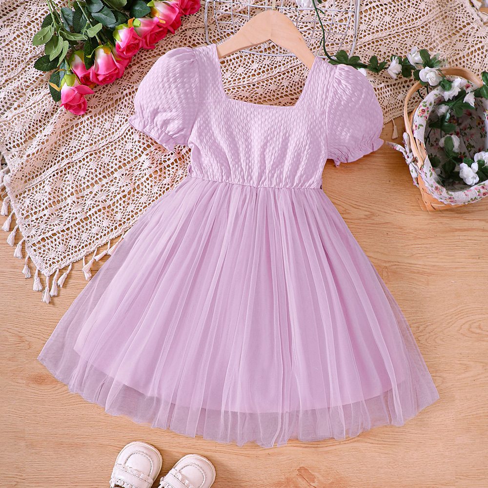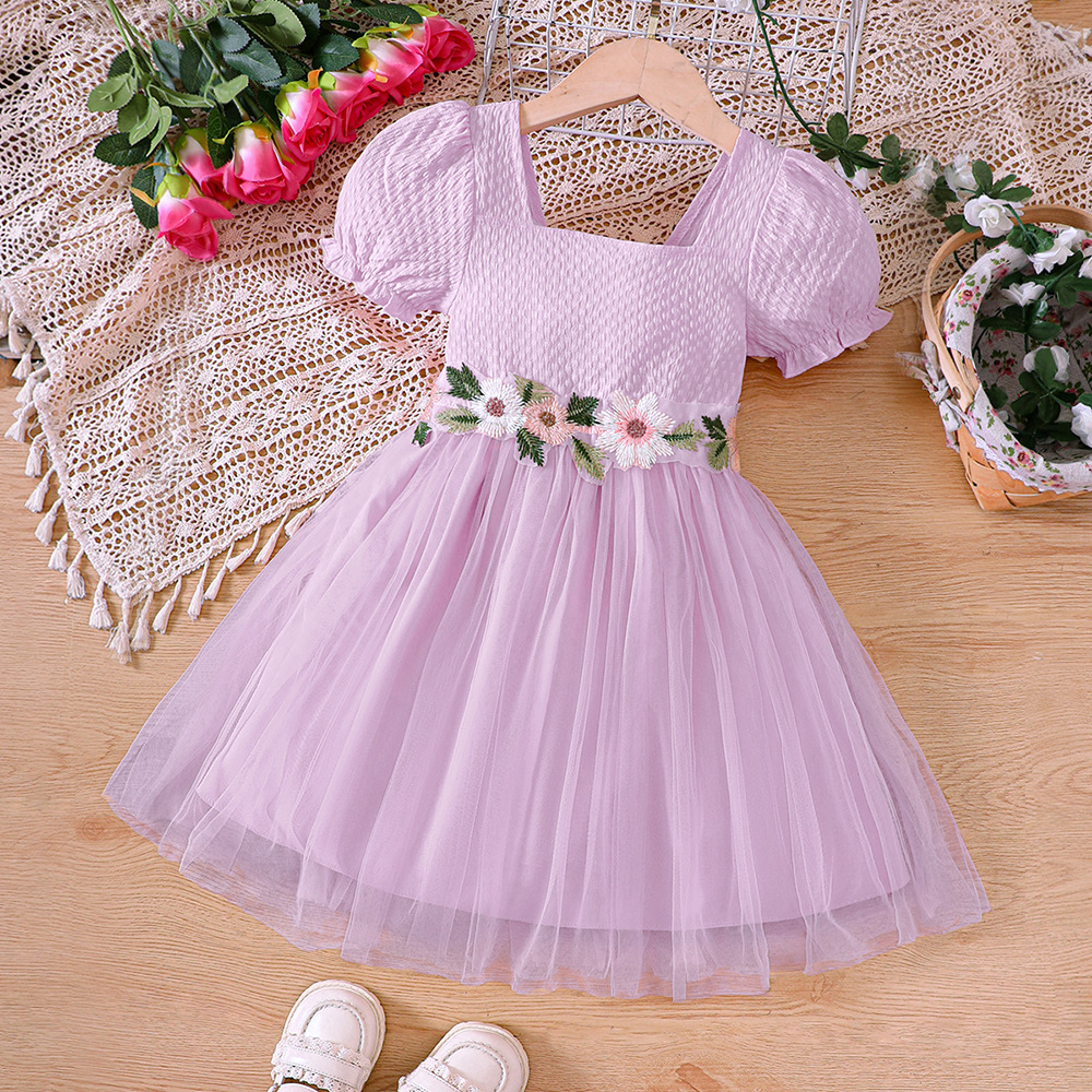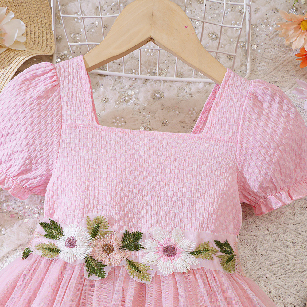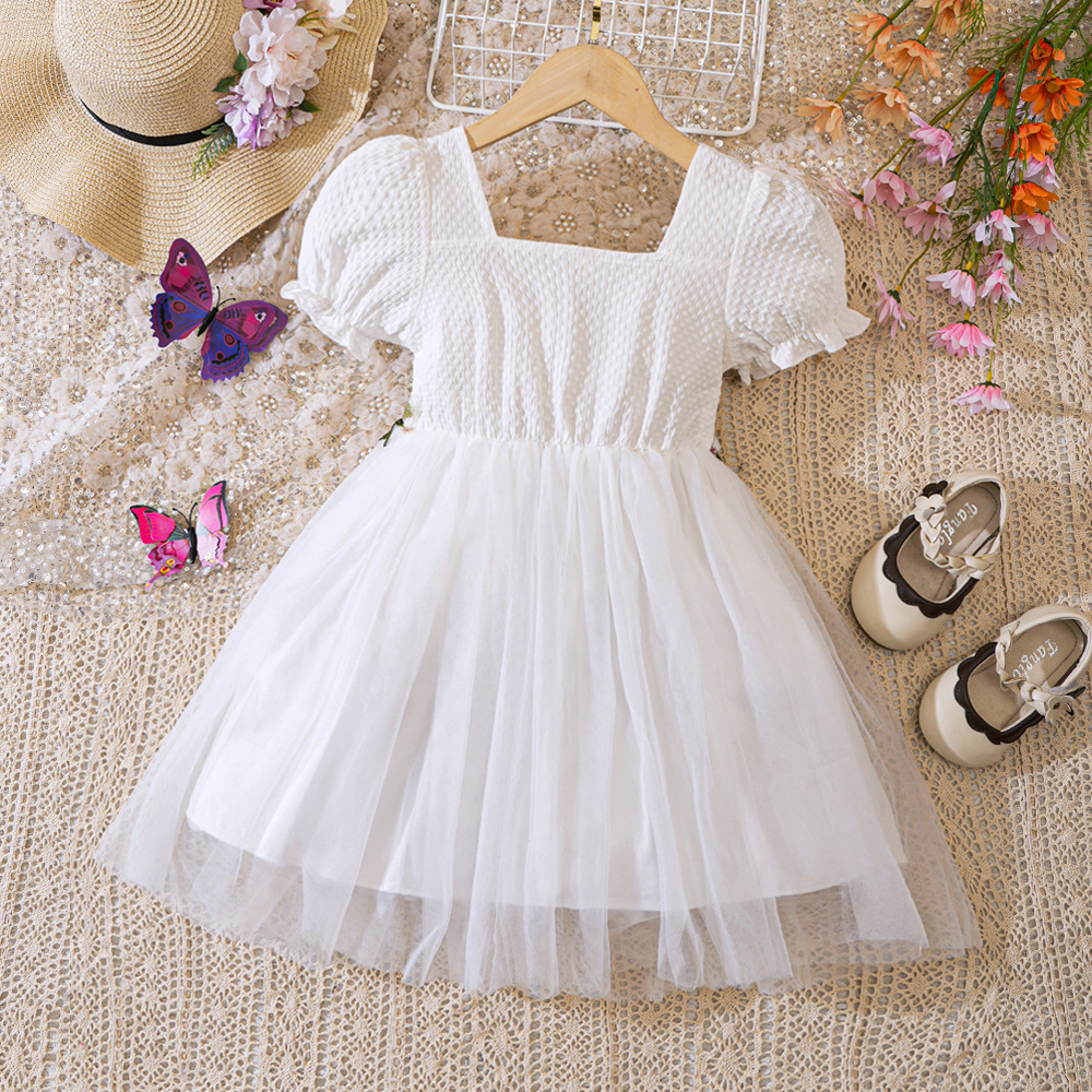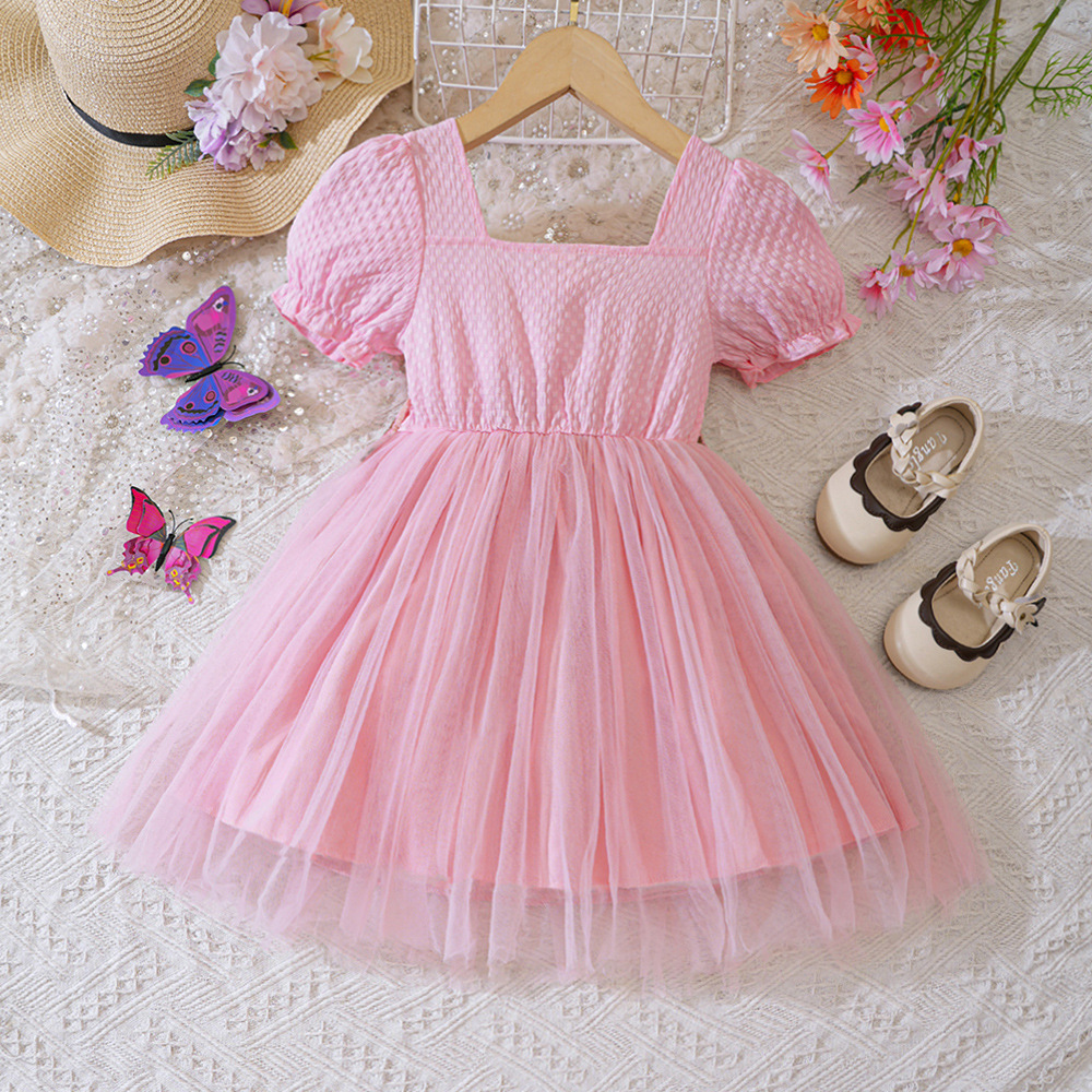 EW 대외 무역 아동복 어린이 새 소녀 여름 거품 소매 스티칭 메쉬 원피스 Q1297-C