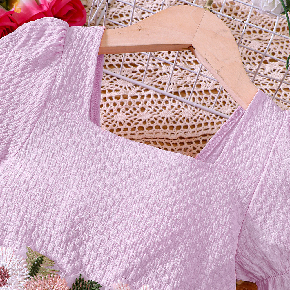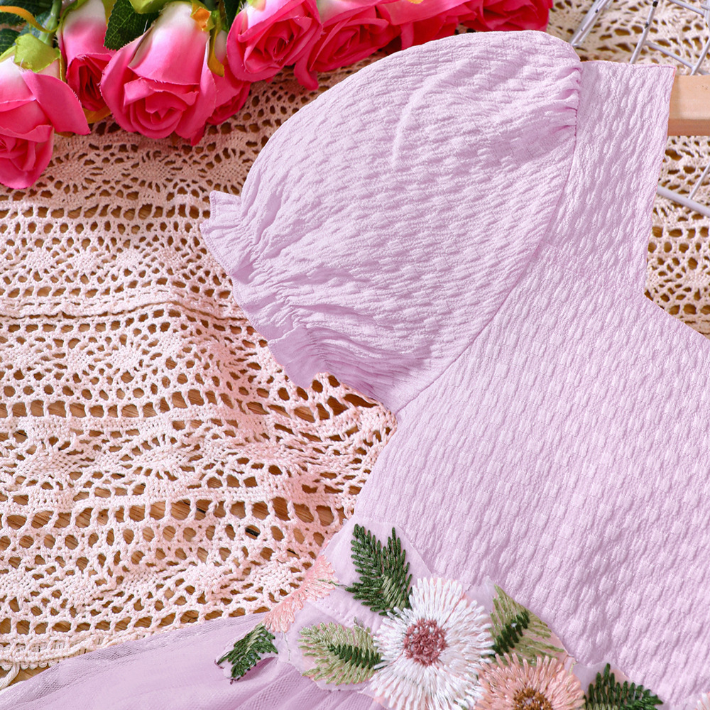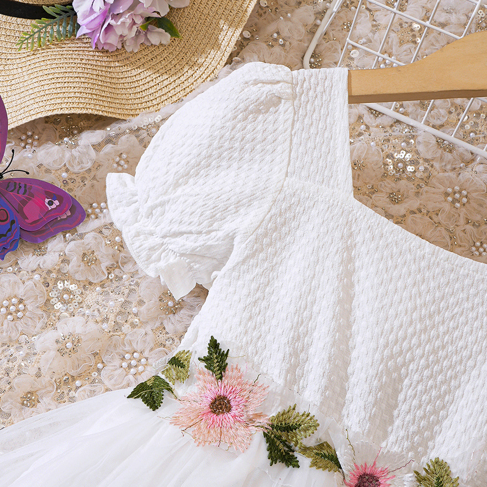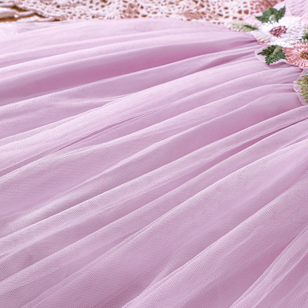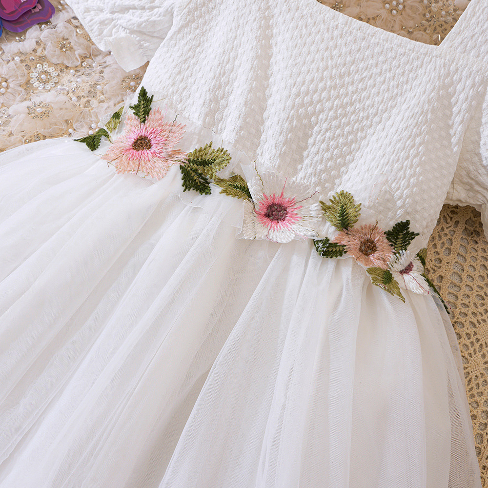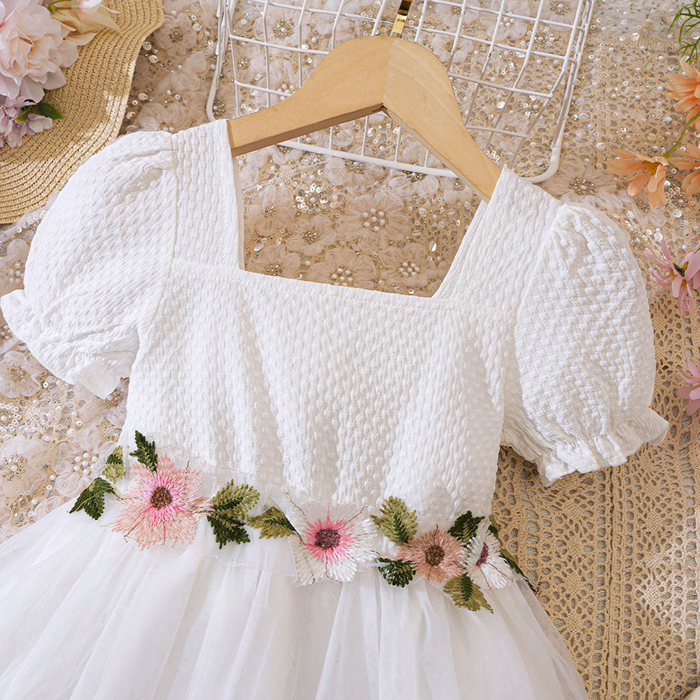 EW 대외 무역 아동복 어린이 새 소녀 여름 거품 소매 스티칭 메쉬 원피스 Q1297-C