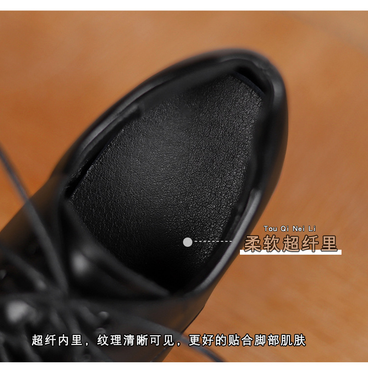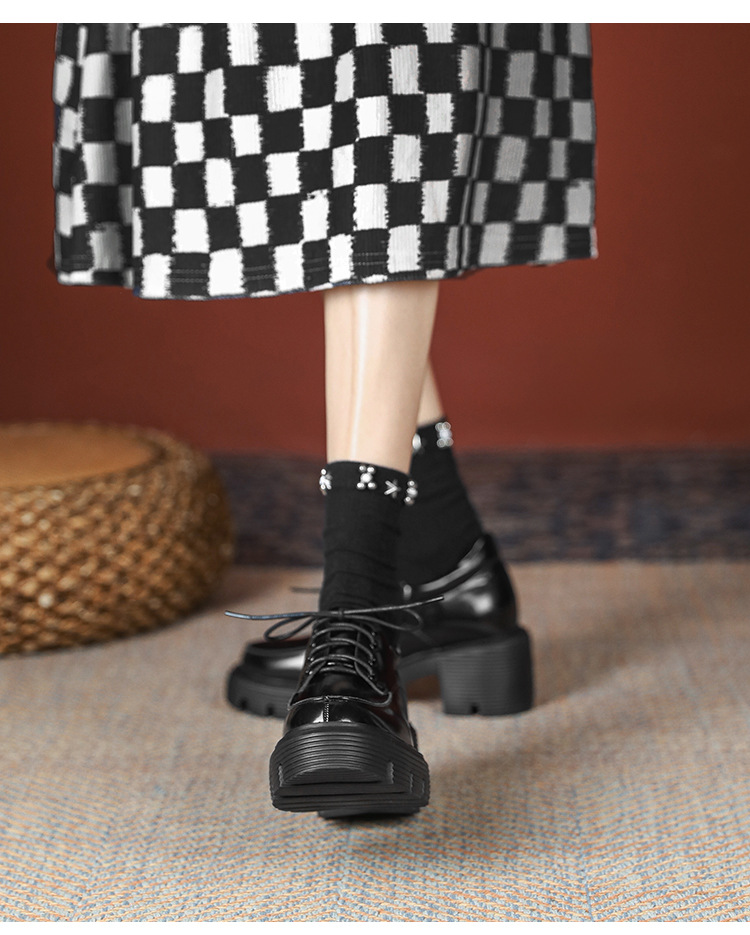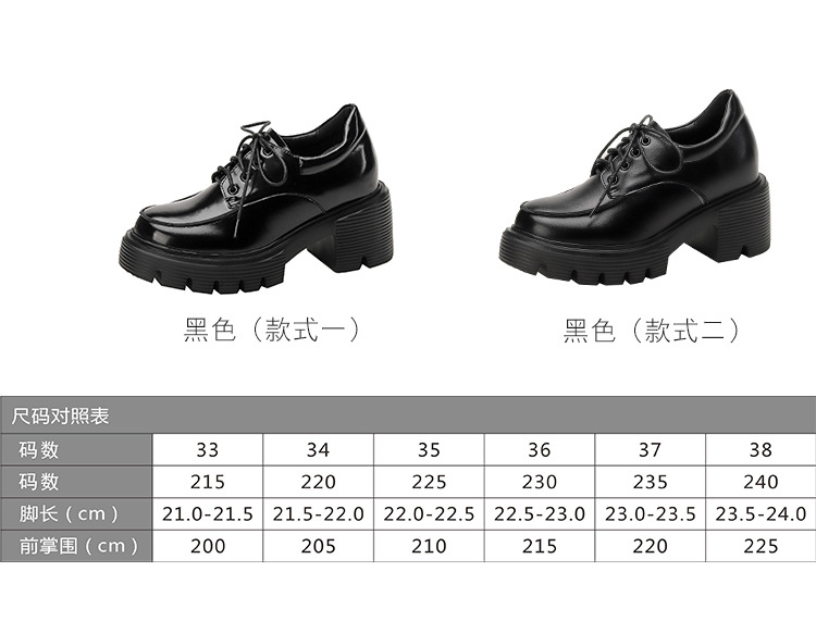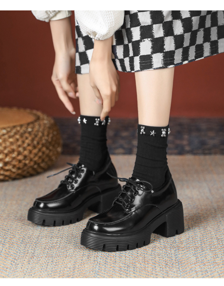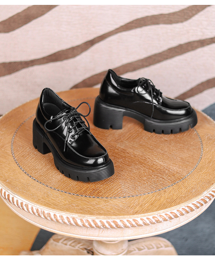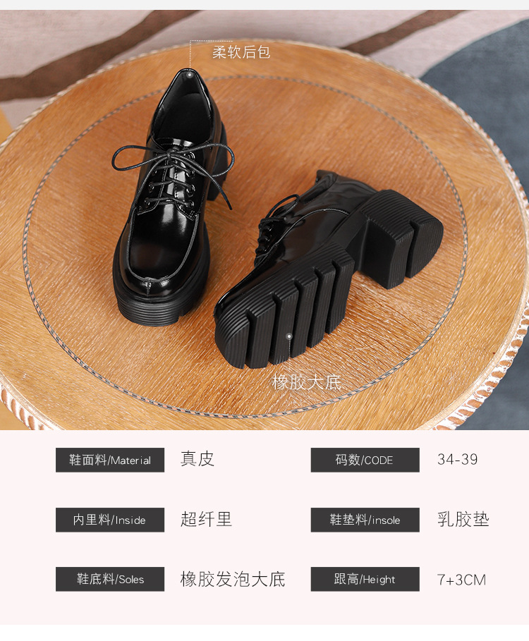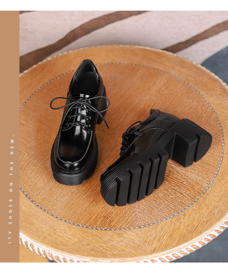 새로운 봄과 가을 레이스 업 둥근 발가락 두꺼운 바닥 스몰 사이즈 두꺼운 뒤꿈치를 2024 여성을위한 10lm 검은 색 영국 가죽 신발 내부 높이 증가스토어 가기
