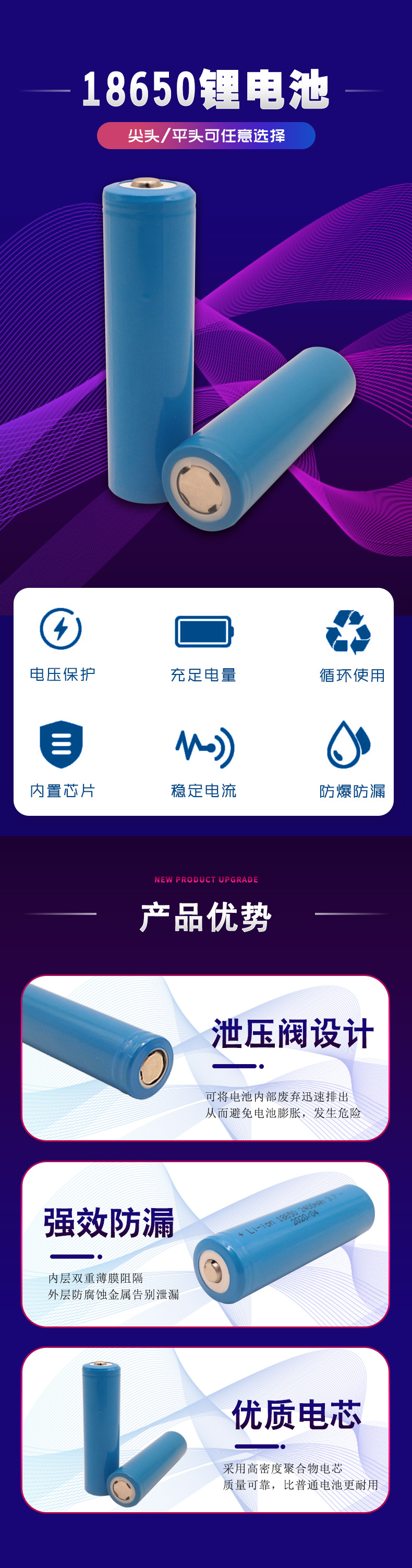 • 18650 2200mah 플랫 헤드 (단일 가격)