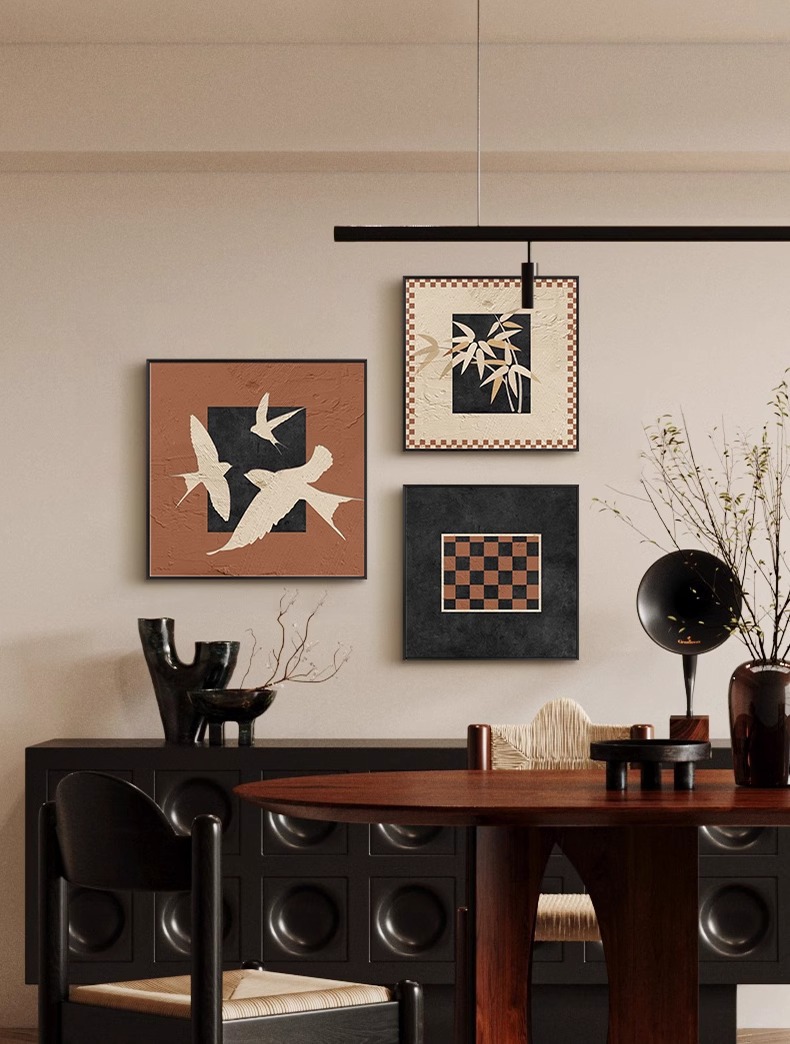 프랑스 스타일의 중국 스타일 레스토랑 교수형 그림 식당 틈새 배경 벽 벽화 서랍장 장식 복고풍 고급 장식 그림