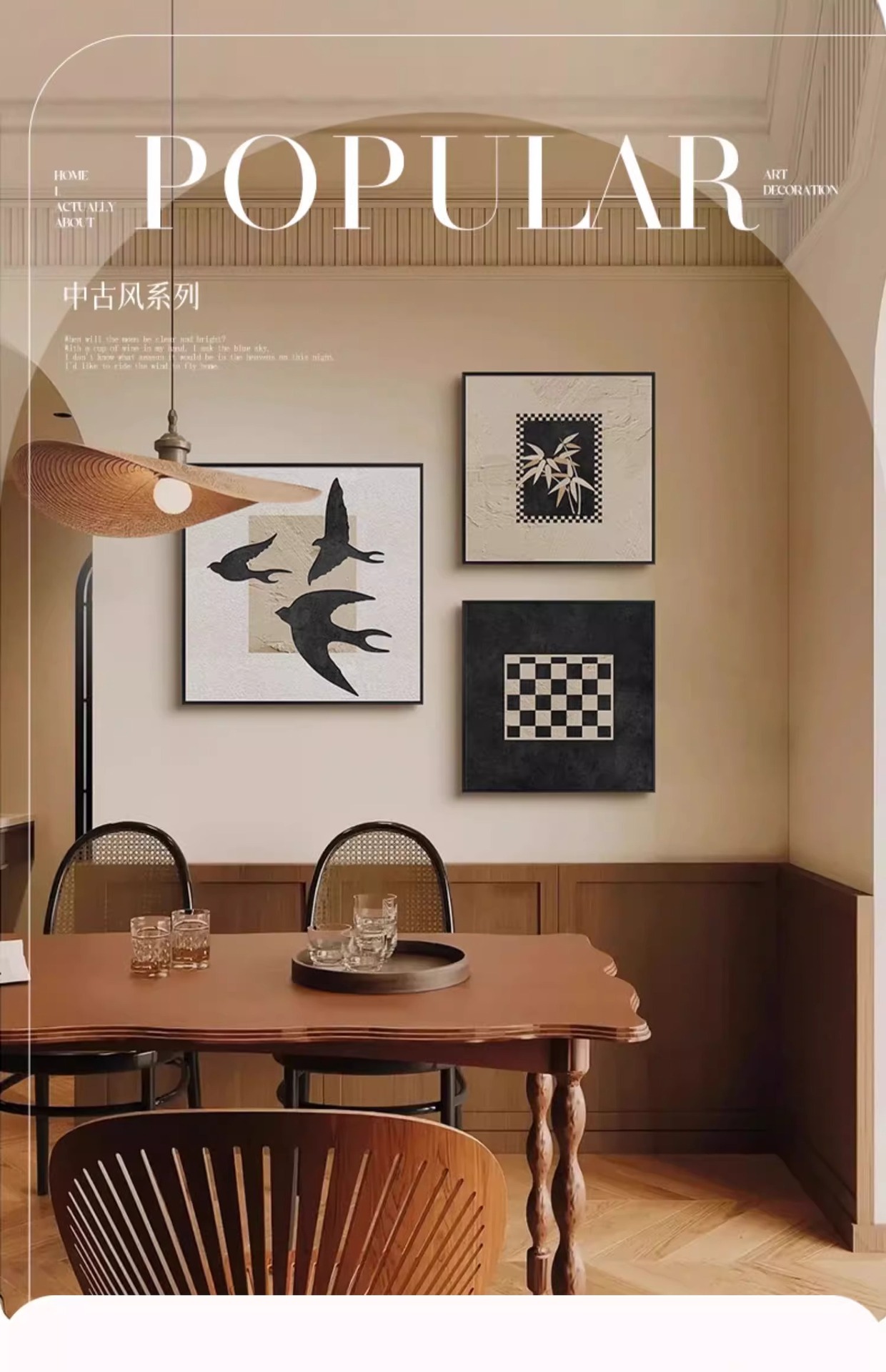 프랑스 스타일의 중국 스타일 레스토랑 교수형 그림 식당 틈새 배경 벽 벽화 서랍장 장식 복고풍 고급 장식 그림스토어 가기