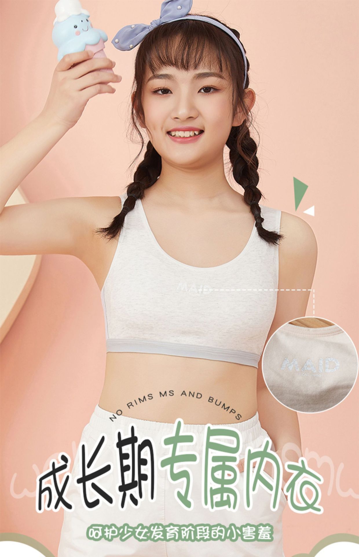 여성의 원활한 속옷, 중학생 브래지어, 순수한면 원활한 편안한 얇은 통기성 조끼