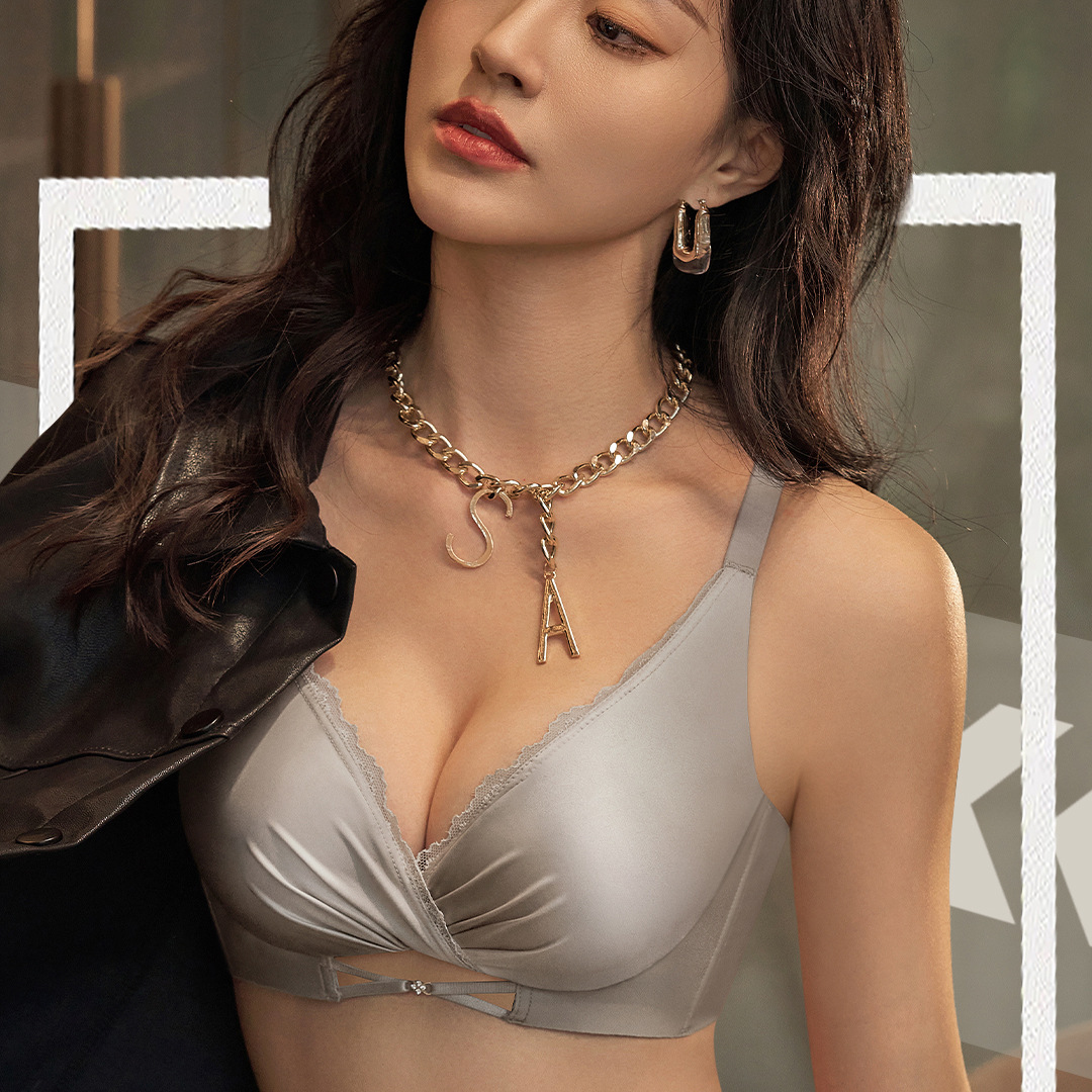 6617 # 새틴 브래지어 브랜드 두꺼운 찐 빵 컵 속옷 뷰티 백 무선 브래지어스토어 가기