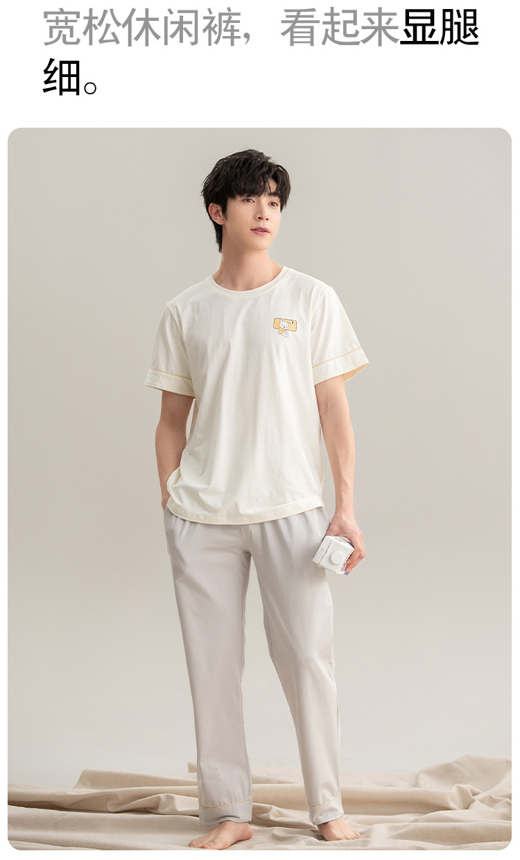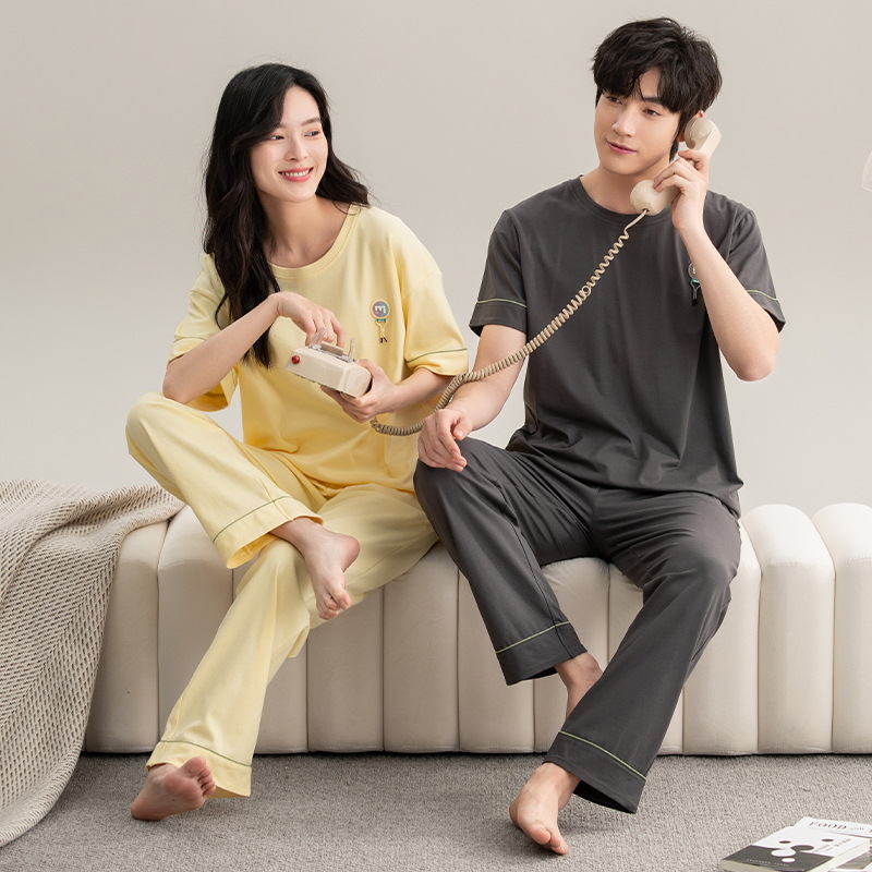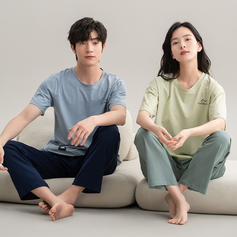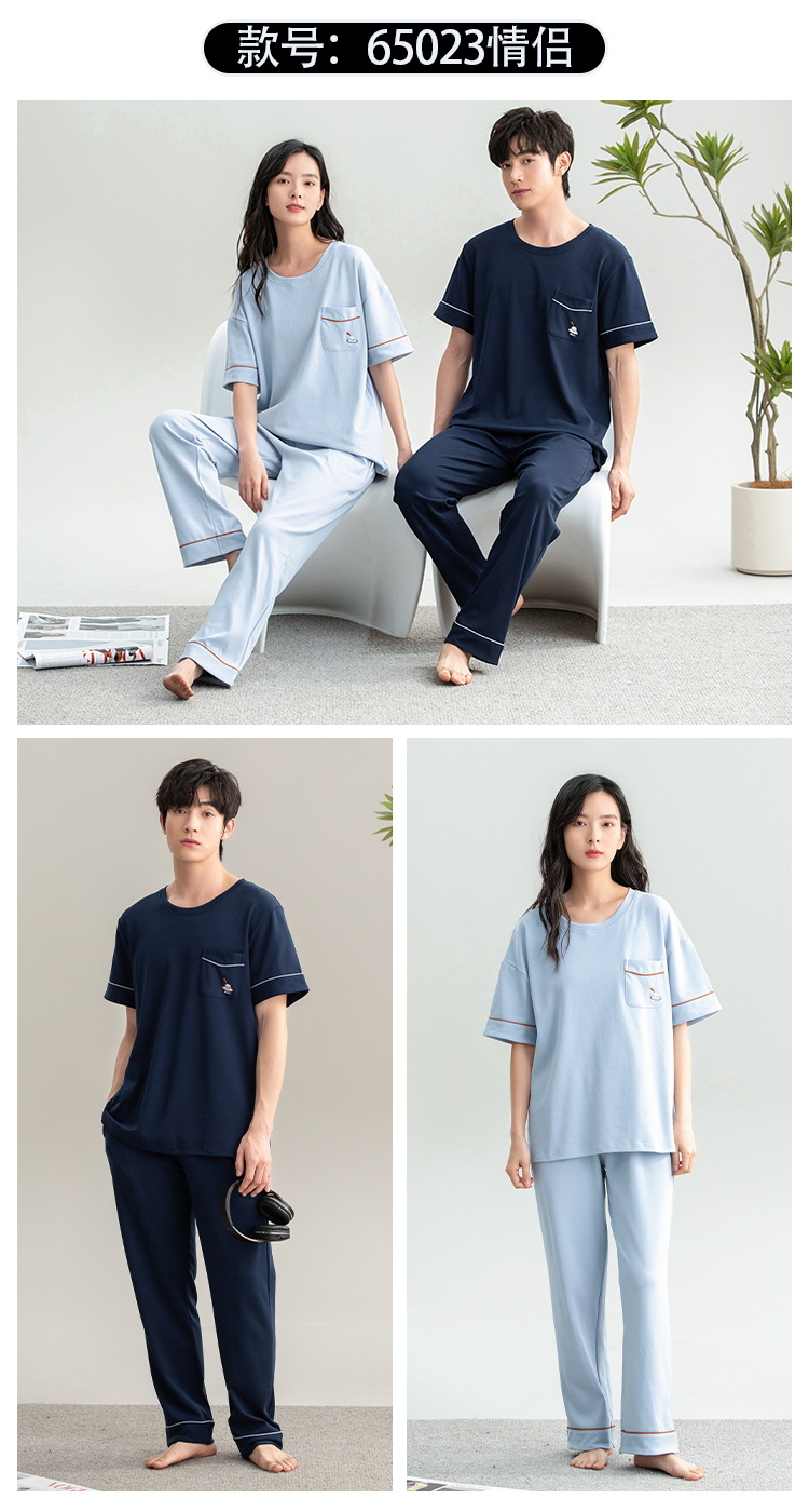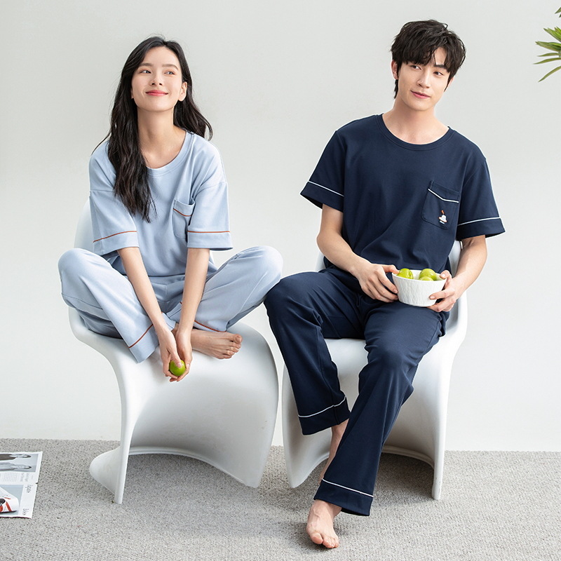 [항균성 면] A 급 항균 커플 잠옷 여성 여름 가정은 순면 단순 남성 반팔 바지 세트 착용스토어 가기