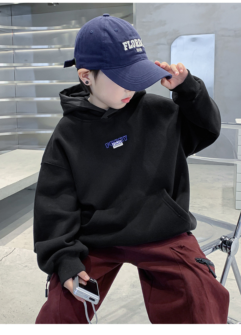 아동 의류 소년 봄 운동복 2025 새로운 중대형 소년 긴팔 후드 탑 아동 봄, 가을 옷스토어 가기