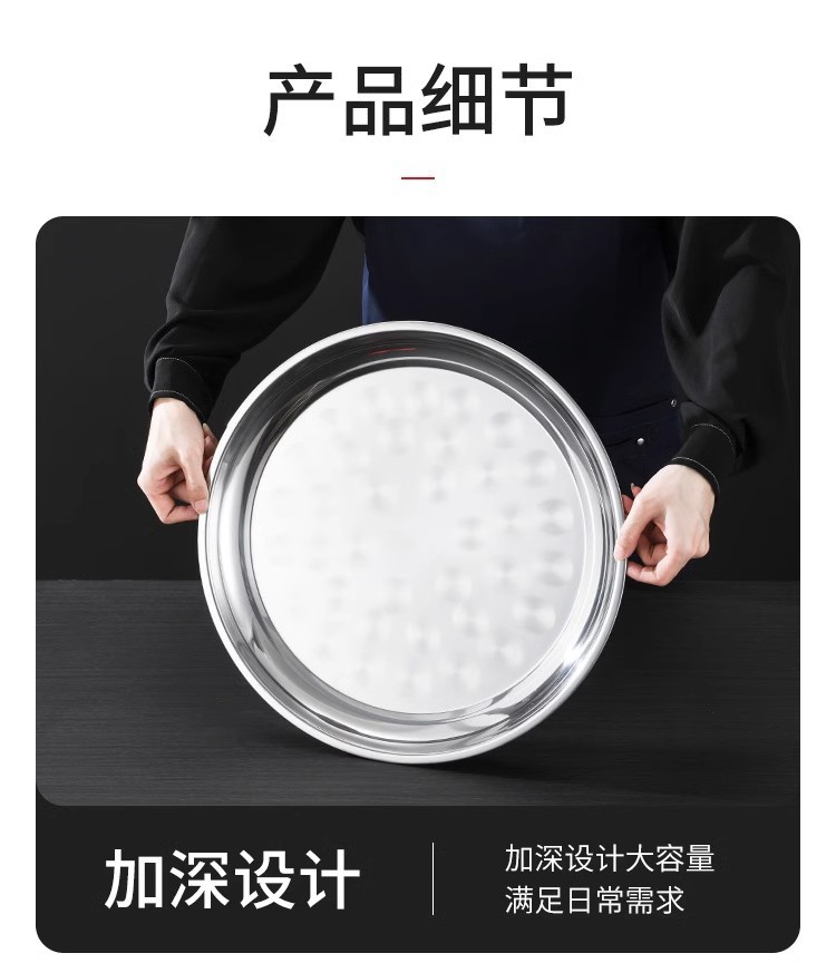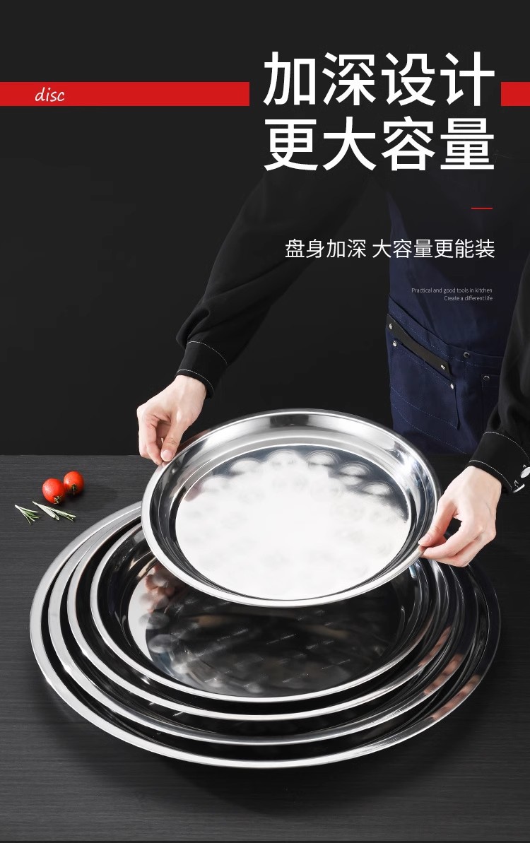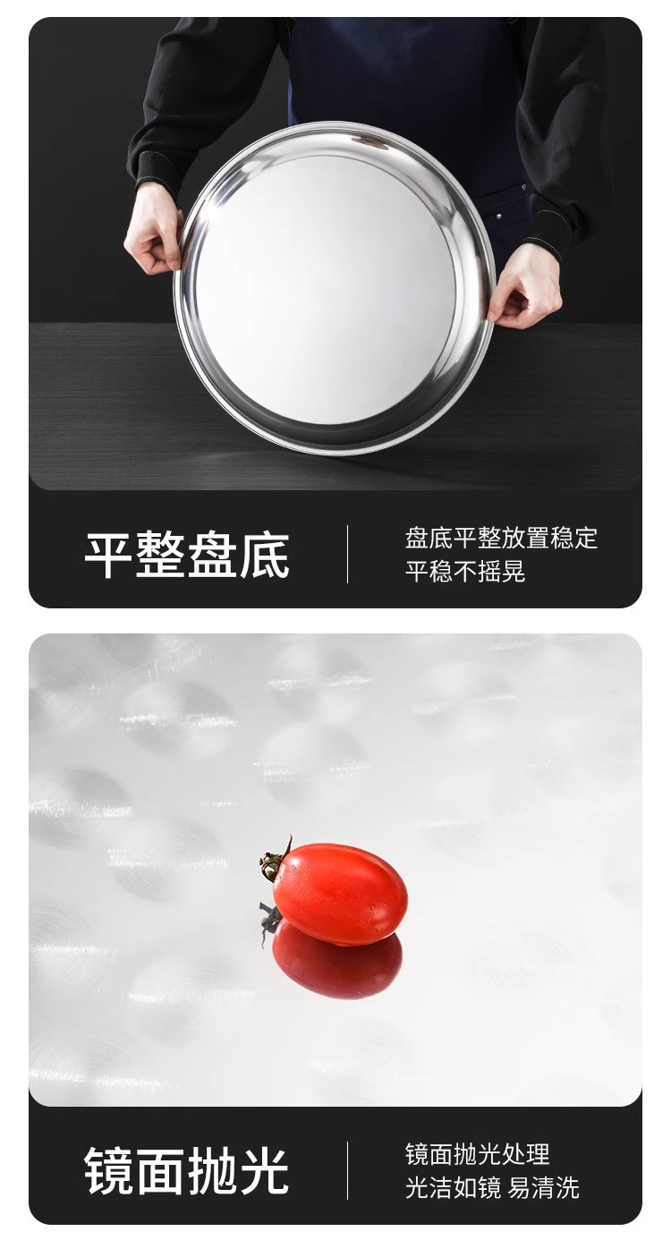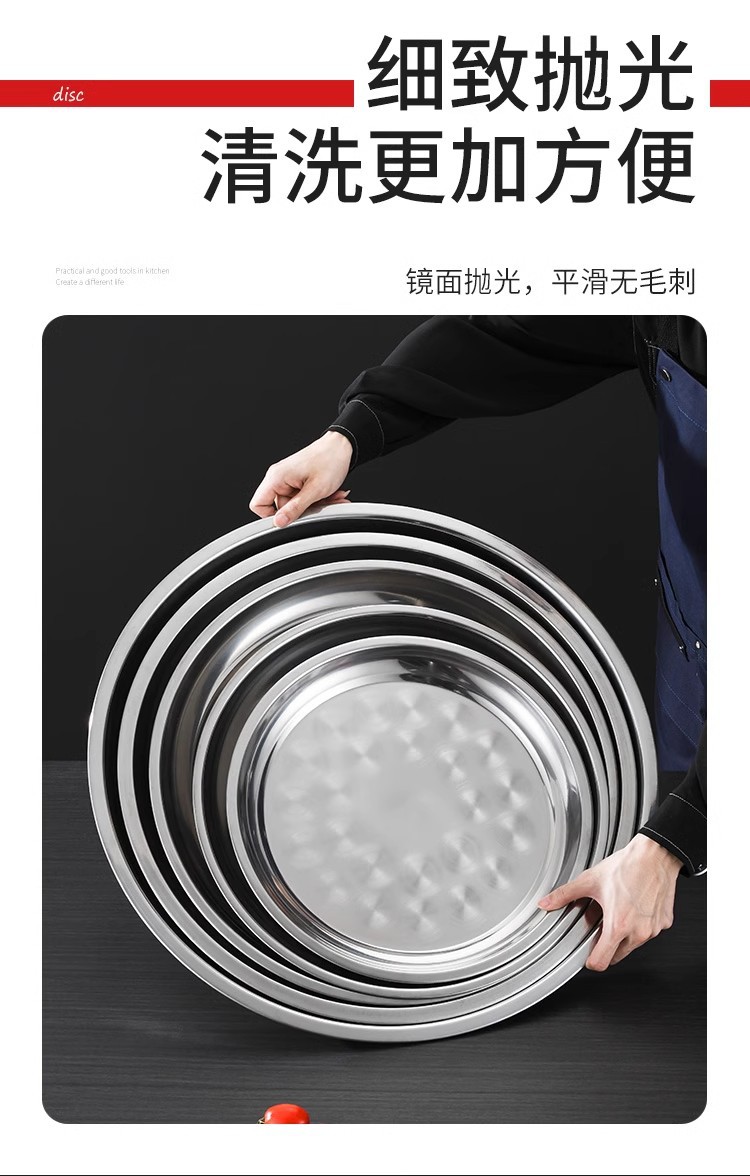 초두꺼운 스테인레스 스틸 대형 디스크 가정용 생선 헤드 플레이트 인치 접시 플레이트 얕은 플레이트 호텔 대형 트레이 상업용 플랫 플레이트스토어 가기