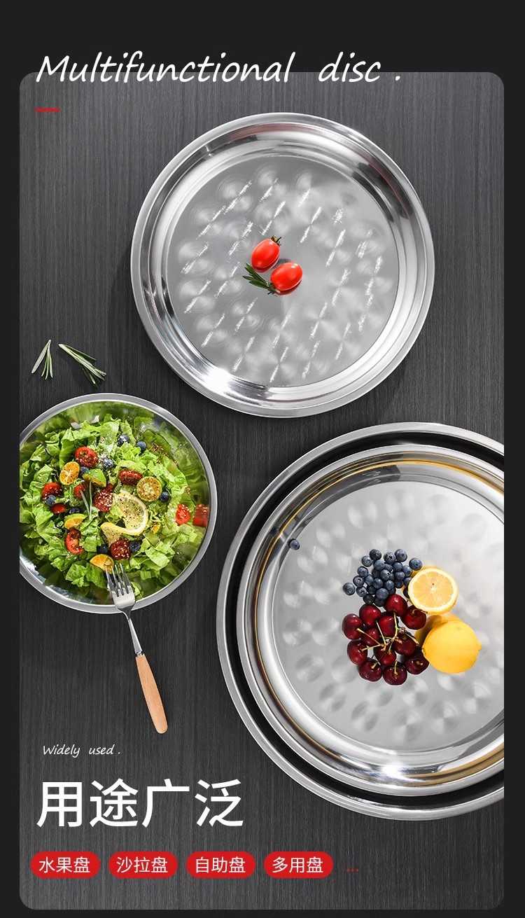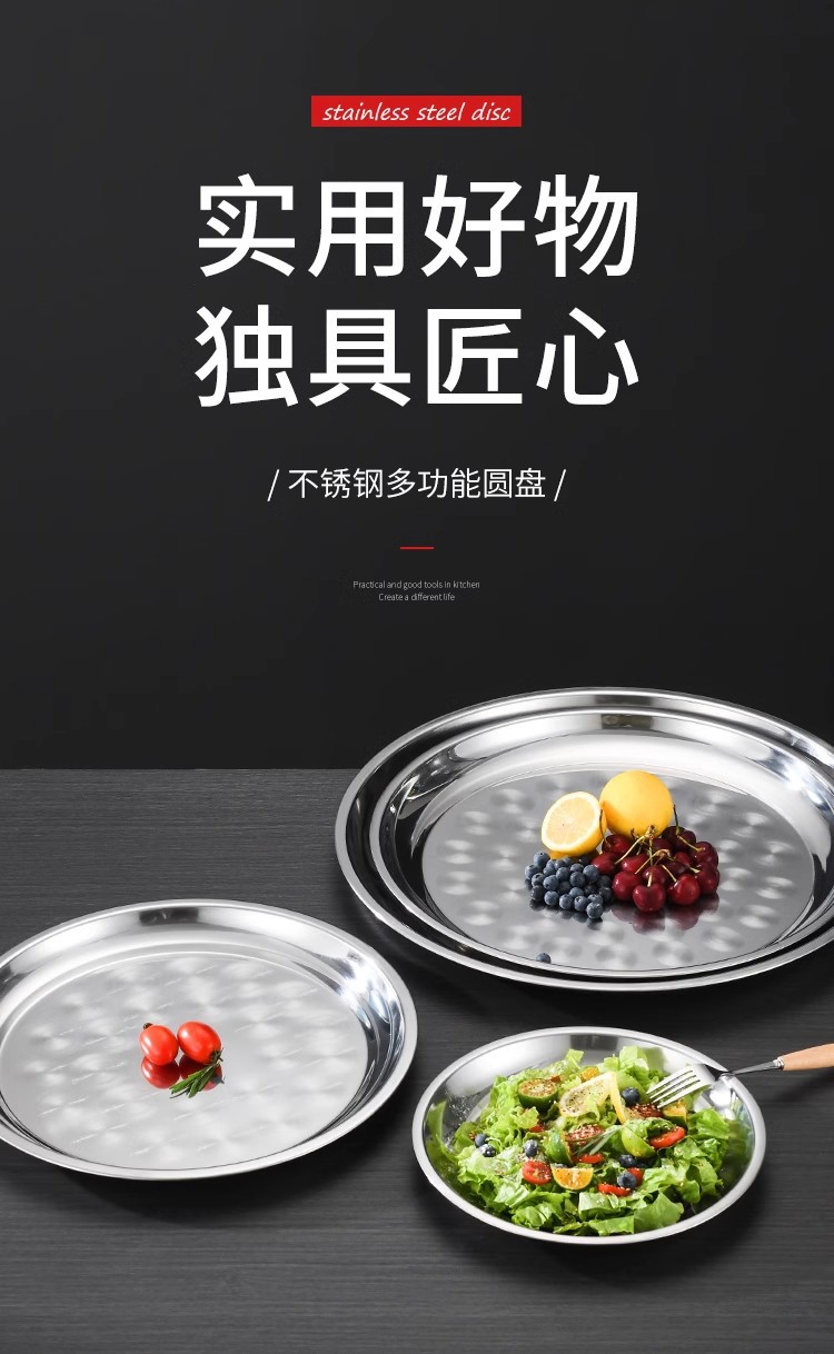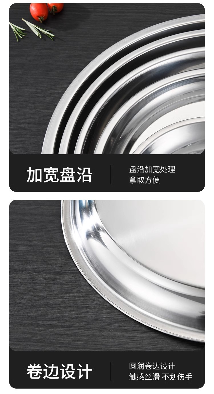 초두꺼운 스테인레스 스틸 대형 디스크 가정용 생선 헤드 플레이트 인치 접시 플레이트 얕은 플레이트 호텔 대형 트레이 상업용 플랫 플레이트스토어 가기