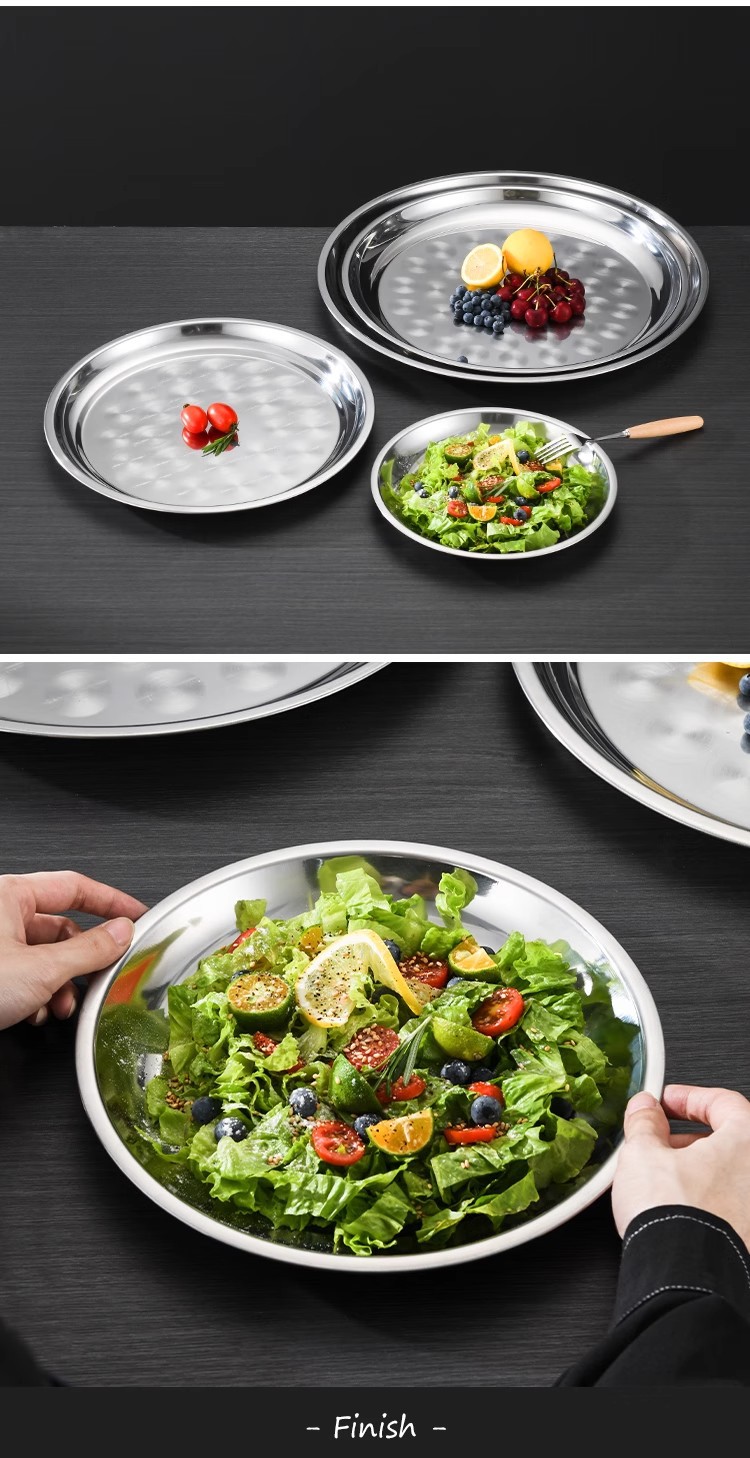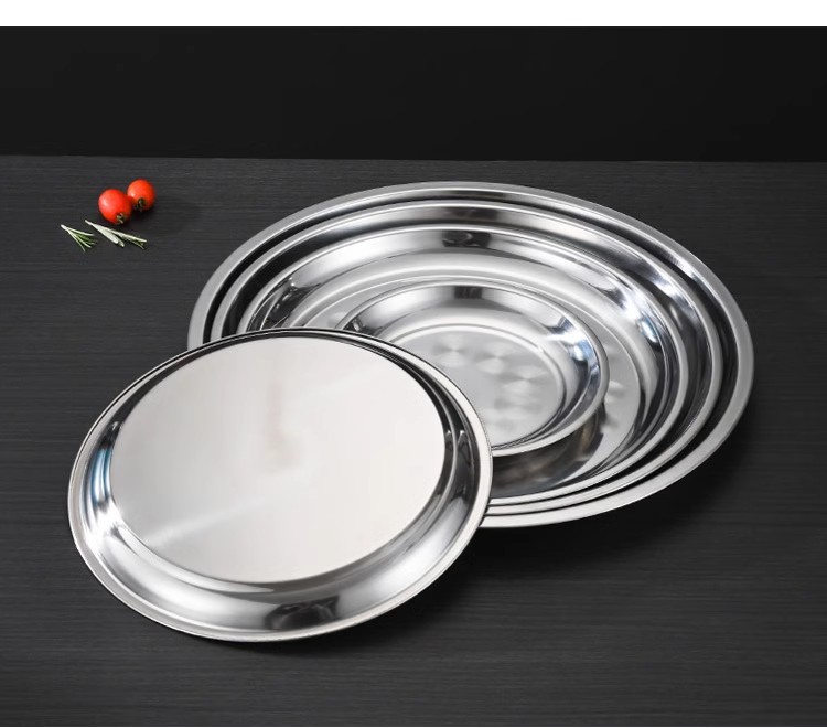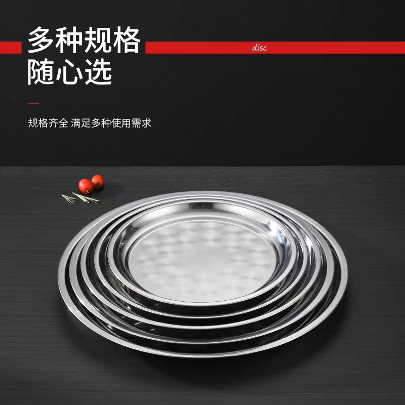 초두꺼운 스테인레스 스틸 대형 디스크 가정용 생선 헤드 플레이트 인치 접시 플레이트 얕은 플레이트 호텔 대형 트레이 상업용 플랫 플레이트