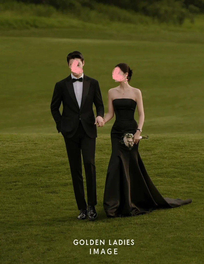 스튜디오 테마 새로운 블랙 모리 튜브 탑 새틴 원피스 복고풍 기질 헵번 스타일 프랑스 사진 웨딩 원피스스토어 가기