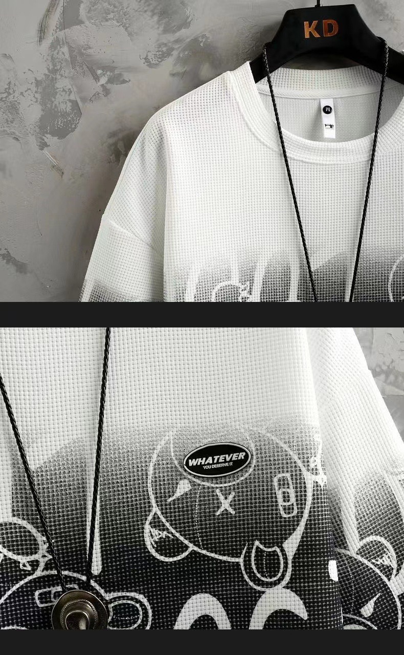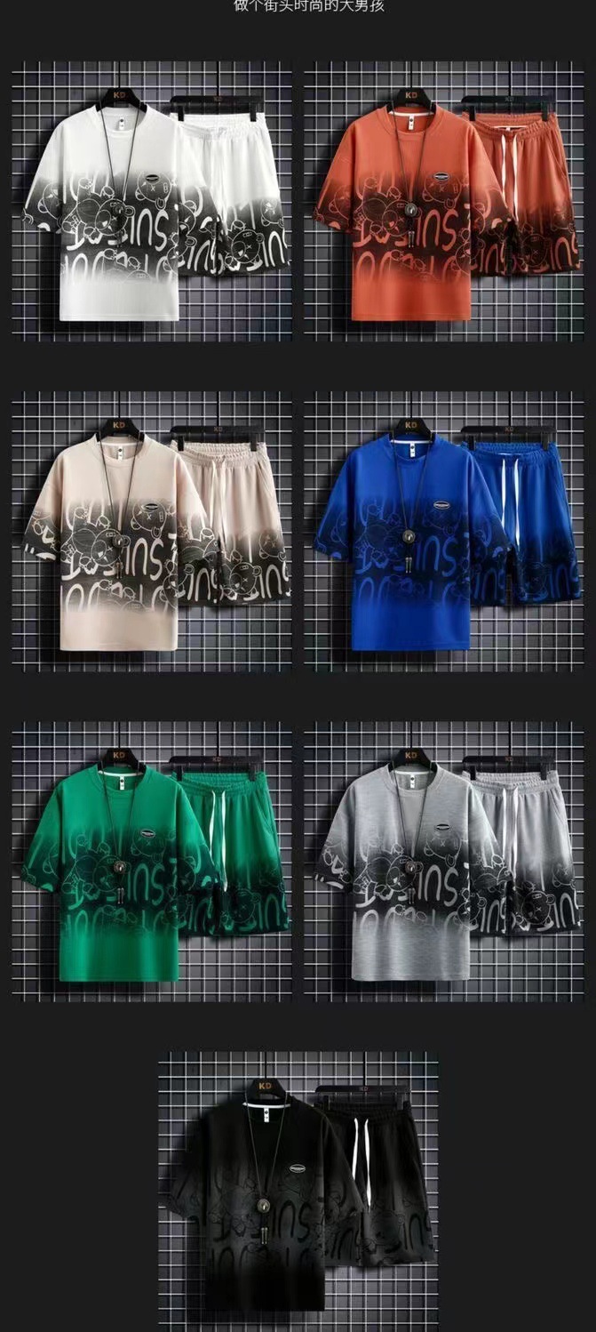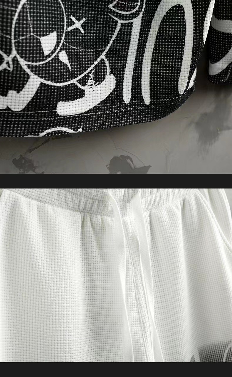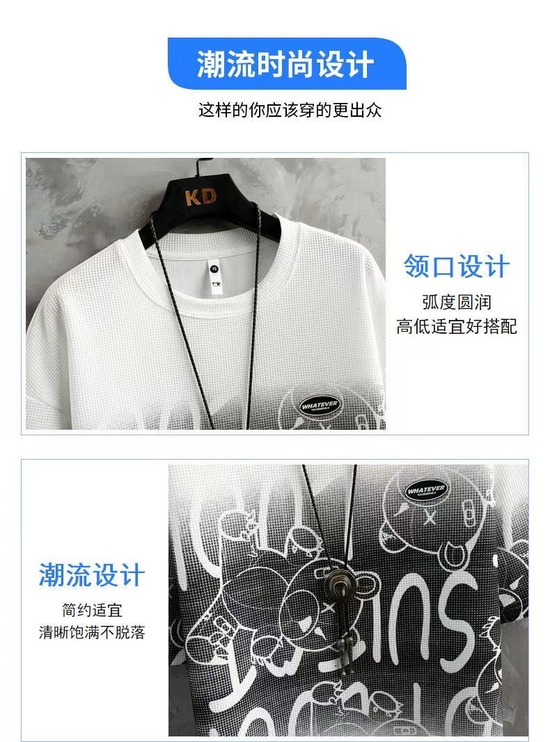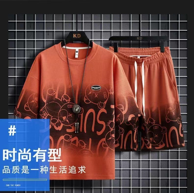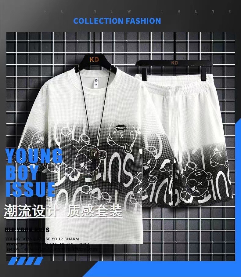 와플 스포츠 캐주얼 세트 남자 여름 얇은 아이스 실크 반팔 반바지 투피스 세트 남자 반팔 티셔츠스토어 가기