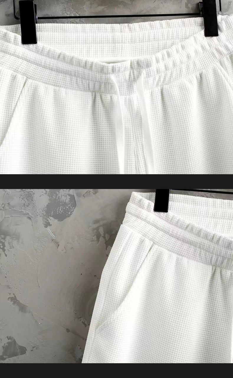 와플 스포츠 캐주얼 세트 남자 여름 얇은 아이스 실크 반팔 반바지 투피스 세트 남자 반팔 티셔츠