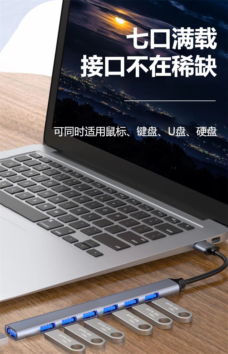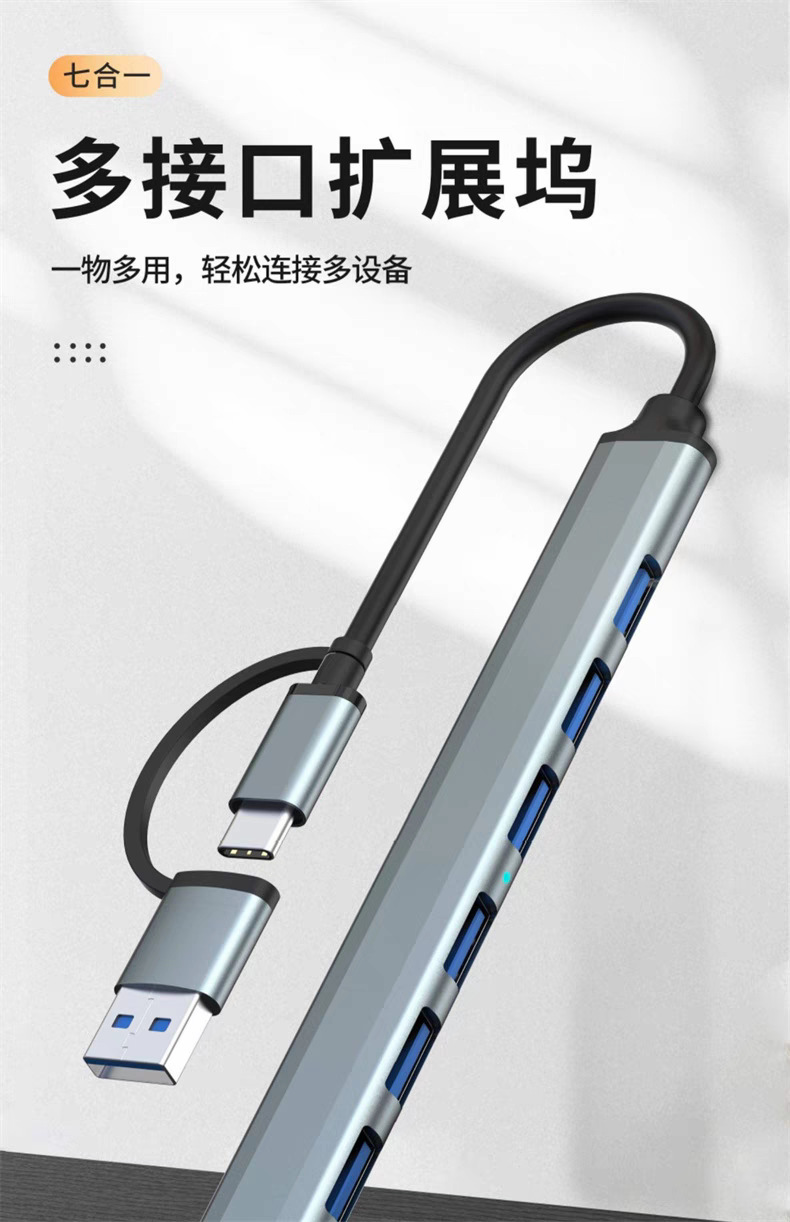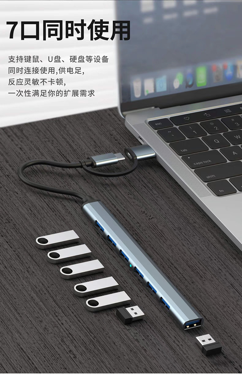 typec to usb3.0 도킹 스테이션 hubusb7 포트 분배기 휴대 전화 컴퓨터 연결 마우스 키보드 U 디스크 주변 장치스토어 가기