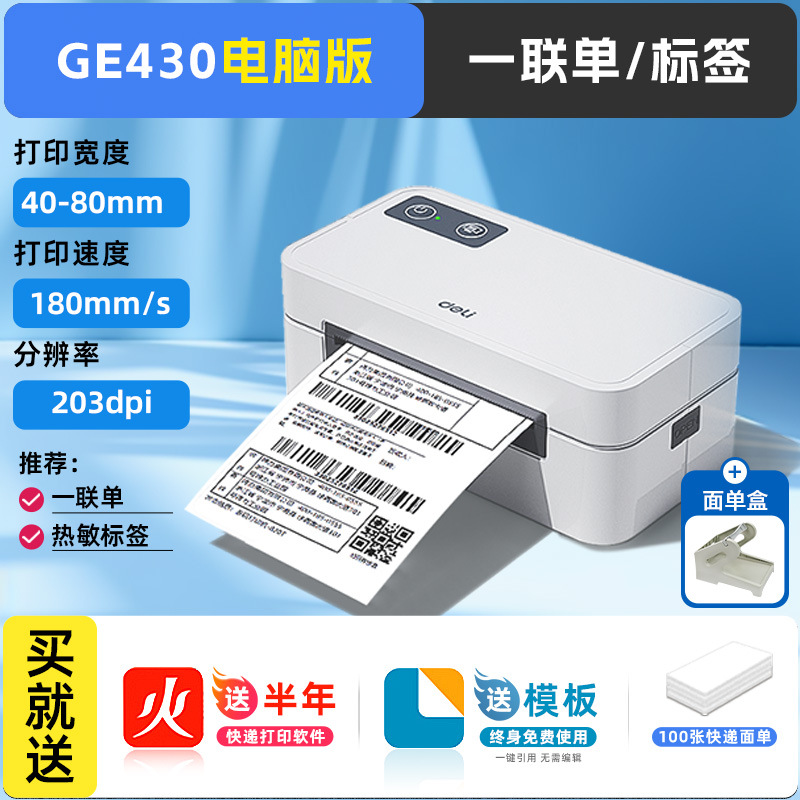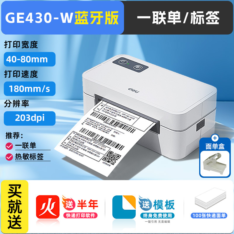 델리 GE430 전자식 송장 프린터 열전사 라벨 프린터 블루투스 소형 바코드 라벨 프린터스토어 가기