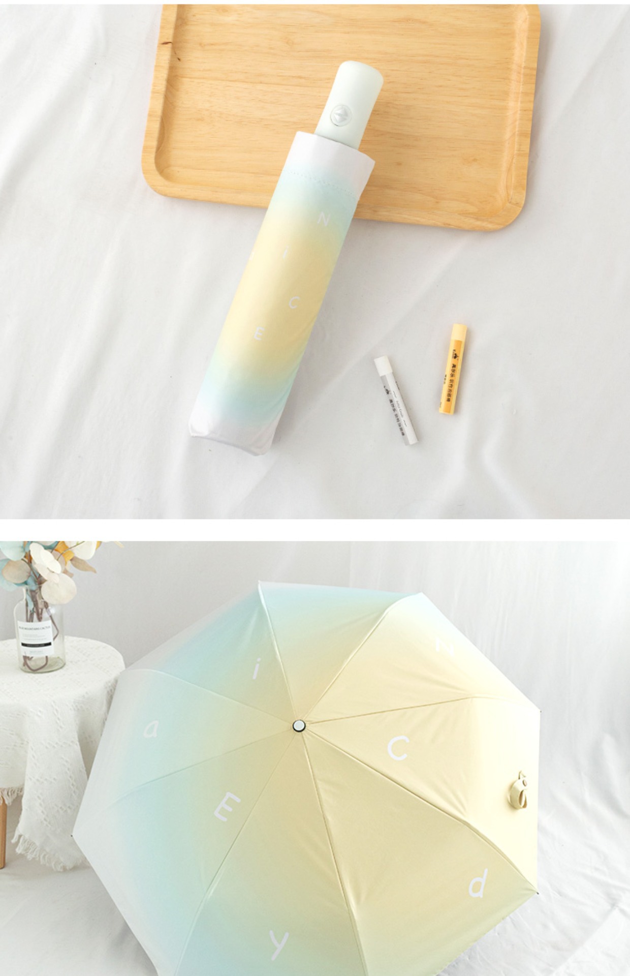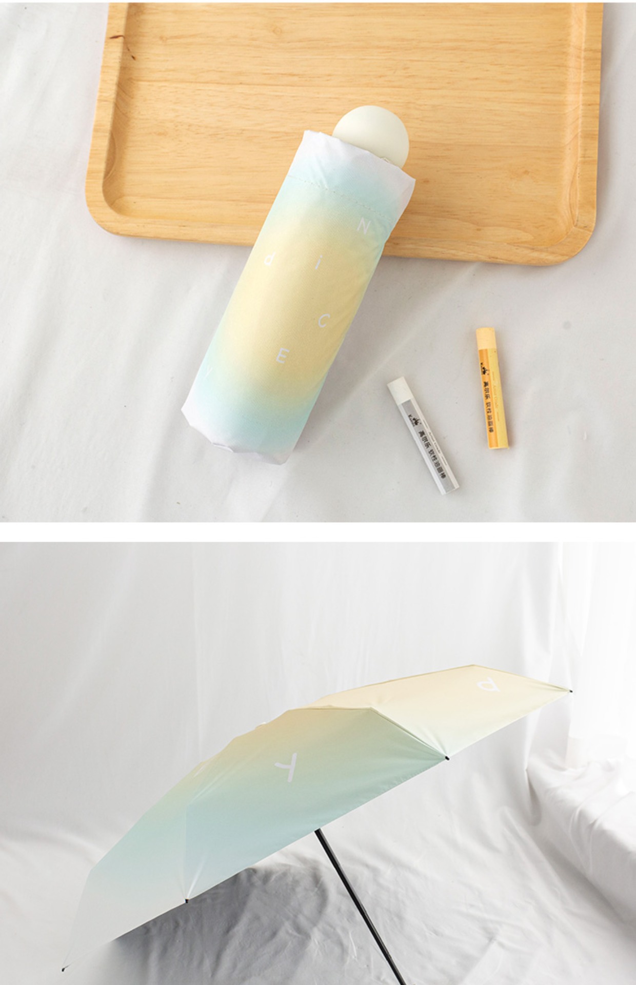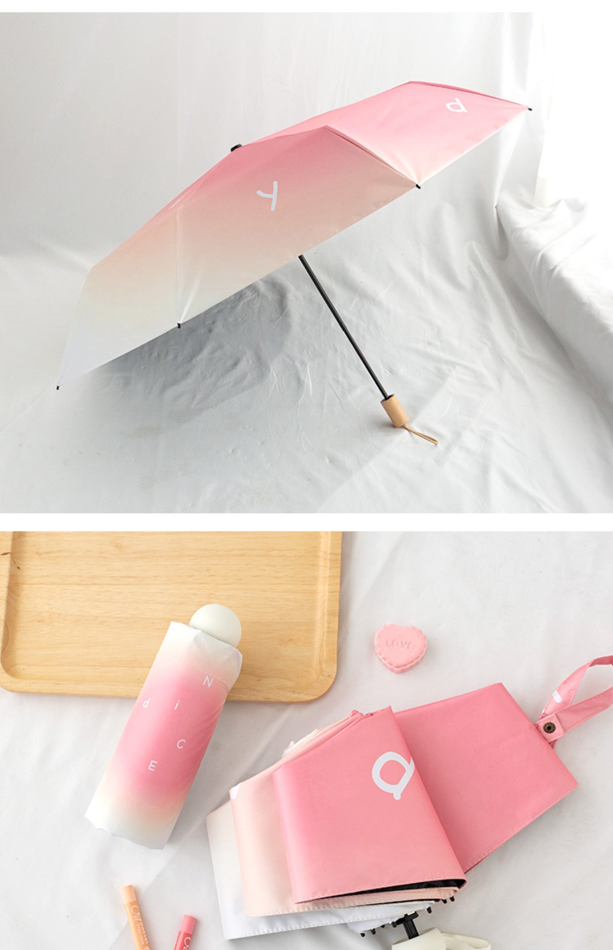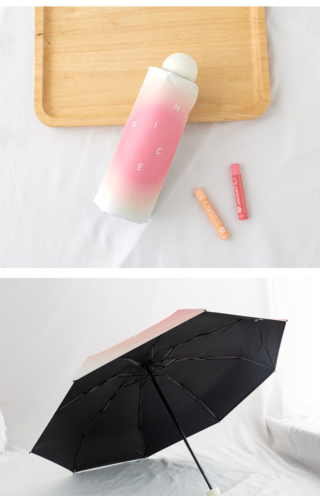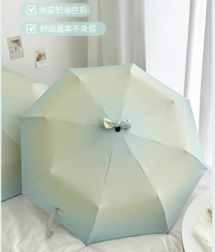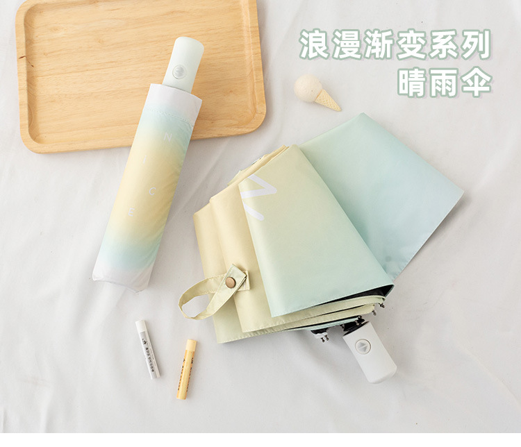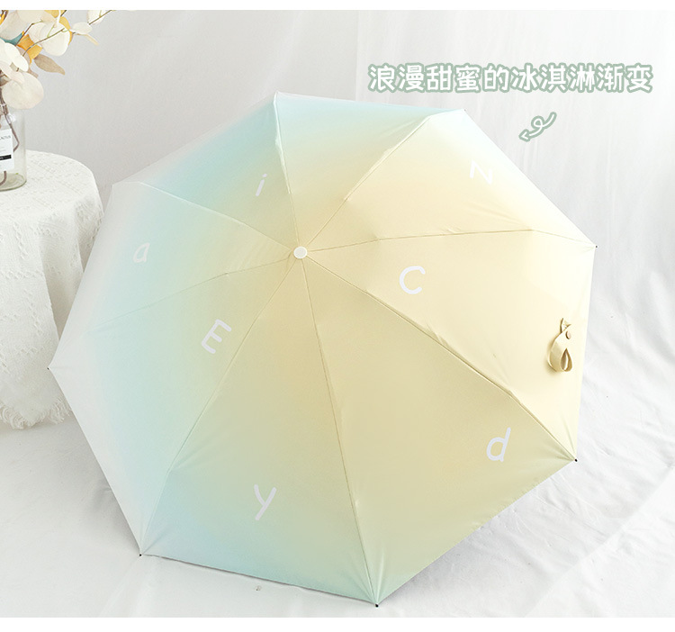 그라디언트 고급 써니 우산 이중 목적 블랙 고무 태양 보호 UV 보호 햇살 우산 여성용 그라디언트 휴대용 접는 우산