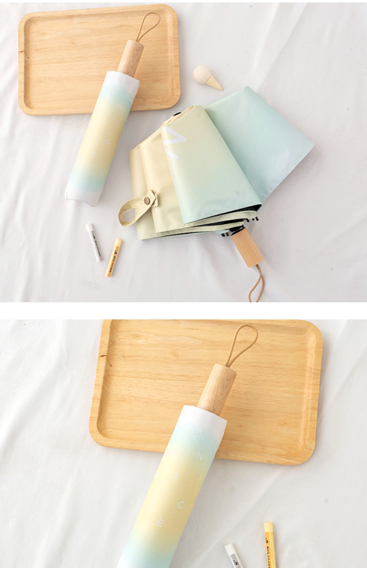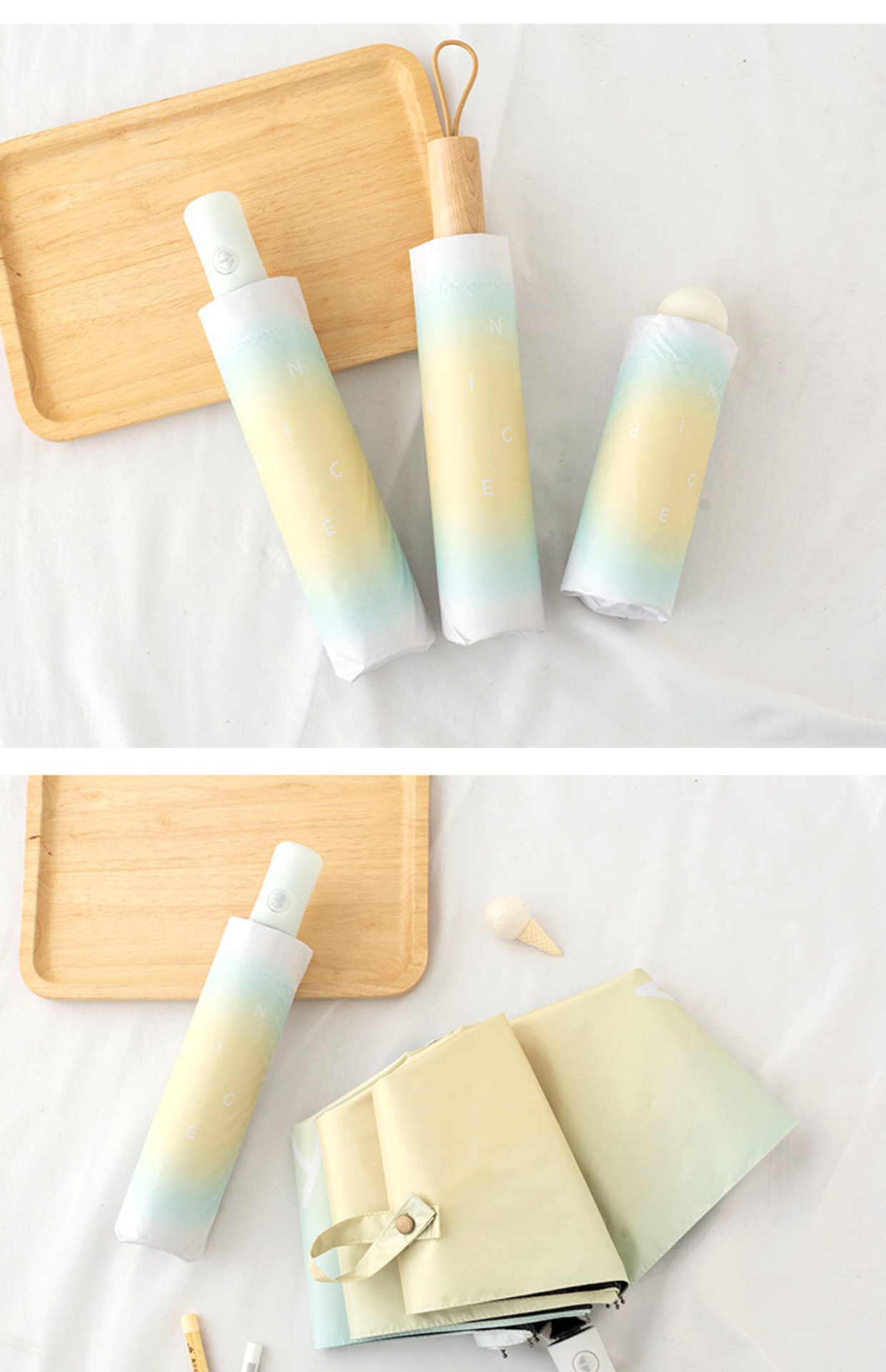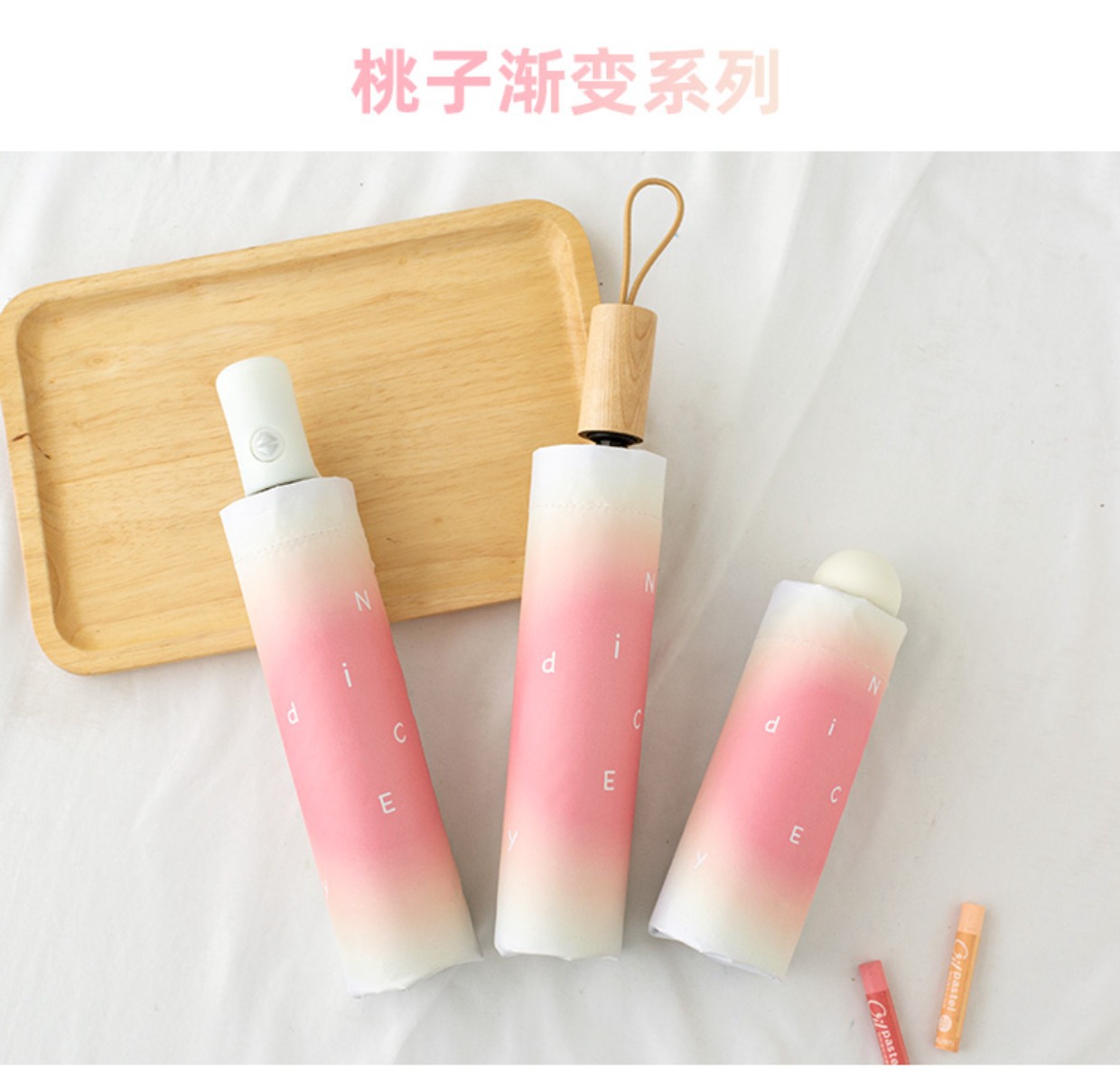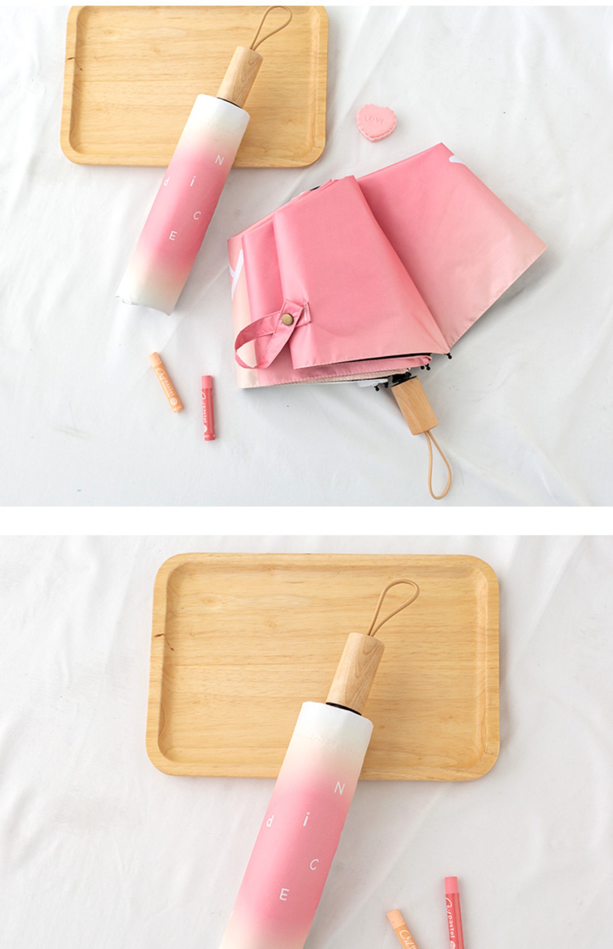 그라디언트 고급 써니 우산 이중 목적 블랙 고무 태양 보호 UV 보호 햇살 우산 여성용 그라디언트 휴대용 접는 우산