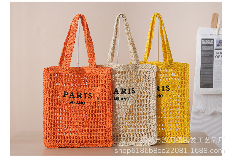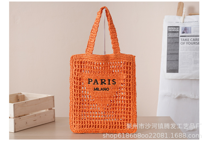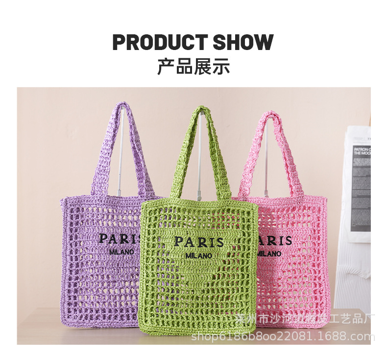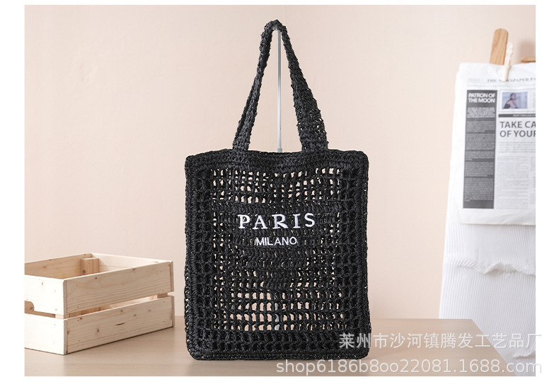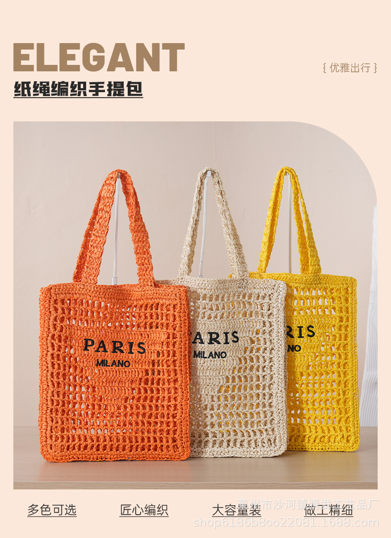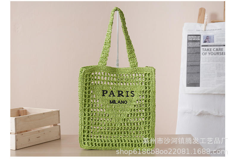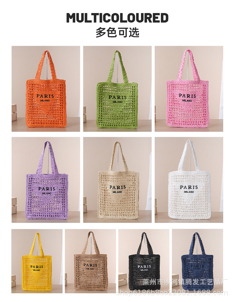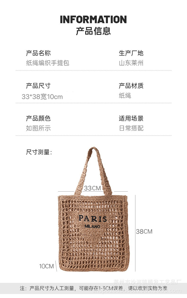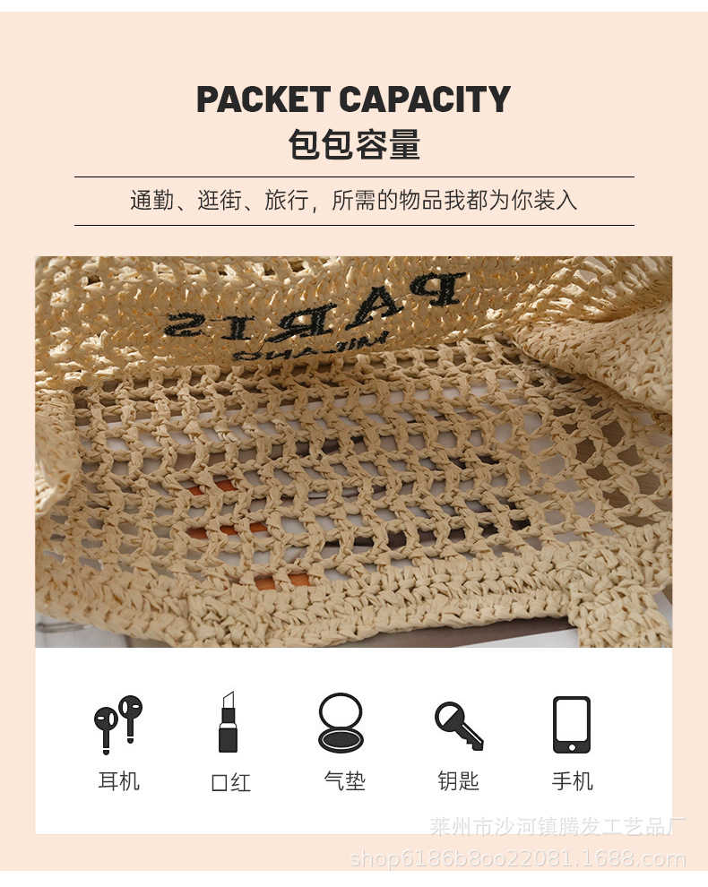 PS 스퀘어 패션 원 숄더 휴대용 짠 가방 메쉬 중공 비치 가방 여름 대용량 토트 휴가 여성용 가방스토어 가기