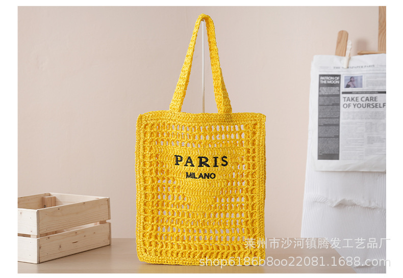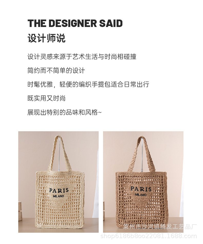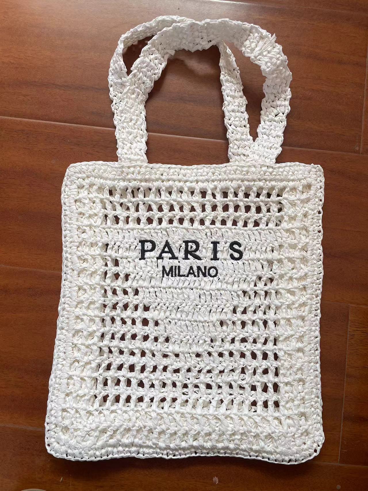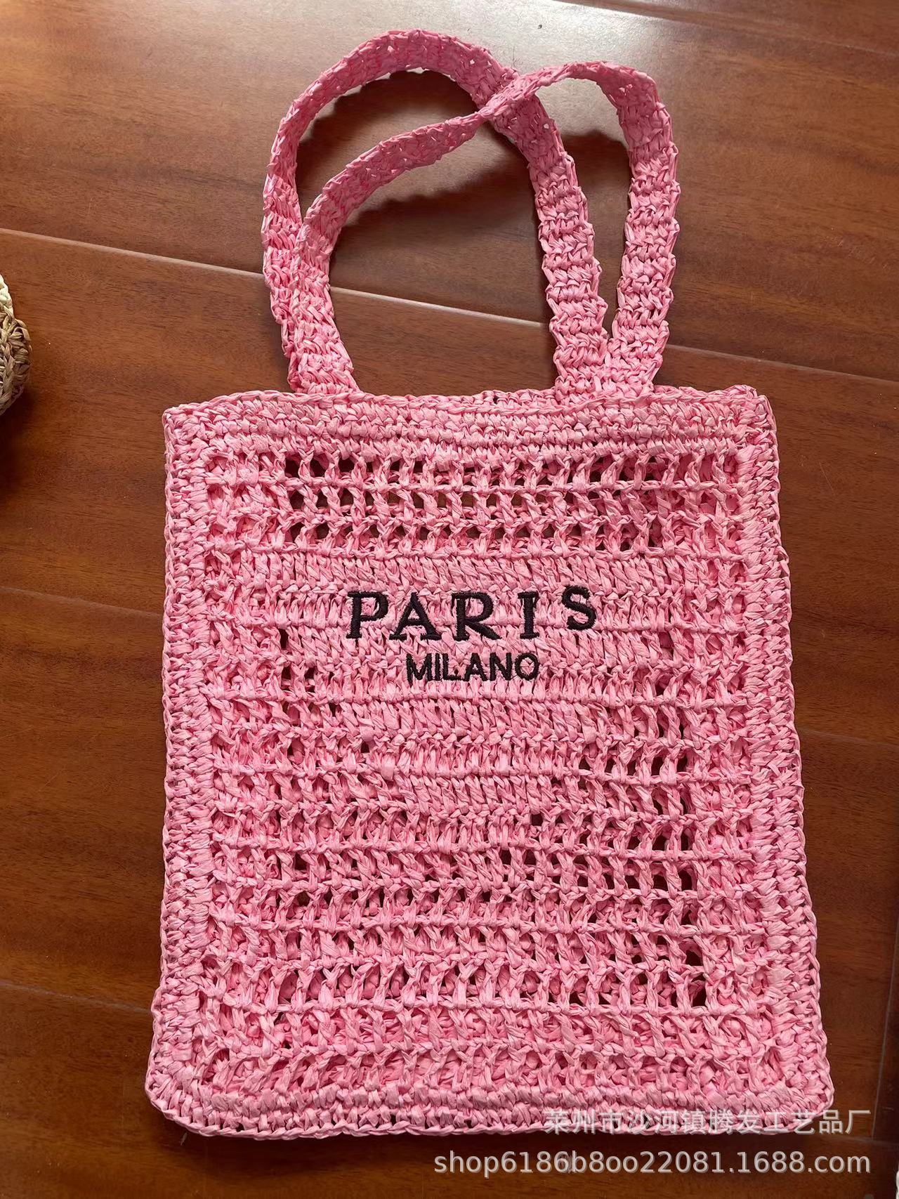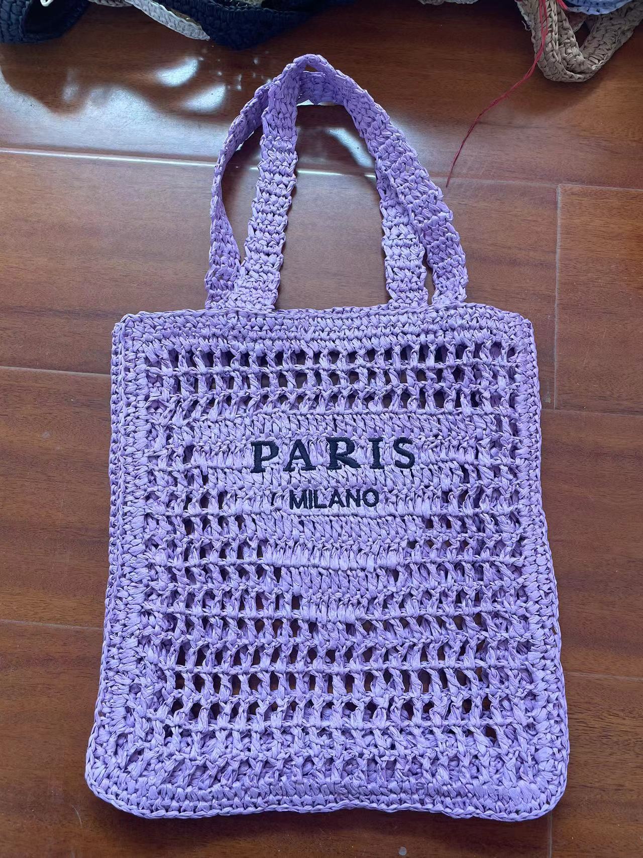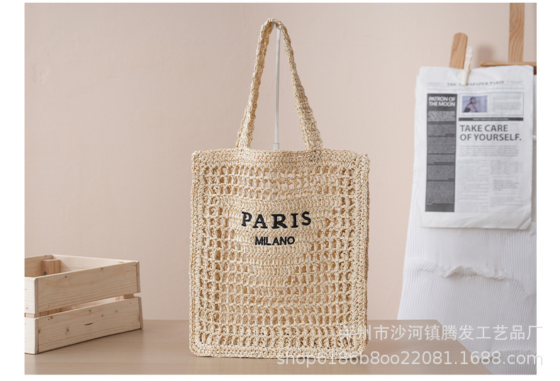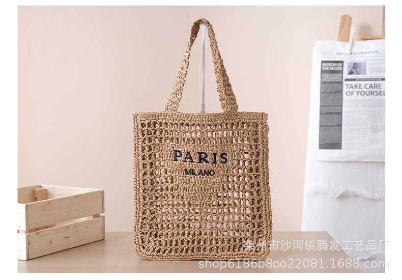 PS 스퀘어 패션 원 숄더 휴대용 짠 가방 메쉬 중공 비치 가방 여름 대용량 토트 휴가 여성용 가방스토어 가기
