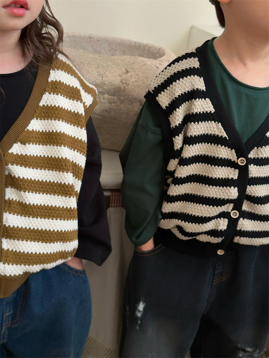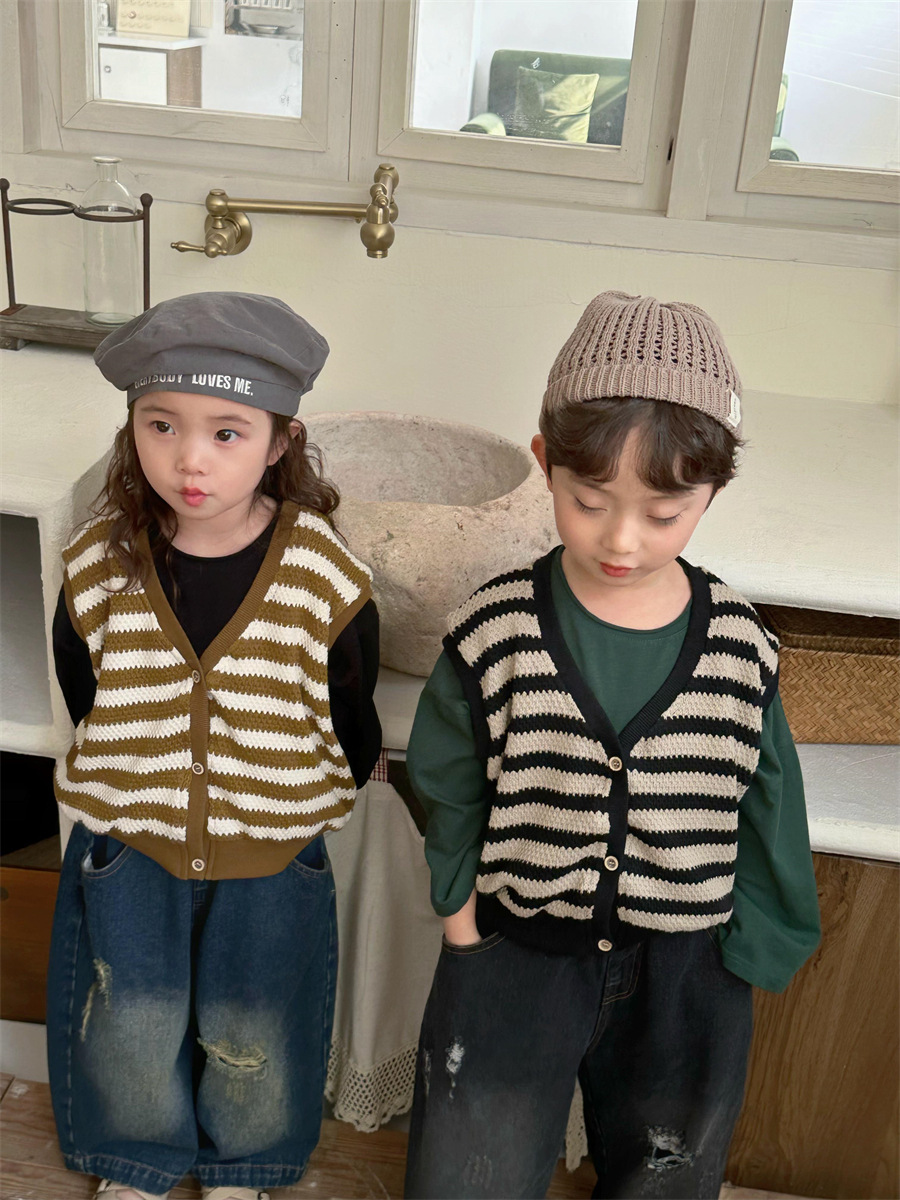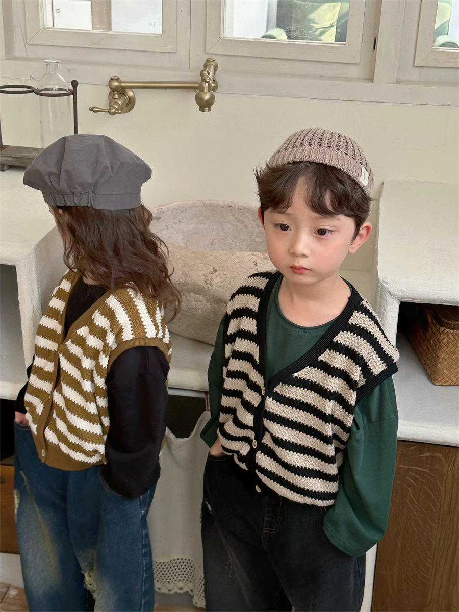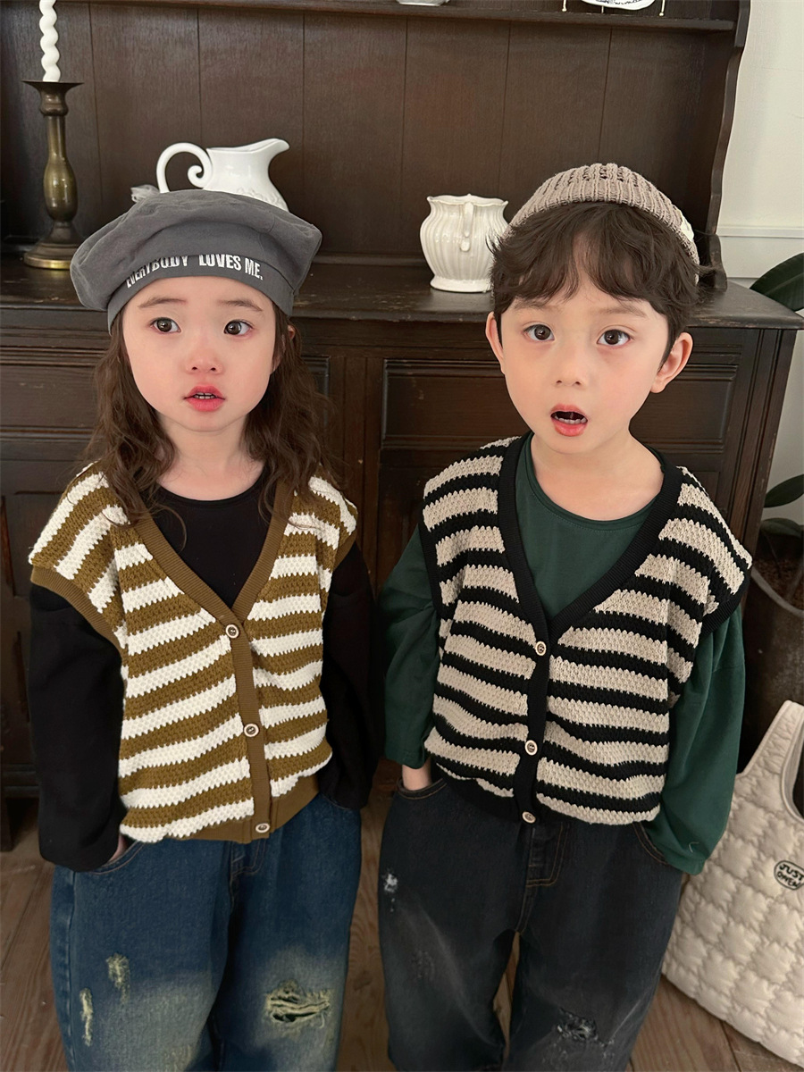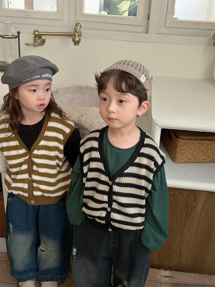 소년 소녀를위한 Jiaye 어린이 2024 새로운 봄 어린이 줄무늬 니트 조끼 아기 모리 간단한 재킷스토어 가기