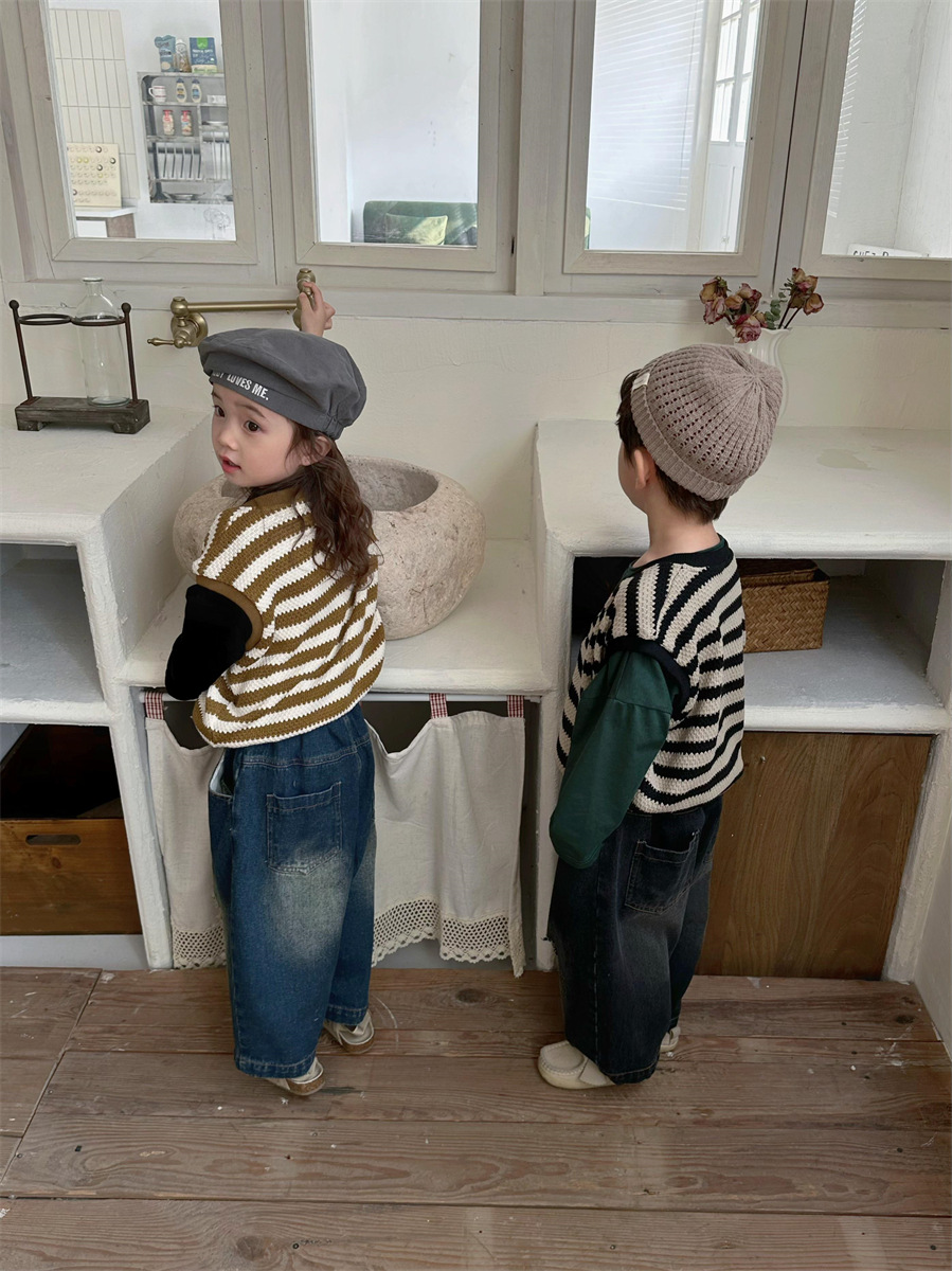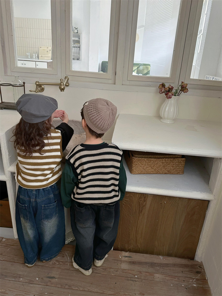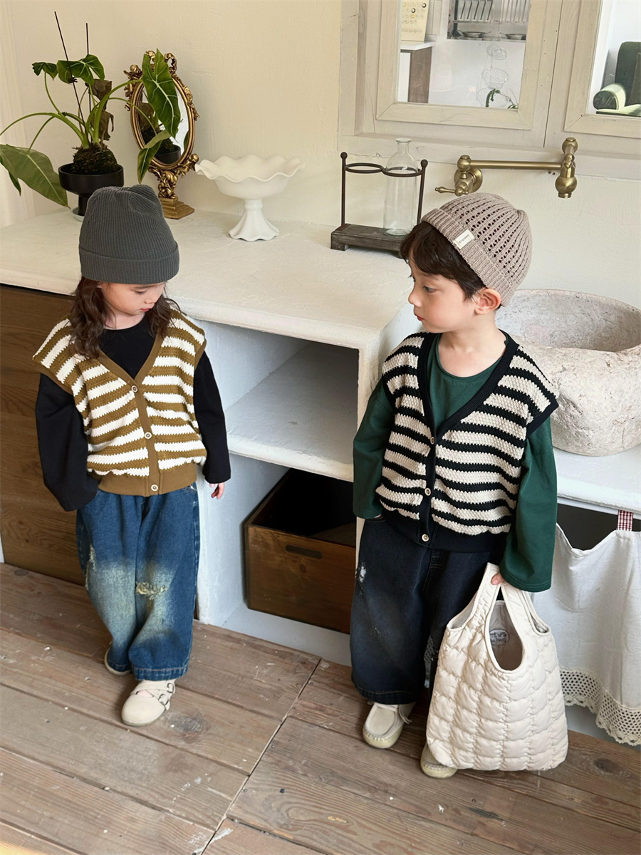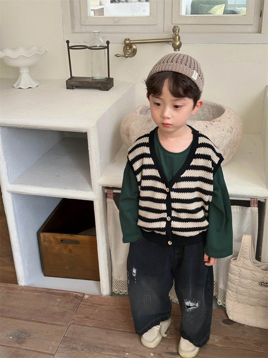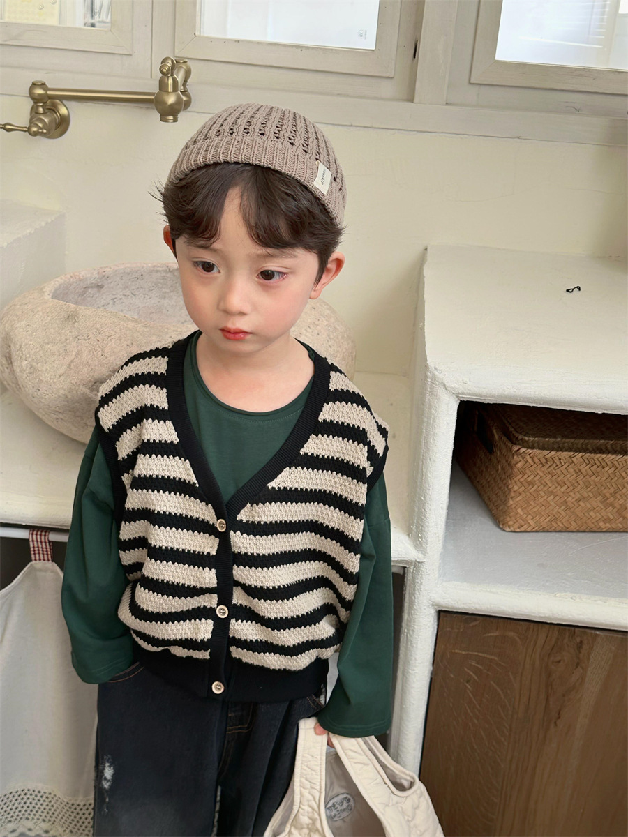 소년 소녀를위한 Jiaye 어린이 2024 새로운 봄 어린이 줄무늬 니트 조끼 아기 모리 간단한 재킷스토어 가기