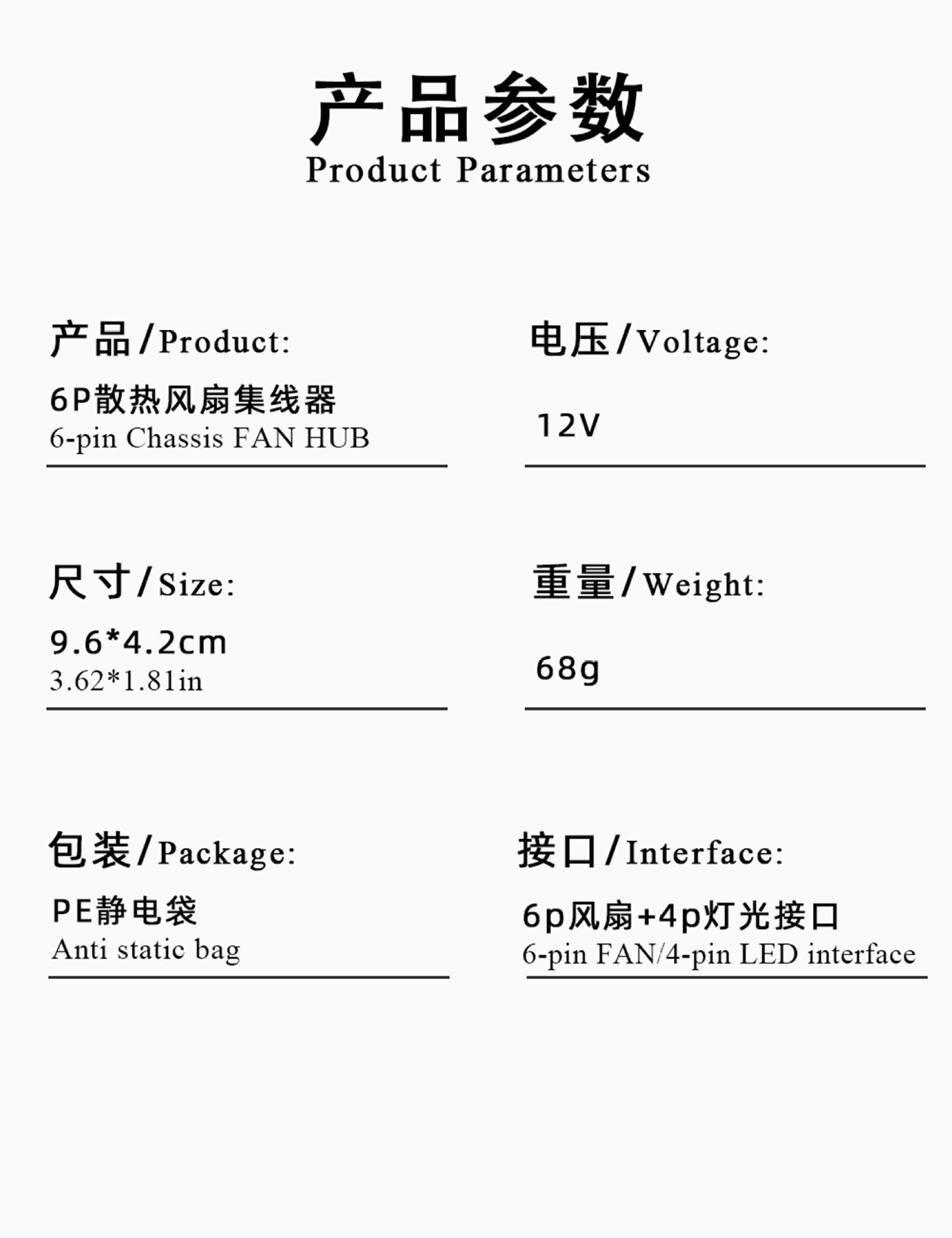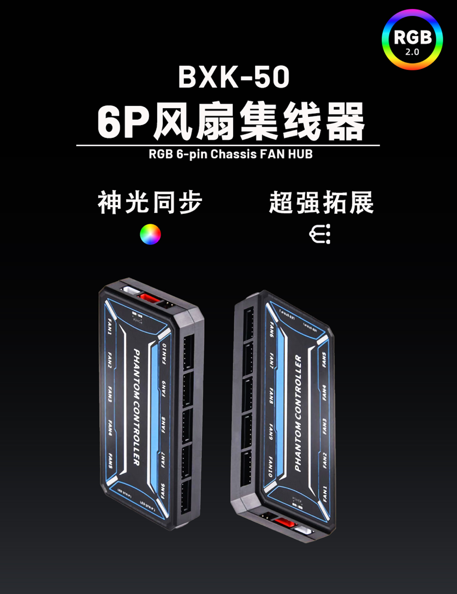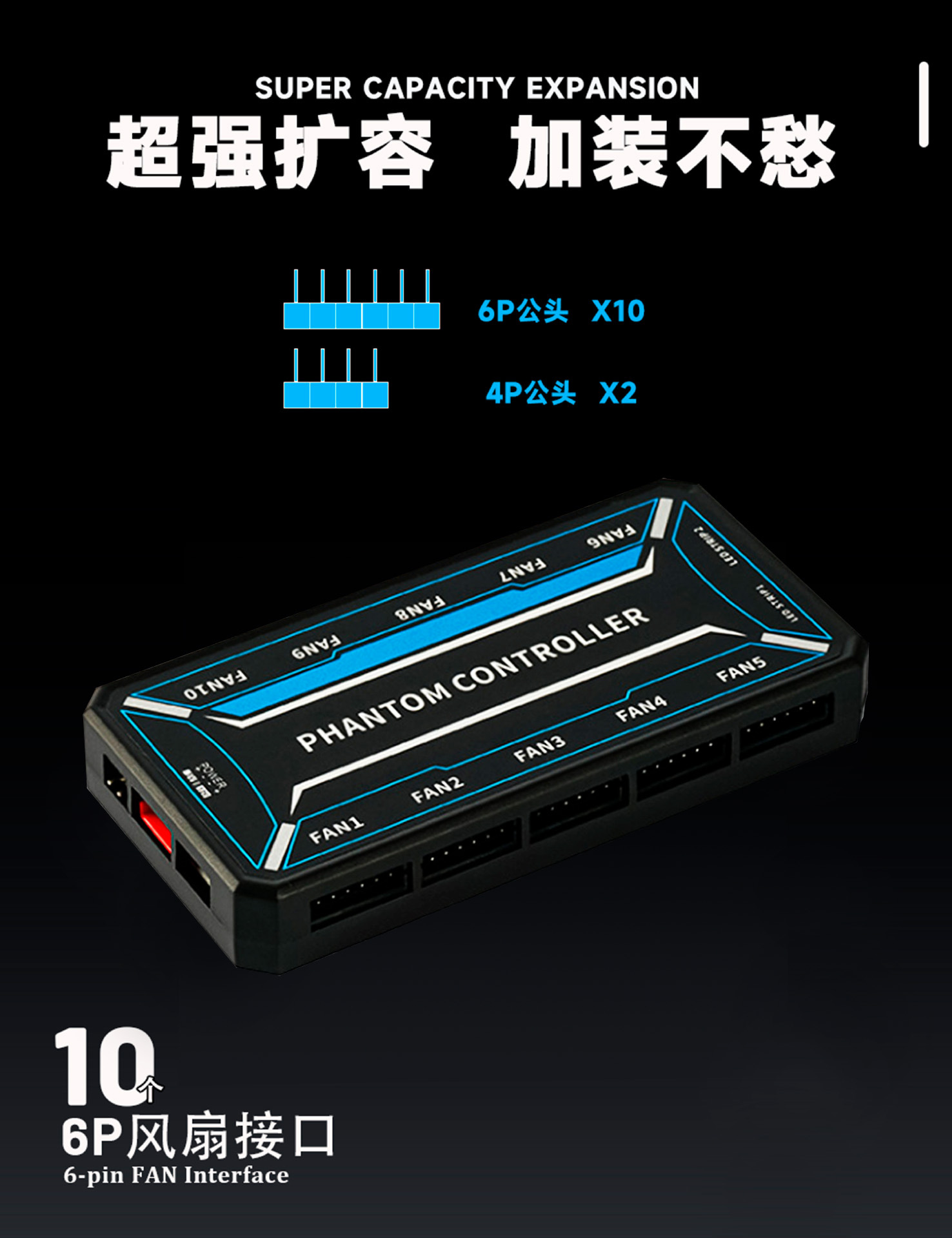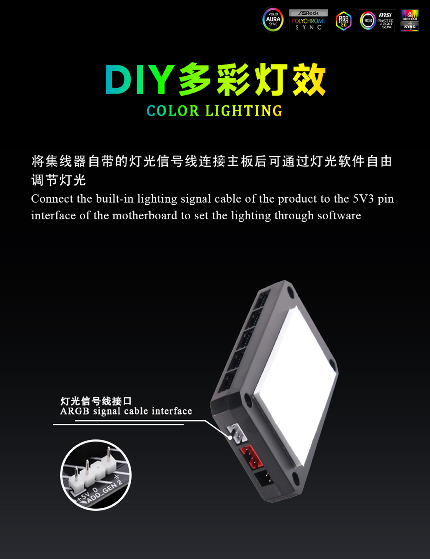 맞춤형 ARGB 신성한 빛 동기화 PWM 온도 제어 및 조정 투인원 소형 6P 섀시 팬 제어 허브 처리