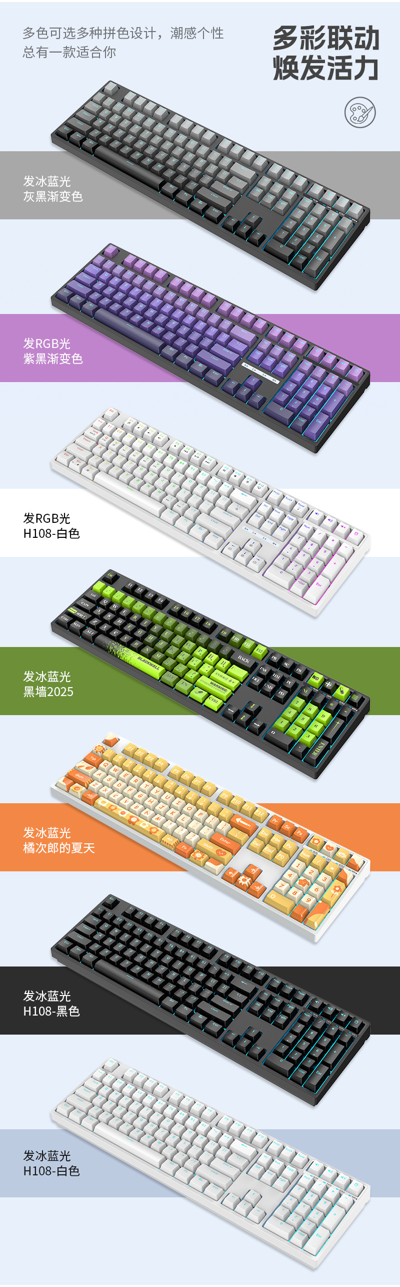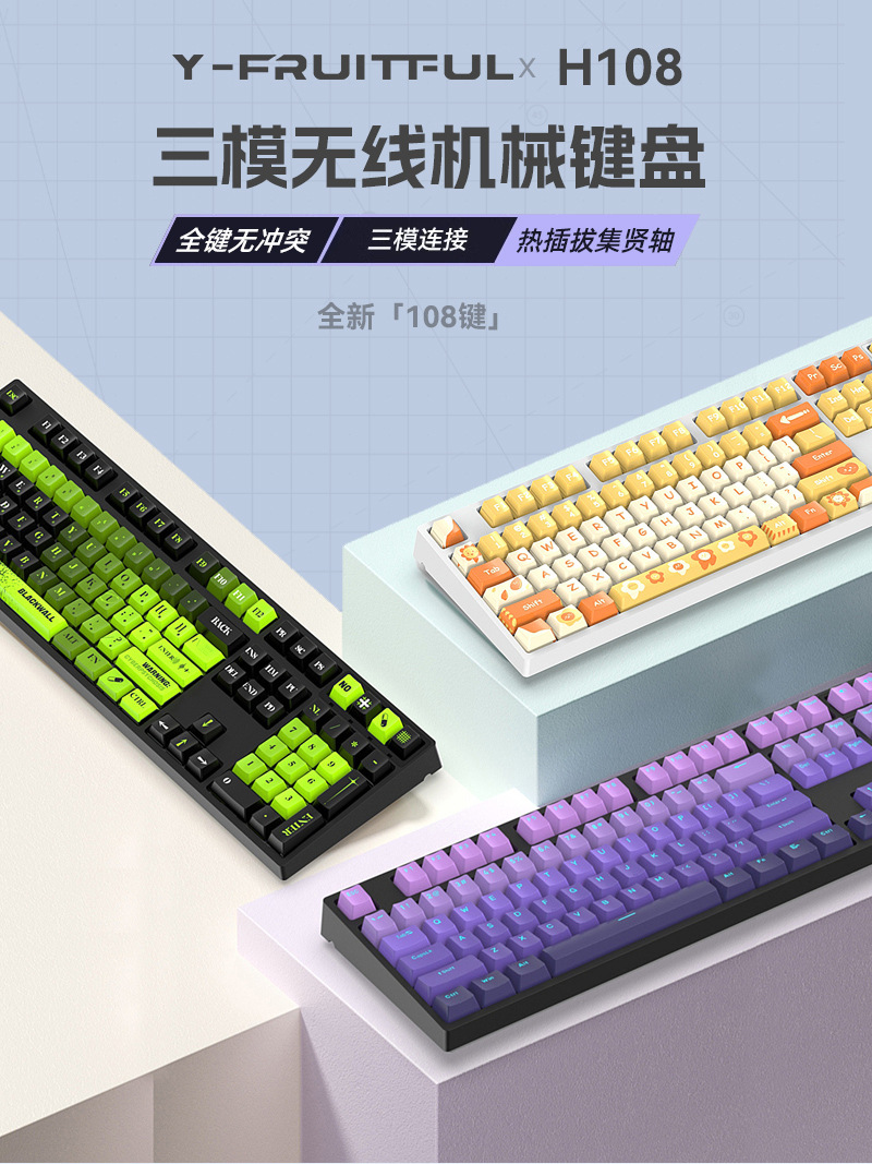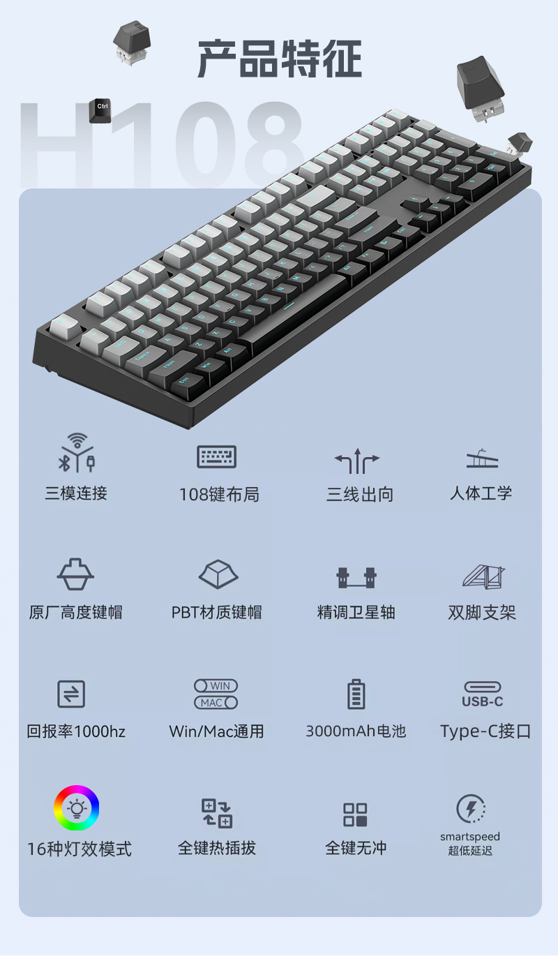 크로스보더 스팟 H108 삼중 모드 기계식 키보드 108키 핫스왑 커스터마이징 게이밍 컴퓨터 키보드스토어 가기