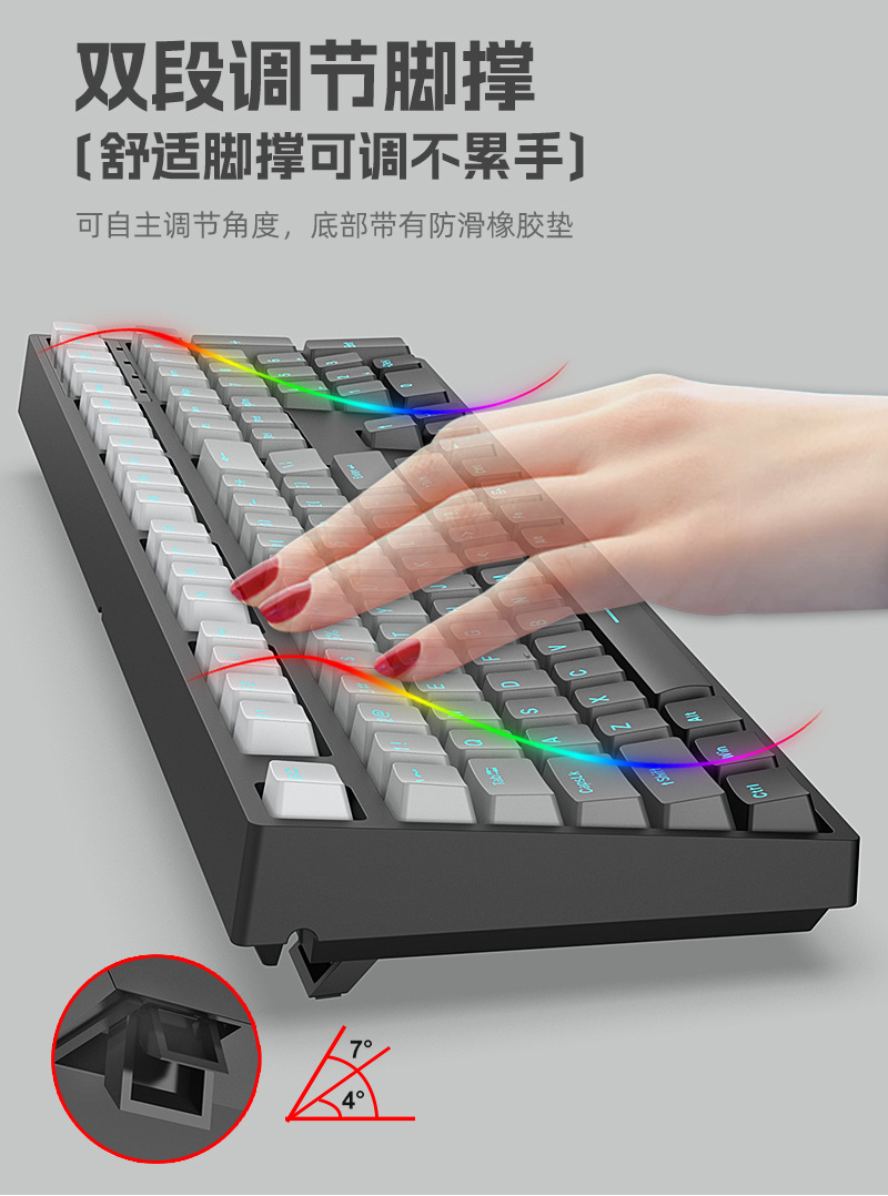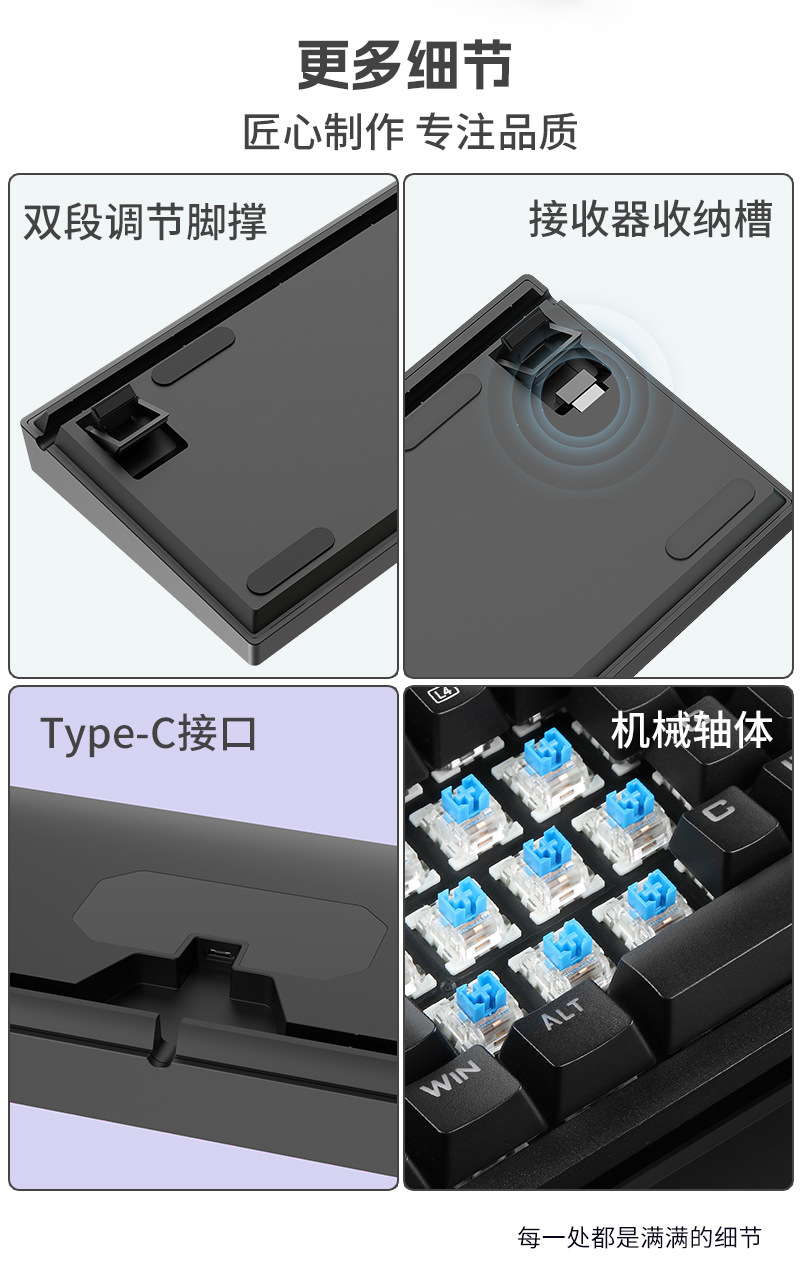 • H108-블랙-기계식 키보드-녹색 축(3모드) 아이스 블루 라이트
