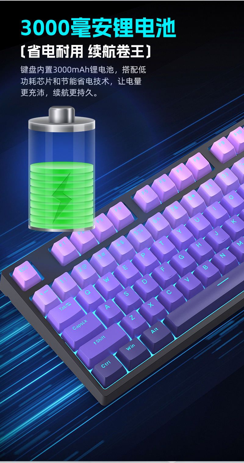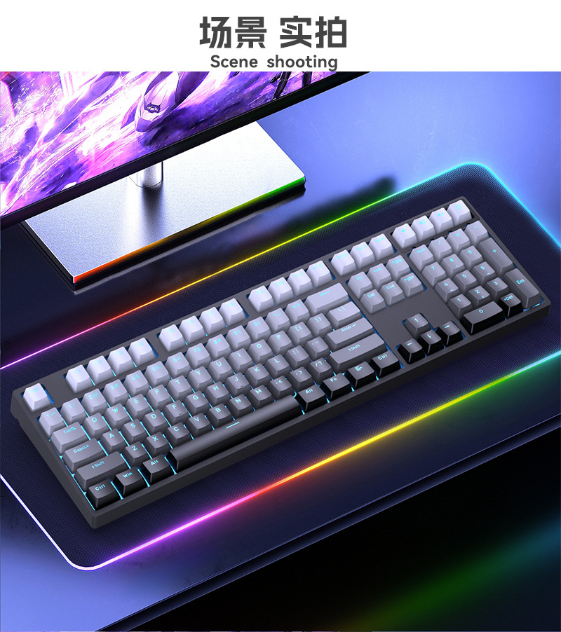 • H108 - 극적인 블랙 그라데이션 - 기계식 키보드 - 녹색 축(3모드) 아이스 블루 라이트