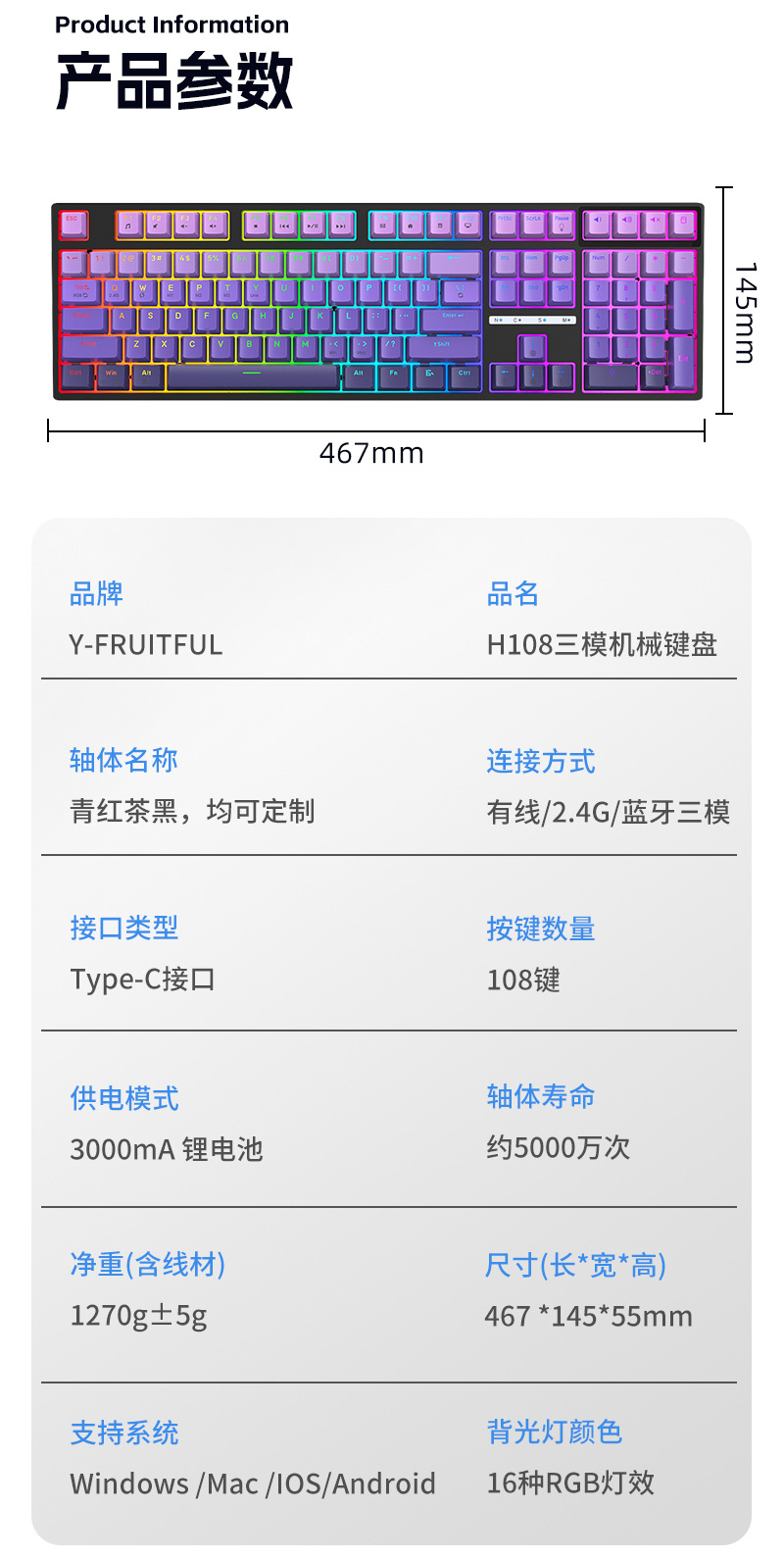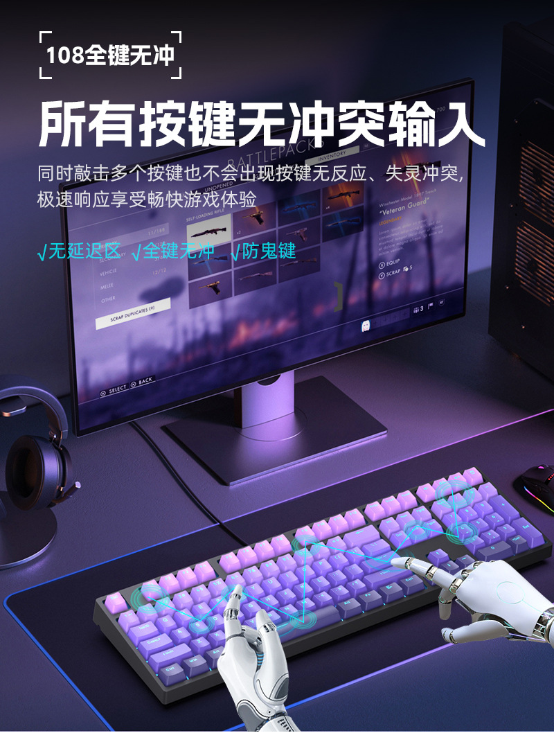 크로스보더 스팟 H108 삼중 모드 기계식 키보드 108키 핫스왑 커스터마이징 게이밍 컴퓨터 키보드
