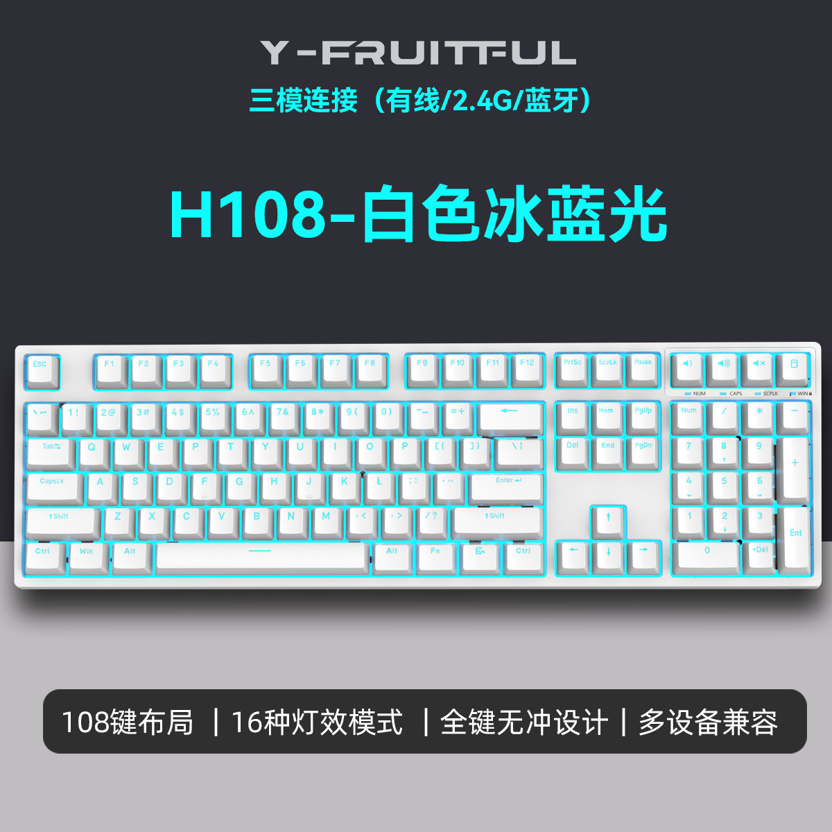 • H108-화이트-기계식 키보드-녹색 축(3모드) 아이스 블루 라이트